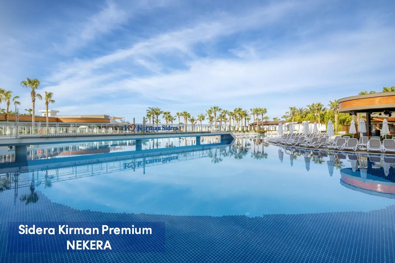 Kirman Sidera Luxury & Spa to pięciogwiazdkowy hotel położony na Riwierze Tureckiej, który ma znaczenie plażowe, przestronne pokoje oraz określone urządzenie. Goście mogą korzystać z basenów, centrum spa i restauracji serwujących dania kuchni międzynarodowej. Hotel zapewnia rozrywkę dla dzieci i dorosłych, a jego wyposażenie stanowi jednocześnie relaksowi, jak i aktywnemu wypoczynkowi.