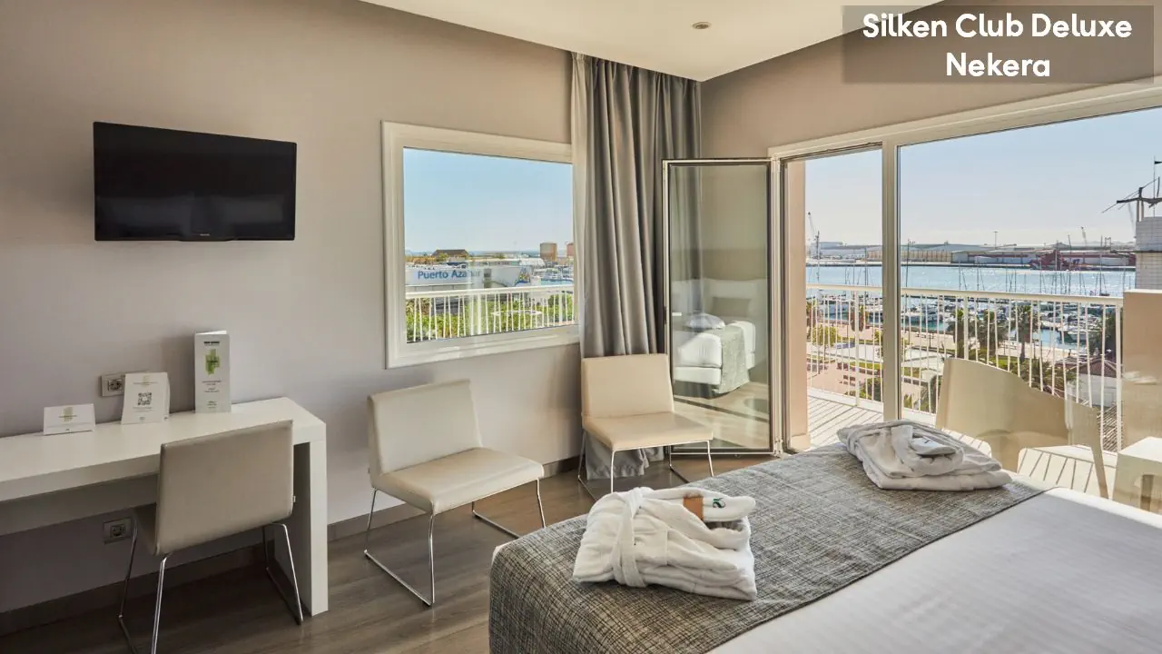 Pokój Standardowy - powierzchnia 23 m² - maksymalnie 3 osoby - łózko podwójne lub dwa pojedyncze - taras lub balkon z krzesłami i stolikiem - łazienka z prysznicem - suszarka do włosów - biurko i krzesło - przestronna szafa z lustrem - telewizja satelitarna - minibar (za opłatą) - sejf (za opłatą) Pokój Silken Club Deluxe - powierzchnia 33 m² - maksymalnie 3 osoby - łózko podwójne lub dwa pojedyncze - podwójna sofa - taras lub balkon z krzesłami i stolikiem - łazienka z prysznicem - suszarka do włosów - szlafrok i kapcie - biurko i krzesło - przestronna szafa z lustrem - telewizja satelitarna - minibar (za opłatą) - sejf (za opłatą) Junior Suite Deluxe - powierzchnia 46 m² - maksymalnie 3 osoby - oddzielna sypialnia - łózko podwójne king-size - podwójna sofa w części wypoczynkowej - taras lub balkon z krzesłami i stolikiem - łazienka z wanną/prysznicem - suszarka do włosów - szlafrok i kapcie - biurko i krzesło - przestronna szafa z lustrem - telewizja satelitarna - minibar (za opłatą) - sejf (za opłatą)