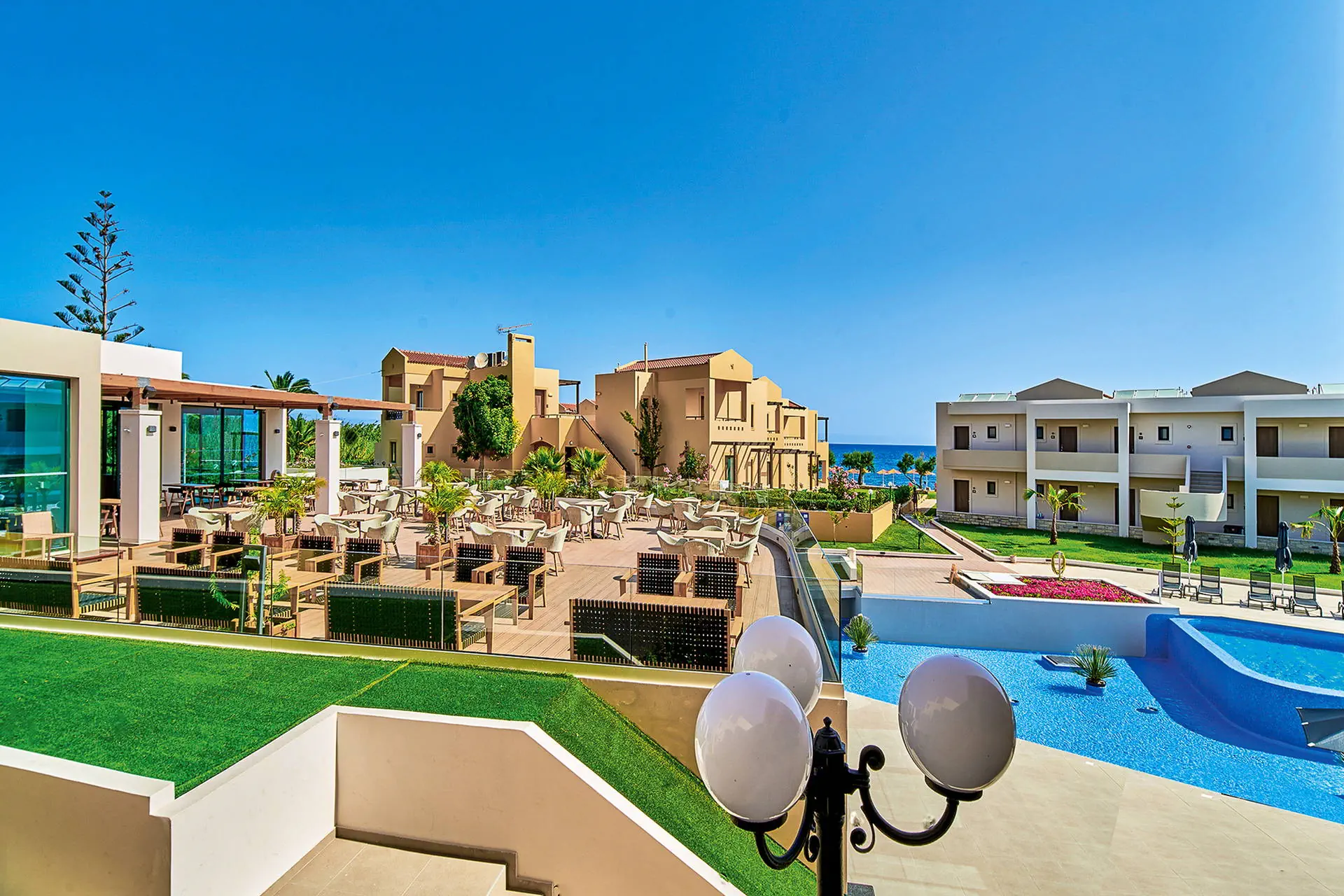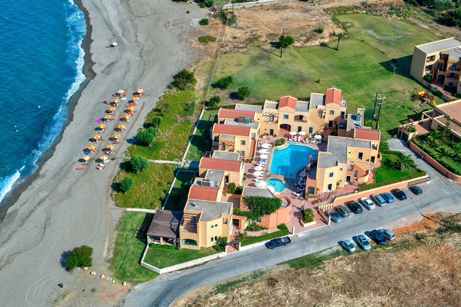 Położenie Przytulny i kameralny hotel, wokół którego znajduje sie ładny, zadbany ogród. Do centrum spokojnej, małej miejscowości Gerani ok. 500 m, a do rozrywkowego Platanias ok. 2 km. W Platanias duży wybór barów, tawern, restauracji, dyskoteka. Przystanek autobusu komunikacji miejskiej w odległości ok. 400 m od hotelu. Plaża Obiekt znajduje się bezpośrednio przy piaszczysto-żwirowej plaży. Leżaki i parasole na plaży - bezpłatne. Do dyspozycji gości Hotel, składający się z kilku niskich budynków, zaprojektowany i wykończony w nowoczesnym stylu. Recepcja (07:30-24:00) z lobby, klimatyzowana restauracja główna (dostępne bezpłatne krzesełka dla dzieci), tawerna serwująca dania kuchni greckiej (dodatkowo płatna), bar przy basenie, basen ze słodką wodą oraz brodzik dla dzieci, taras słoneczny, leżaki i parasole przy basenie - bezpłatne, ręczniki kapielowe (ok. 2,5 EUR/dzień), zadbany ogród, kącik TV, mini market, przechowalnia bagażu, plac zabaw dla dzieci, siłownia (bezpłatna), wymiana walut, hotel akceptuje karty płatnicze. Pokoje 51 wygodnych i przestronnych pokoi 2-osobowych (możliwość 1 lub 2 dostawek w formie łóżka piętrowego lub rozkładanej sofy; 2 dostawki możliwe tylko w konfiguracji 2 osoby dorosłe + 2 dzieci) z łazienkami (suszarka do włosów) i balkonami (krzesełka ogrodowe). W pokojach znajduje się: telefon, TV-sat, lodówka (bezpłatna), sejf (ok. 14 EUR/tydzień), klimatyzacja (indywidualnie sterowana, bezpłatna). Apartamenty dla max. 4 osób, wyposażone jak pokoje 2-osobowe, ale posiadające osobną sypialnię oraz pokój dzienny z rozkładaną sofą. Część pokoi posiada aneksy kuchenne. Łóżeczko dla dziecka do 2 lat - bezpłatne. Wyżywienie Light All Inclusive obejmująca śniadania (08:00-10:00) w formie bufetu, lunch (13:00-15:00) w formie bufetu, kolacje (19:00-21:00) w formie bufetu, napoje bezalkoholowe oraz lokalne alkoholowe: piwo, wino, raki (10:00-21:00). Program sportowy i animacyjny Do dyspozycji gości siłownia, mini boisko do piłki nożnej oraz siatkówki, ping pong (bezpłatnie). Więcej rozrywek dostępnych w kurorcie Platanias. Internet W lobby i pokojach Wi-Fi - bezpłatnie (w wysokim sezonie transfer może być spowolniony), kącik internetowy- dodatkowo płatny. Kategoria lokalna **** Naszym zdaniem Kameralnie położony obiekt zapewnia pełnię wakacyjnego relaksu, w hotelu panuje przyjazna i spokojna atmosfera. Polecamy zwłaszcza parom. Strona www www.silverbeach-hotel.gr