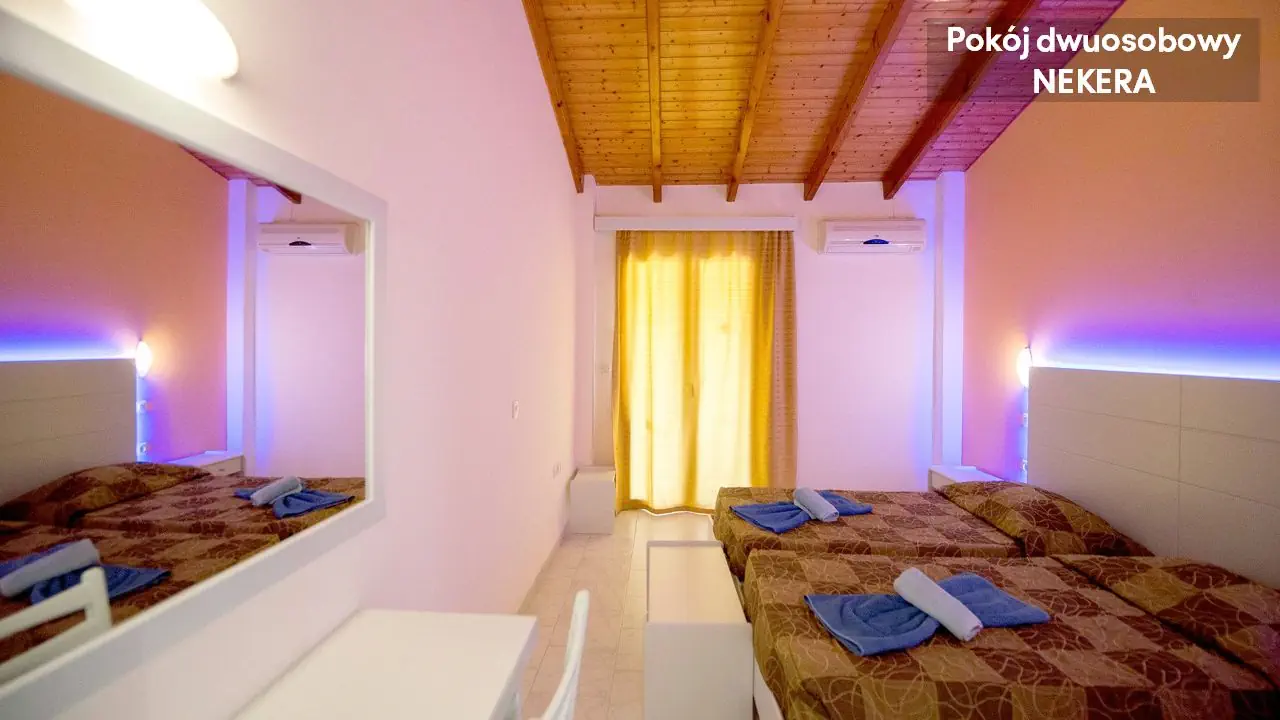 Pokój dwuosobowy - powierzchnia ok. 20 m² - max 2-os. - łóżko podwójne lub dwa pojedyncze - klimatyzacja (płatna, ok. 5 euro za dzień) - bezpłatne Wi-Fi - telewizor z płaskim ekranem - telefon - mini lodówka - sejf (płatny, ok 10 euro za pobyt) - łazienka z prysznicem - suszarka do włosów - zestaw mini kosmetyków - balkon lub taras
