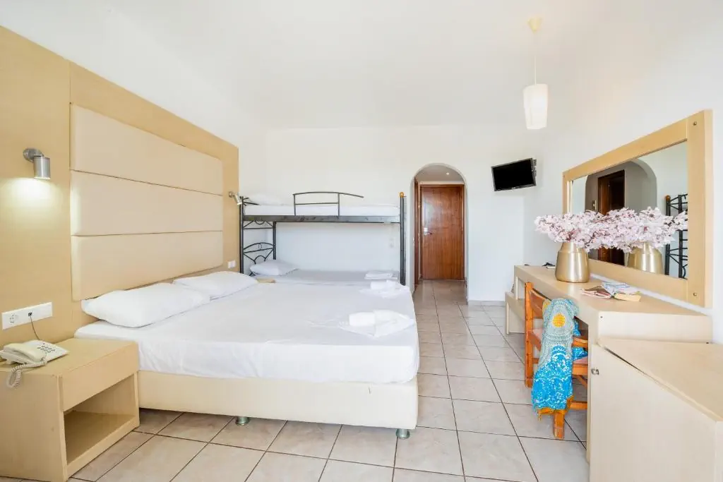 Dla max. 4 osób, Przestrzeń zewnętrzna: Balkon lub taras, Kanały telewizji: Angielski, Telefon w pokoju, prysznic, Powierzchnia pokoju: ok. 25 m2, Dostawka: łóżko standardowe, Rodzaj podłogi: laminat, Sprzątanie codziennie, 1 sypialnia, Maksymalna liczba osób dorosłych: 4, Maksymalna liczba dzieci: 2, Widok na ogród i basen, Liczba łazienek: 1, Liczba toalet: 1, Klimatyzacja: Klimatyzacja indywidualna (dodatkowo płatne)