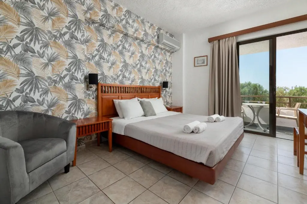 Dla max. 3 osób, Przestrzeń zewnętrzna: Balkon lub taras, Kanały telewizji: Angielski, Telefon w pokoju, prysznic, Powierzchnia pokoju: ok. 18 m2, Dostawka: łóżko standardowe, Rodzaj podłogi: laminat, Sprzątanie codziennie, 1 sypialnia, Maksymalna liczba osób dorosłych: 3, Maksymalna liczba dzieci: 1, Widok na ogród i basen, Liczba łazienek: 1, Liczba toalet: 1, Klimatyzacja: Klimatyzacja indywidualna (dodatkowo płatne)