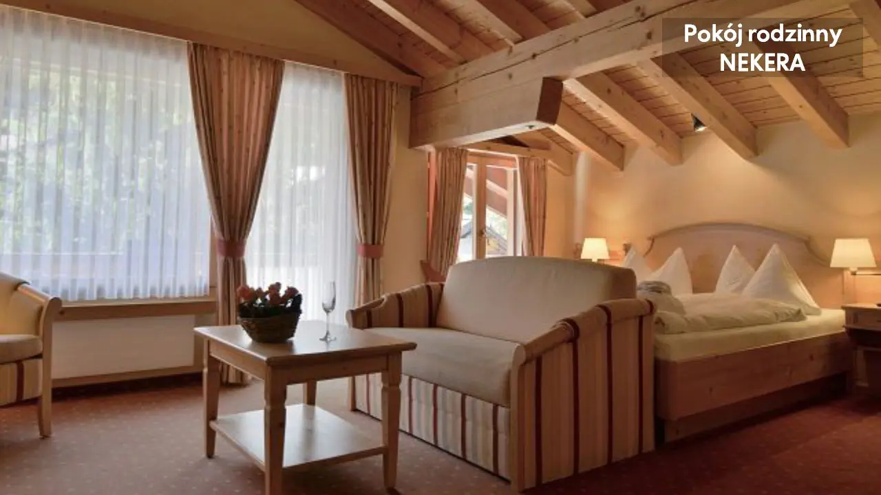 komfortowy i cieszący się dużą popularnością hotel z 92 pokojami. Recepcja, hol powitalny, narciarnia, 4 windy, jadalnia, sala śniadaniowa/ restauracja, bar.