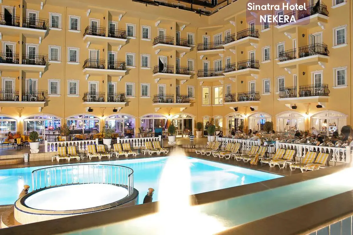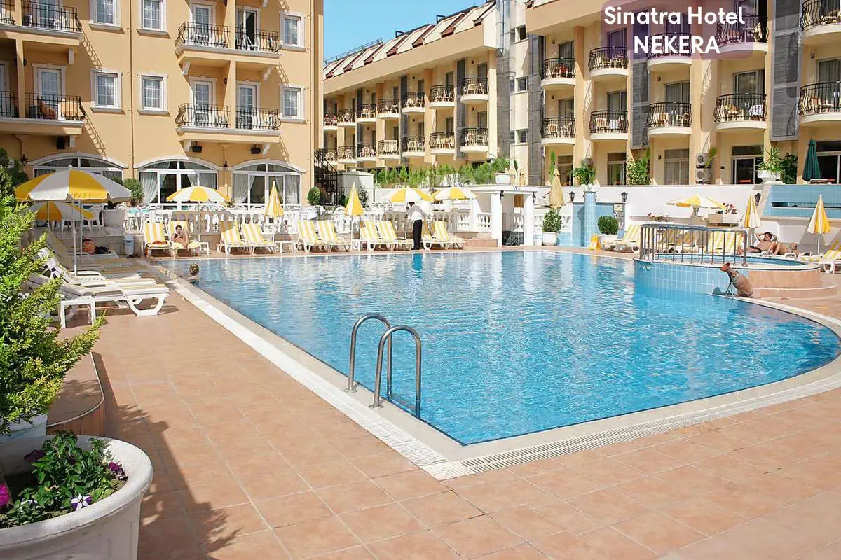 Hotel Sinatra to czterogwiazdkowy hotel all inclusive położony w nadmorskiej dzielnicy Camyuva w regionie Kemer nad Morzem Śródziemnym. Obiekt łączy komfortowe zakwaterowanie z dogodną lokalizacją blisko plaży i lokalnych atrakcji, oferując gościom relaks przy basenie, łatwy dostęp do morza oraz udogodnienia rekreacyjne i wypoczynkowe – idealnie dopasowane zarówno dla par, rodzin z dziećmi, jak i osób aktywnie spędzających wakacje.