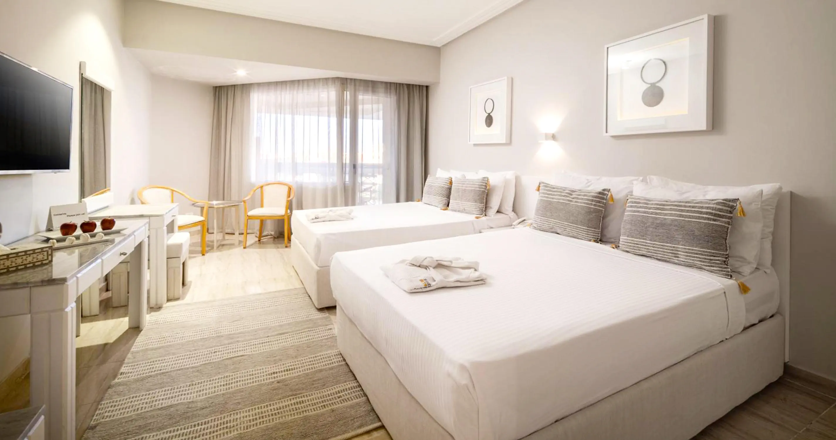 Pokój Superior ok. 27 m² Klimatyzacja Łazienka z prysznicem, WC Suszarka do włosów TV-Sat Telefon Wi-Fi - bezpłatne Minibar (uzupełniany tylko w wodę) Sejf - bezpłatny Nie wszystkie pokoje posiadają balkon lub taras Pokój Superior Family One Bedroom ok. 27-30 m² Jeden większy pokój - 2 duże łóżka king size Pokój Superior Family Suite Two Bedroom ok. 58 m² Składa się z dwóch sypialni połączonych drzwiami, w jednej łóżko typu king size, w drugiej łóżko typu twin Pokój Deluxe Family Suite Two Bedroom ok. 77 m² Składa się z dwóch sypialni połączonych drzwiami, w jednej łóżko typu king size w drugiej łóżko typu twin, oraz części dziennej Szlafrok + kapcie Minibar uzupełniony w napoje soft - raz na pobyt Kosz owoców - na powitanie Uwaga W hotelu jest sześć pokoi przystosowanych dla osób niepełnosprawnych, zlokalizowane na parterze (wymagana wcześniejsza rezerwacja na RQ)