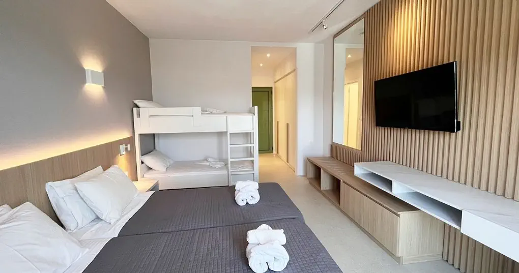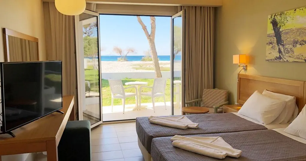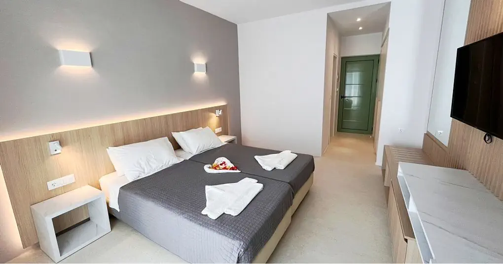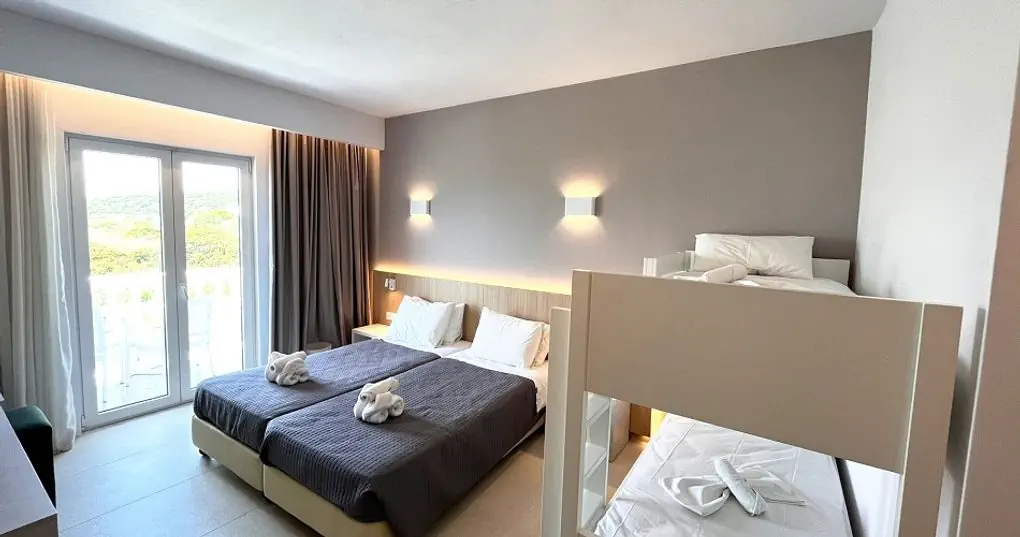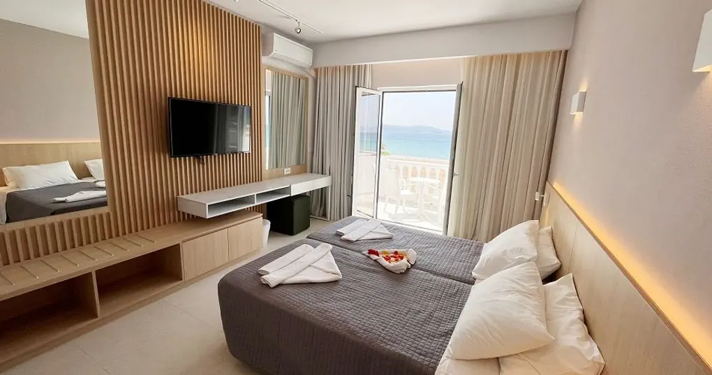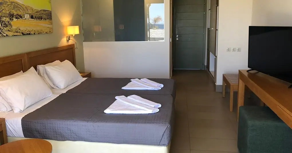 Pokój Standard - Dawne pokoje Elegant - Na parterze, taras - Łazienka z prysznicem i WC, suszarka do włosów - Klimatyzacja indywidualnie sterowana (nowe klimatyzatory z 2022 r.) - bezpłatna - TV-Sat - z polskojęzycznymi kanałami satelitarnymi - Dostawka dla dziecka w opcji pokoju 2-3 to rozkładane łóżko - Mała lodówka - bezpłatna - Sejf - bezpłatny - Balkon - Łóżeczko dla dziecka do 2 lat, na zapytanie - bezpłatne - Standard GV - pokój bez widoku na morze - Standard SEA FRONT - pokój zlokalizowany w budynku przy plaży, z centralnym widokiem na morze - Standard SSV - pokój z częściowym widokiem na morze Pokój Standard Triple GV - Dawny pokój Elegant - Posiada regularne łóżka - Widok na otoczenie - Wyposażenie jak w pokoju Standard Pokój Superior - Pokoje po remoncie zimą 2022/23 - 3 pokoje przystosowane dla osób niepełnosprawnych, na zapytanie - Dostawka dla dziecka w opcji pokoju 2-3 to rozkładane łóżko - Superior GV - pokój bez widoku na morze - Superior SEA FRONT - pokój zlokalizowany w budynku przy plaży, z centralnym widokiem na morze - Superior SSV - pokój z częściowym widokiem na morze - Wyposażenie jak w pokoju Standard Pokój Triple Superior - Pokoje po remoncie zimą 2022/23 - Posiada regularne łóżka - Triple Superior GV - pokój bez widoku na morze - Triple Superior SSV - pokój z częściowym widokiem na morze - Wyposażenie jak w pokoju Standard Pokój Superior Family SSV - Pokoje po remoncie zimą 2022/23 - Składa się z sypialni i pokoju dziennego oraz łazienki - Częściowy widok na morze - Wyposażenie jak w pokoju Standard Pokój Superior Quadriple - Pokoje po remoncie zimą 2022/23 - Dostawka w formie łóżka piętrowego (wymiary powierzchni do spania: 180 cm x 83 cm) - Superior Quadriple GV - pokój bez widoku na morze - Superior Quadriple SSV - pokój z częściowym widokiem na morze - Wyposażenie jak w pokoju Standard UWAGA: Wszystkie pokoje typu Standard znajdują sie na parterze, pokoje typu Superior znajdują sie na 1 lub 2 piętrze