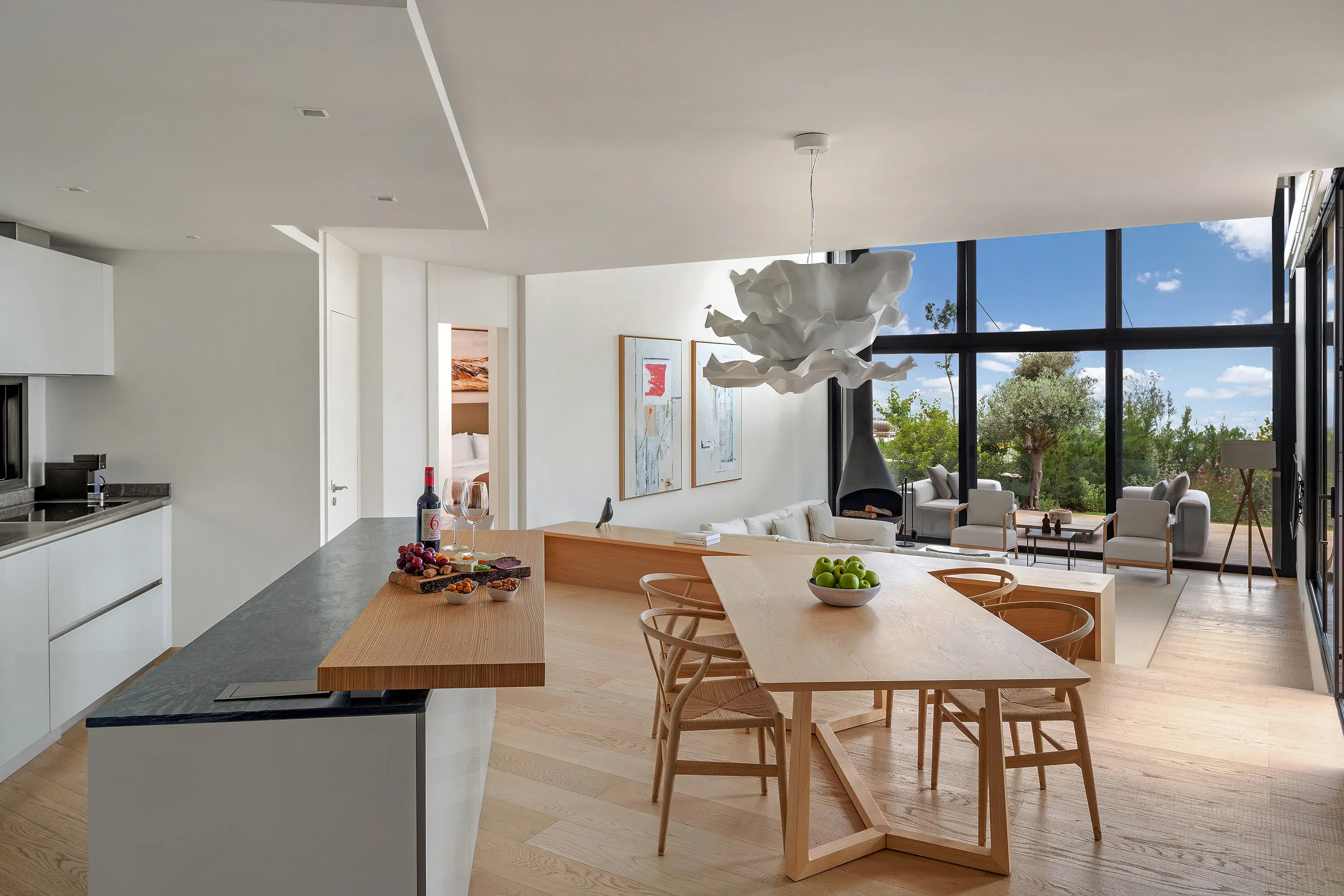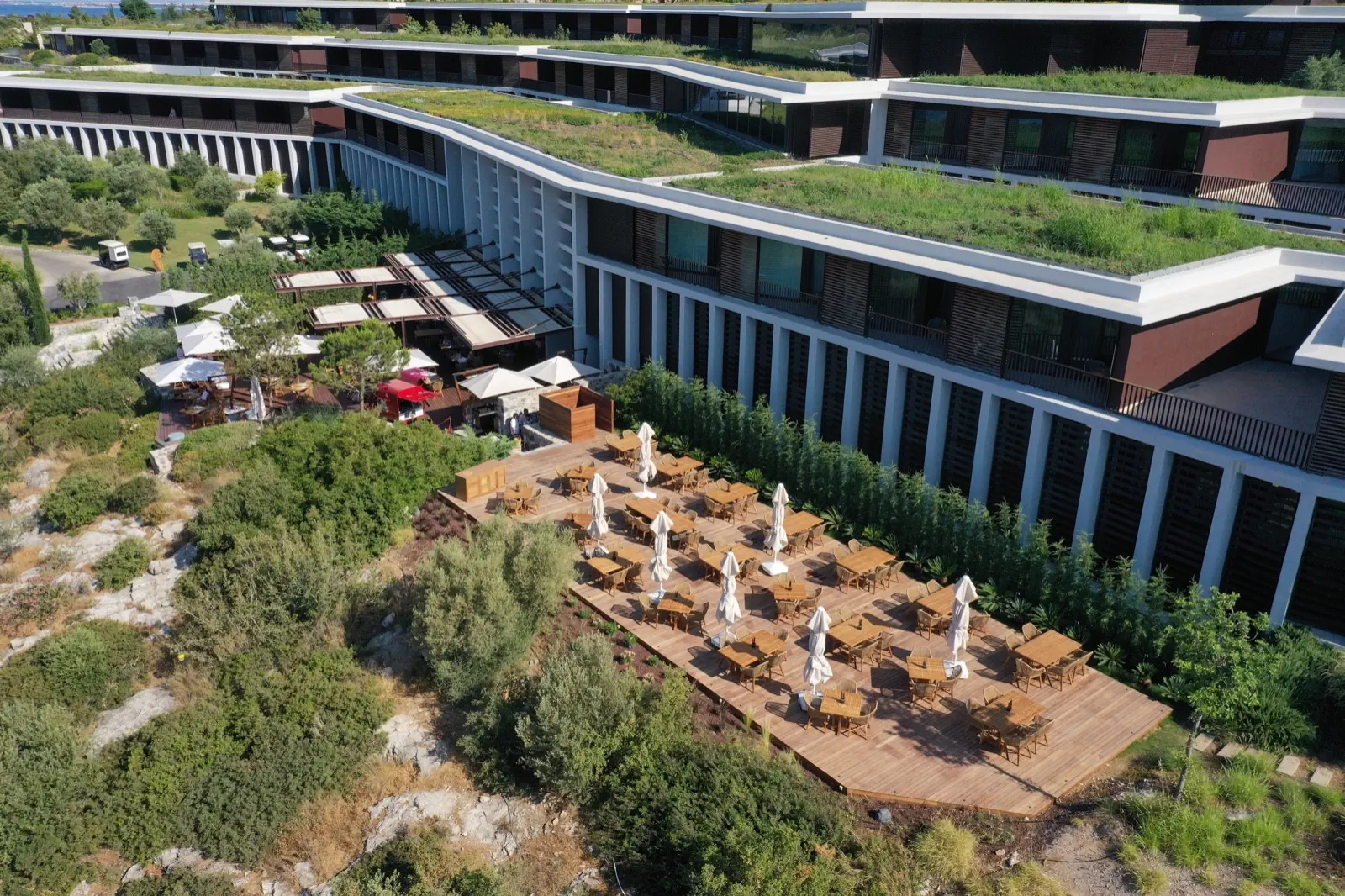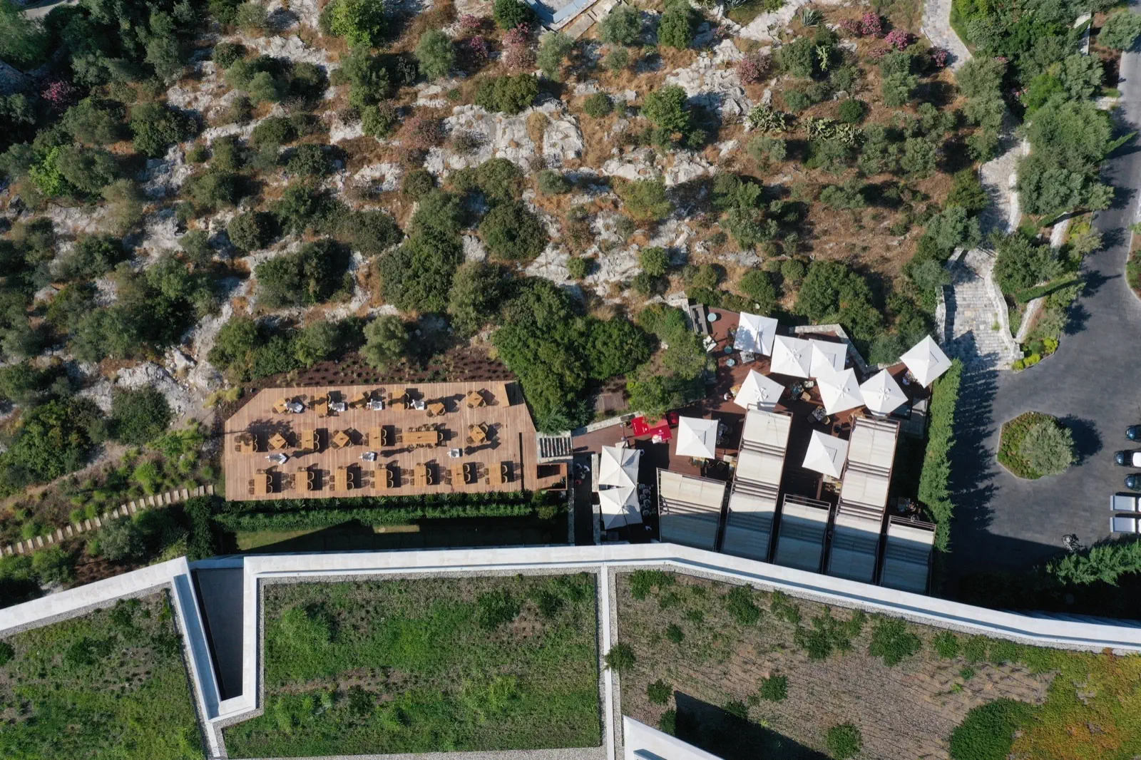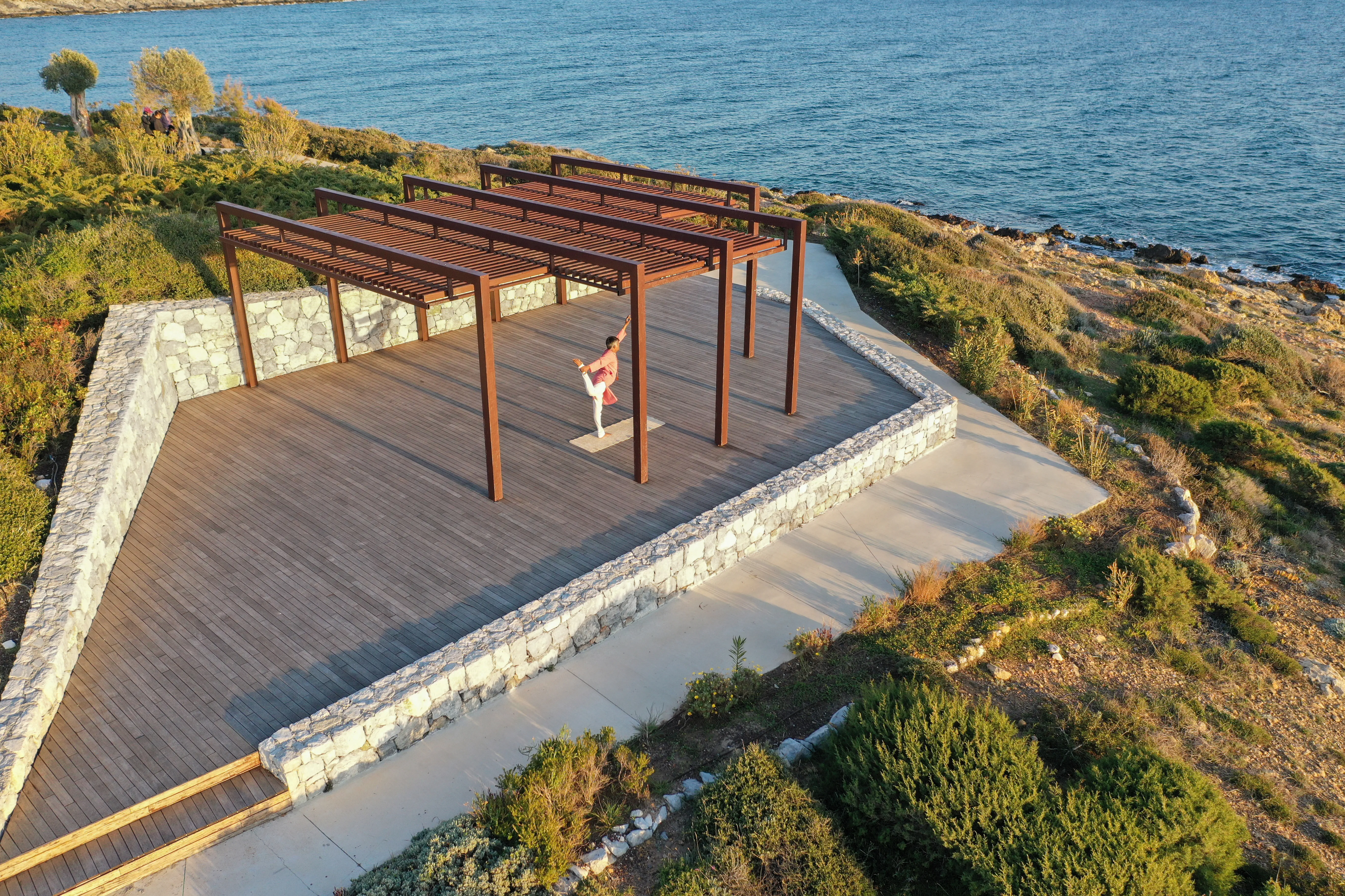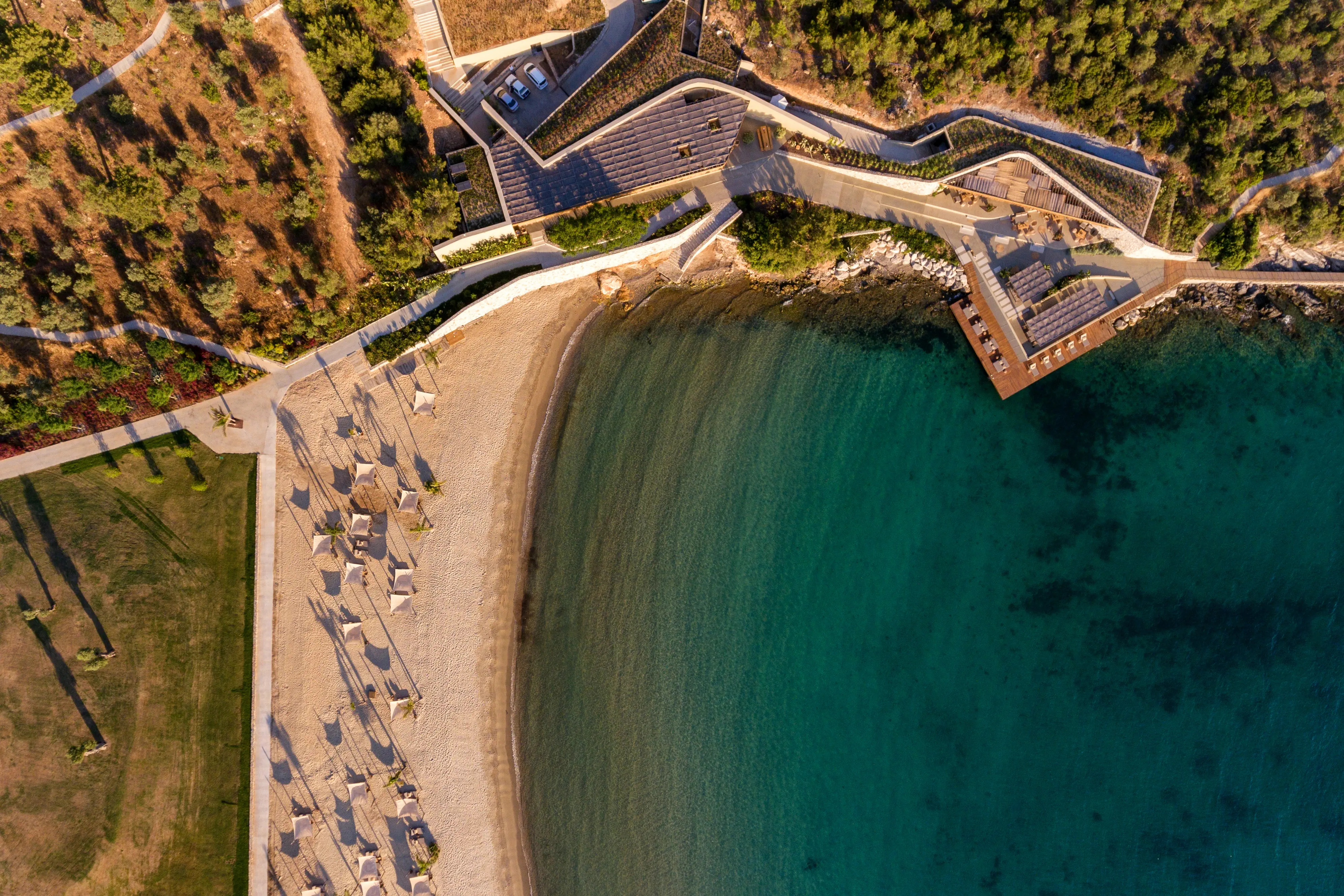 Ten wyjątkowy, pięciogwiazdkowy hotel położony jest w zapierającym dech w piersiach naturalnym otoczeniu - pośród pofałdowanych wzgórz pokrytych zielonymi dzikimi drzewkami oliwnymi i cyprysami, ciepłych podmuchów wiatru i delikatnie falujących fal turkusowego morza.