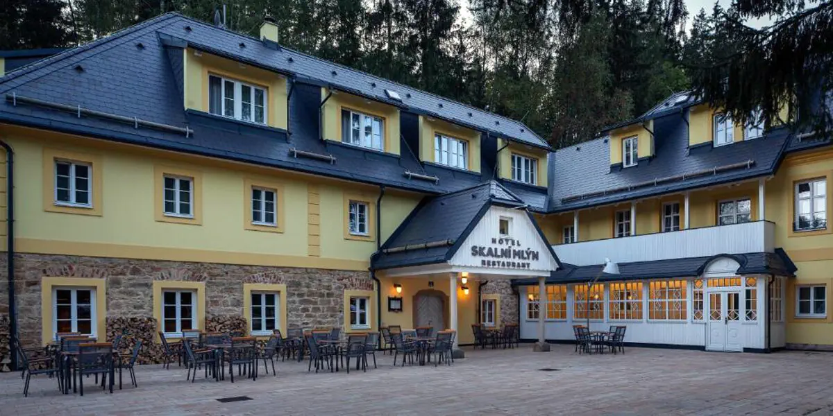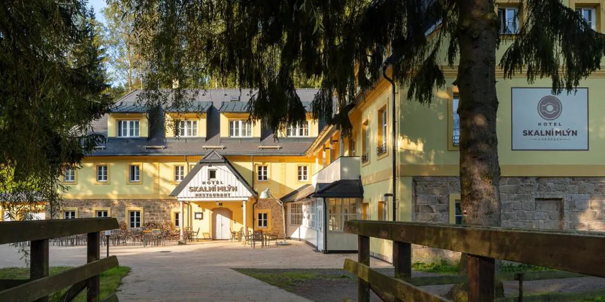 Hotel Skalni Mlyn*** stwarza unikatową możliwość noclegu w jednym z najstarszych budynków regionu. Pochodzi on z 1770 roku, a po niedawnej kompleksowej renowacji z powodzeniem funkcjonuje jako kameralny hotel z rodzinną atmosferą. Lokalizacja jest idealna do odwiedzenia największego skalnego miasta w Europie Środkowej oraz bliskiego kontaktu z przyrodą. Hotel mieści się w połowie drogi między skalnymi miastami w Adrspachu i Teplicach, w malowniczej dolinie rzeki Metuja. Obok hotelu znajduje się jedno z wejść do rezerwatu. Udogodnienia: Jacuzzi, Sauna, Wellness, Bar / restauracja, Ogród / Park, Siłownia, Parking, Płatność kartą