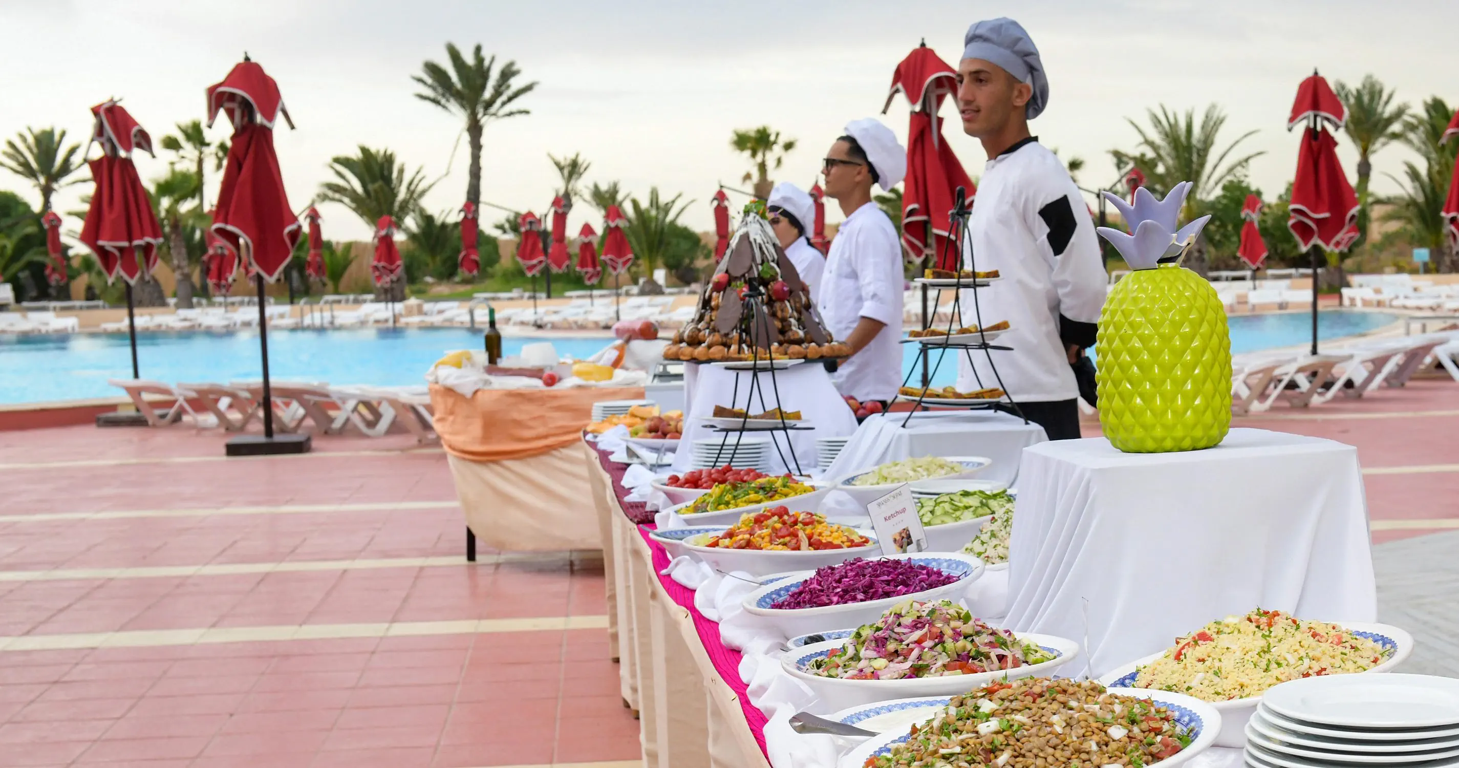 All Inclusive: Śniadanie, obiad i kolacja w formie bufetu Przekąski w określonych godzinach w ciągu dnia Jedna kolacja w restauracji à la carte (bezpłatnie raz na pobyt po dokonaniu wcześniejszej rezerwacji) Napoje bezalkoholowe i alkohole lokalnej produkcji w barach wskazanych przez hotel w godzinach ich otwarcia od 10:00- 23:00 Wszystkie bary po 23:00 są płatne Alkohole importowane są dodatkowo płatne