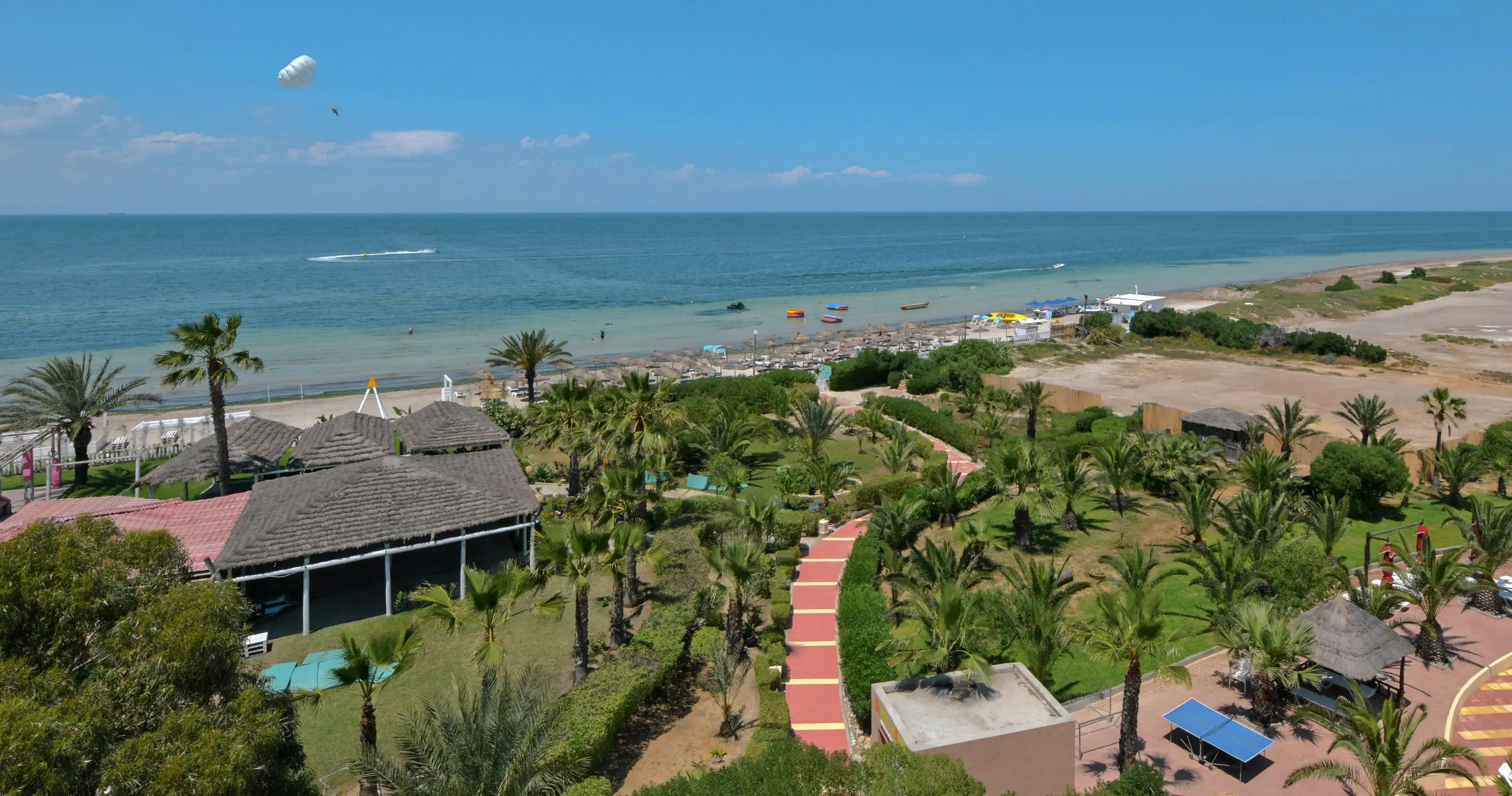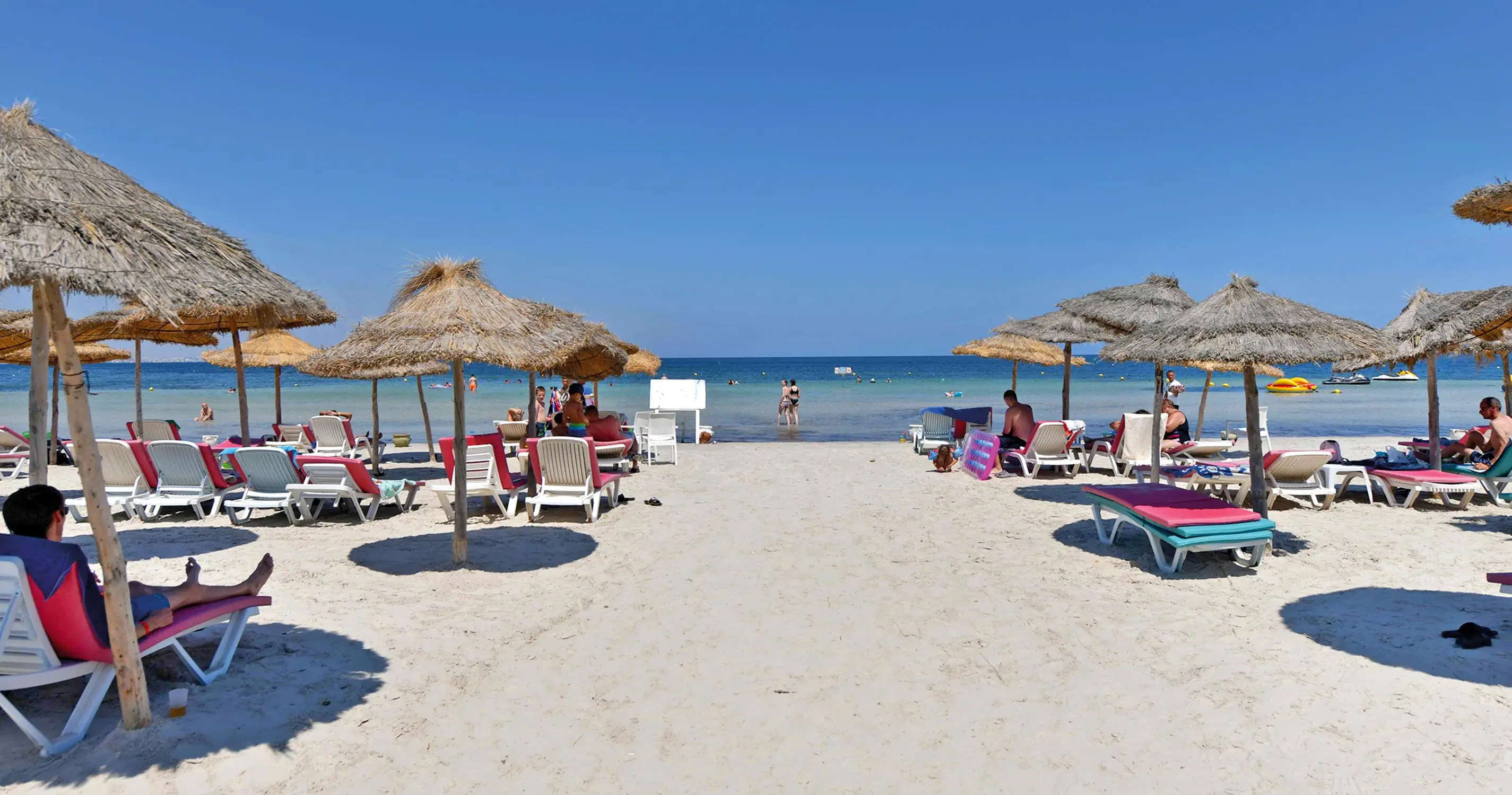 Piaszczysta, bezpośrednio przy hotelu Leżaki i parasole - bezpłatne Ręczniki plażowe - bezpłatne (depozyt ok. 20 TND) Restauracja (Goście mogą skorzystać raz na pobyt w porze obiadu lub w porze kolacji po dokonaniu wcześniejszej rezerwacji, czynny w wysokim sezonie od 01.06 w zależności od warunków pogodowych)