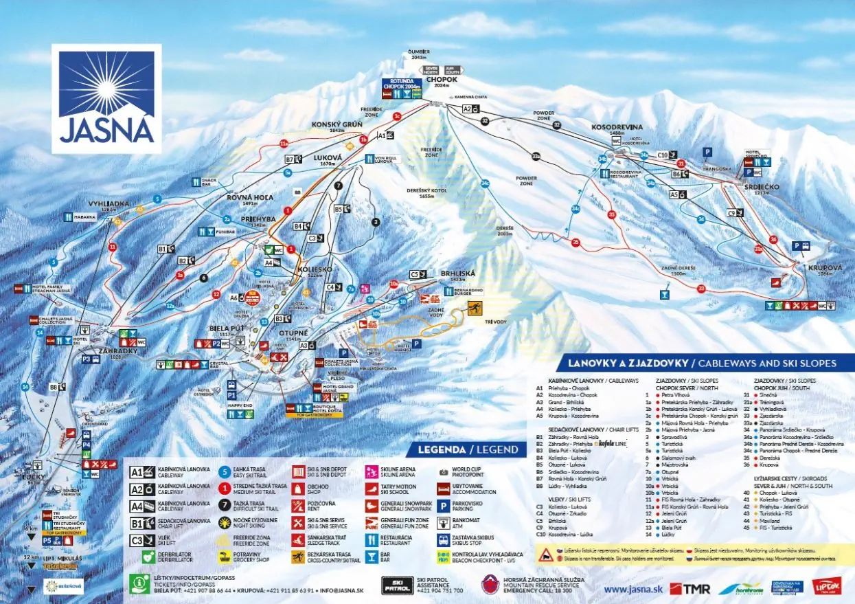 na wysokości 1100 m. n.p.m, w centrum górskiej miejscowości Jasna, tuż obok stoku narciarskiego i ośrodka Jasna-Chopok w Parku Narodowym Tatry Niskie. Jest to największy kompleks narciarski w Europie Środkowo-Wschodniej, ze świetnymi warunkami do uprawiania sportów zimowych po północnej i południowej stronie Chopoka (2024 m. n.p.m.). Jasna oferuje blisko 50 km. tras narciarskich - większośc z nich to długie, sportowe trasy, 12 stref freerideowych, snow park, bogaty program apres ski oraz najnowszą infrastrukturę kolejek gondolowych i krzesełkowych (w sumie 23). Kolejka górska Grand Jet znajduje się przy hotelu (ok. 100 m). Ze pobliskich stoków można zjechać na nartach bezpośrednio do hotelu.