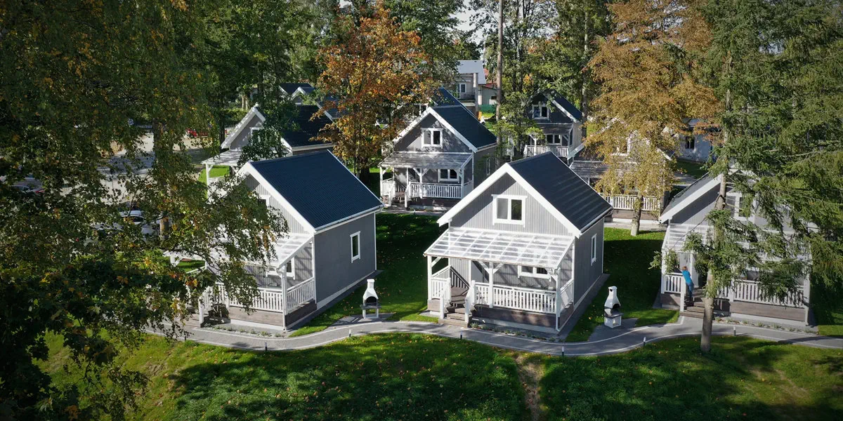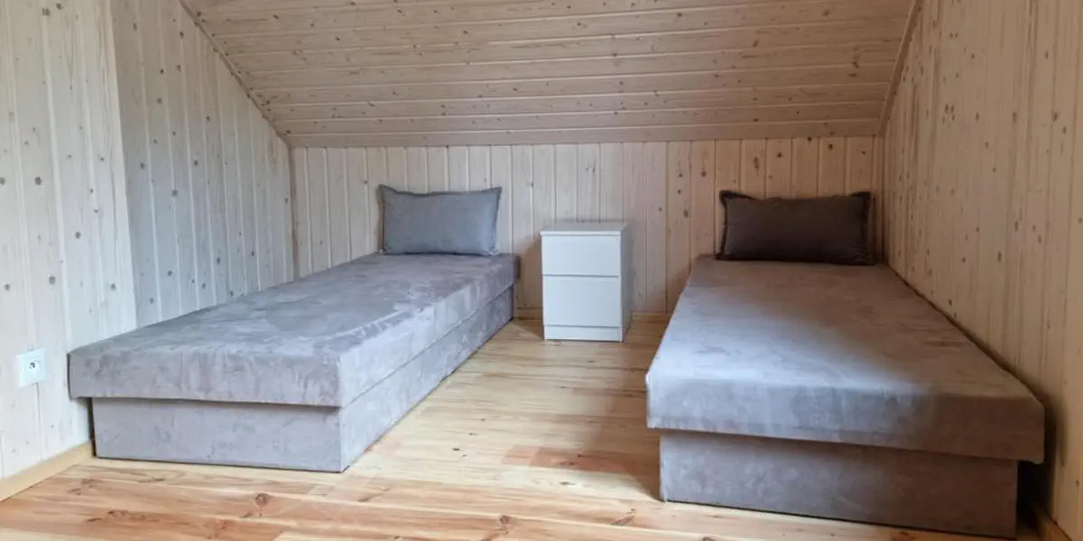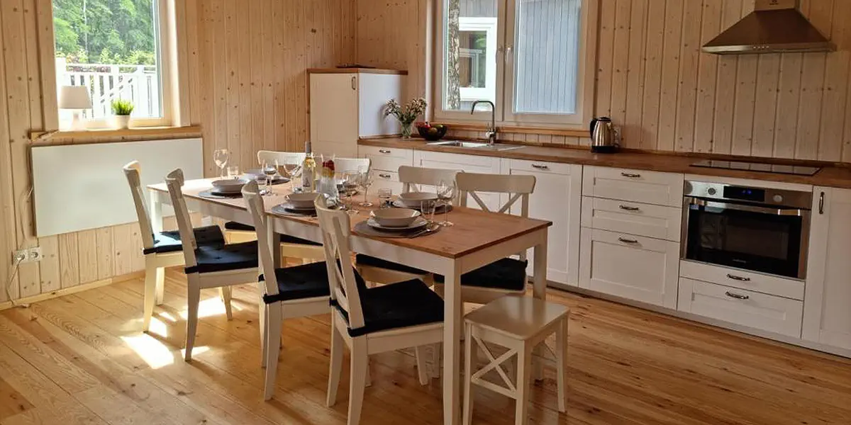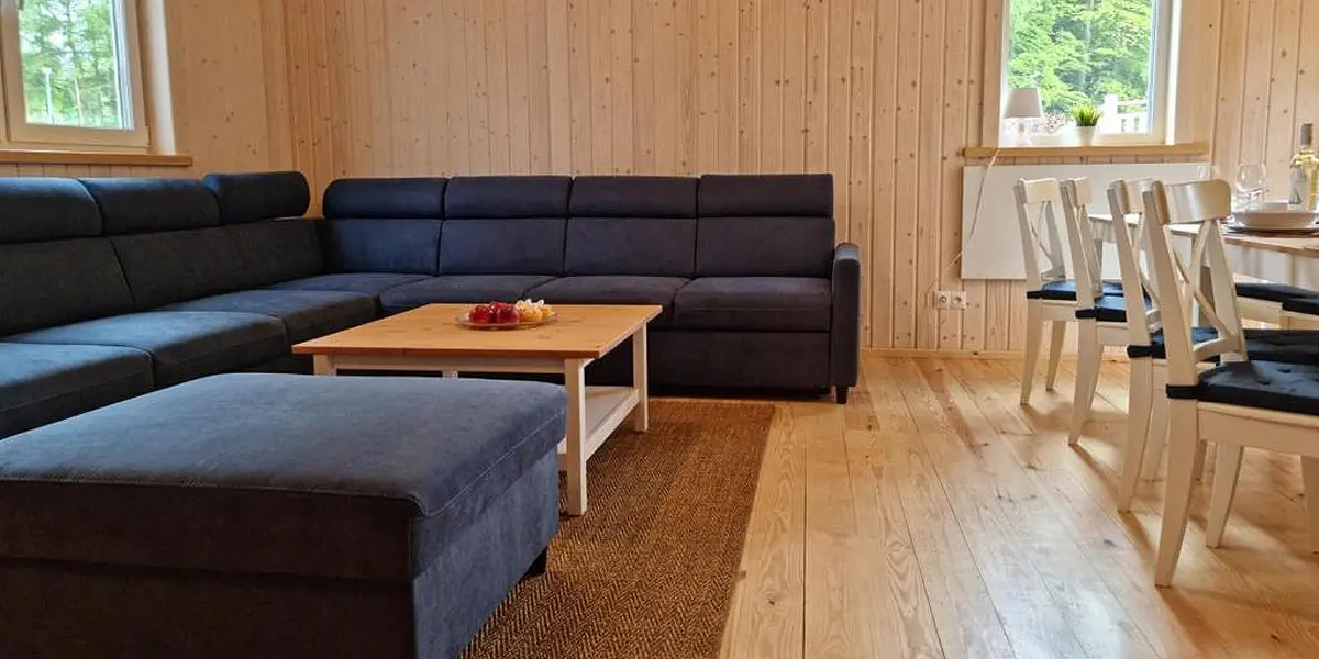 Domek z salonem, aneksem kuchennym, łazienką, 2 sypialniami i tarasem