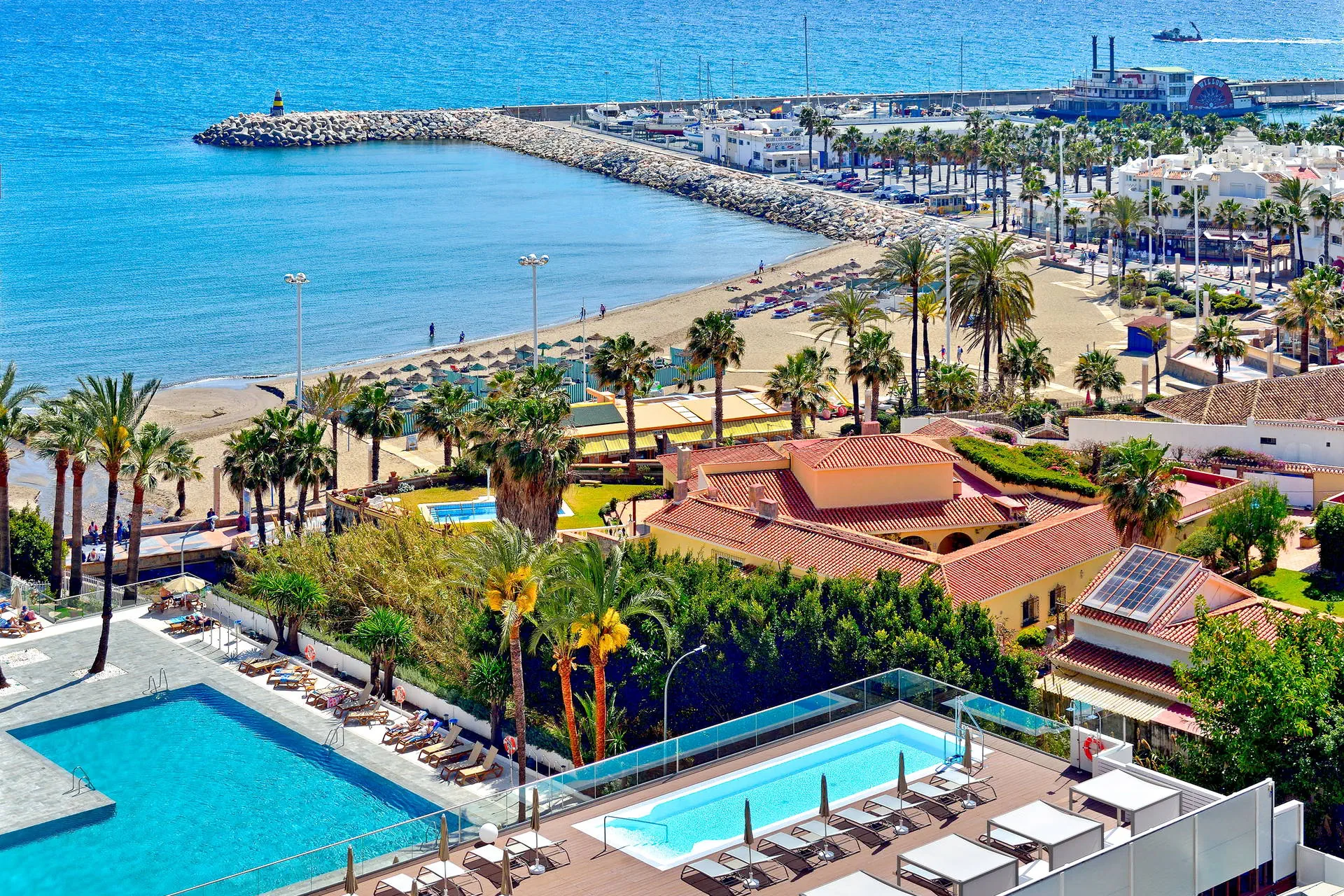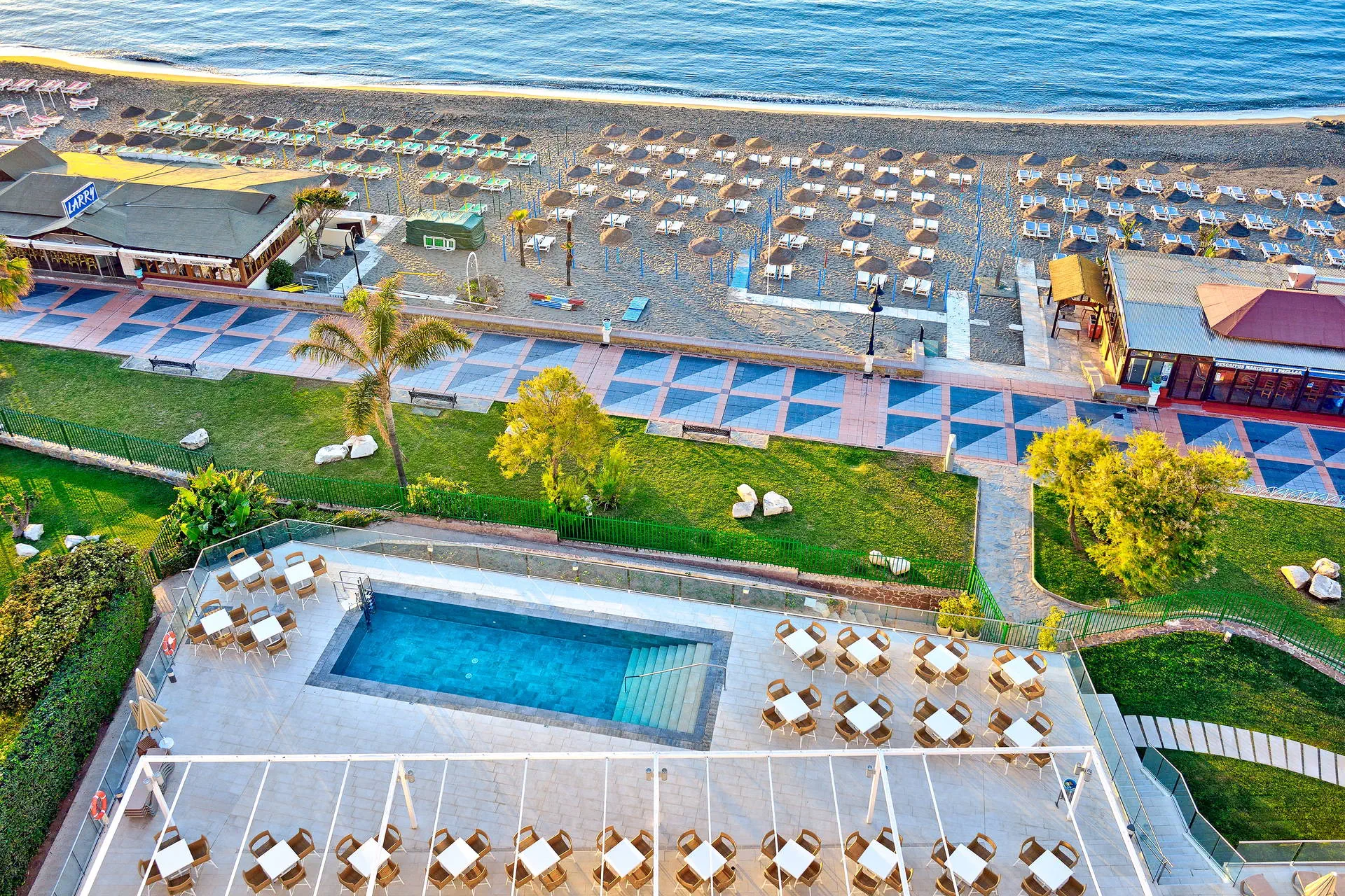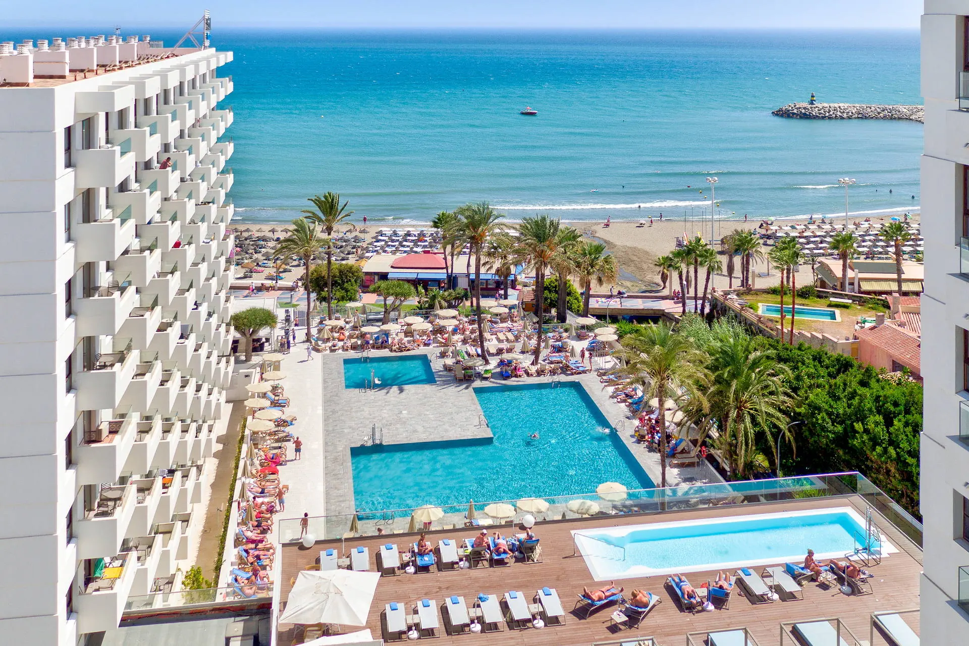 Położenie: Ten elegancki, całkowicie wyremontowany w 2016r. hotel położony jest ok. 1,5 km od centrum Torremolinos, przy nadmorskiej promenadzie ze sklepami, barami i restauracjami. Do lotniska w Maladze ok.10 km. Plaża: Tuż przy hotelu znajduje się szeroka, piaszczysta plaża, oddzielona jedynie nadmorską promenadą. Hotel zapewnia ręczniki basenowe (depozyt ok.10 EUR/ręcznik). Leżaki i parasole na plaży płatne ( ok 12 EUR/dzień). Do dyspozycji gości: Całodobowa recepcja, przestronne lobby, windy, 3 baseny ze słodką wodą, brodzik dla dziecki, restauracja bufetowa, 3 bary: w lobby, przy basenie i na plaży taras słoneczny z leżakami i parasolami, sklep z pamiątkami, pralnia (płatna dodatkowo). Pokoje: W hotelu znajduje się 349 komfortowo wyposażonych i nowoczesnych pokoi różnego typu rozlokowanych w 10 piętrowych budynkach. Wszystkie klimatyzowane, z łazienką (suszartka do włosów), TV sat, telefonem, sejfem ( możliwa opłata), minibarem (płatnym dodatkowo) oraz balkonem lub tarasem ( meble balkonowe). Łóżeczko dla dziecka do 2 lat - na potwierdzenie. Pokoje suite (pow. ok.34 m2) - dla max 4 osób, 2 osobne pomieszczenia -pokój dzienny i sypialnia oddzielona drzwiami. Istnieje możliwość wstawienia łóżeczka dla dziecka do 2 lat. Za dopłatą możliwy widok na morze. Wyżywienie: Śniadania w formie bogatego bufetu, istnieje możliwość dopłaty do obiadokolacji. Program sportowy i animacyjny: W sezonie hotel prowadzi dzienny program animacyjny dla dzieci i dorosłych oraz wieczorne show z muzyką na żywo. Na terenie hotelu siłownia. Internet: Wi-fi gratis na terenie całego hotelu. Kategoria lokalna: **** Strona www: