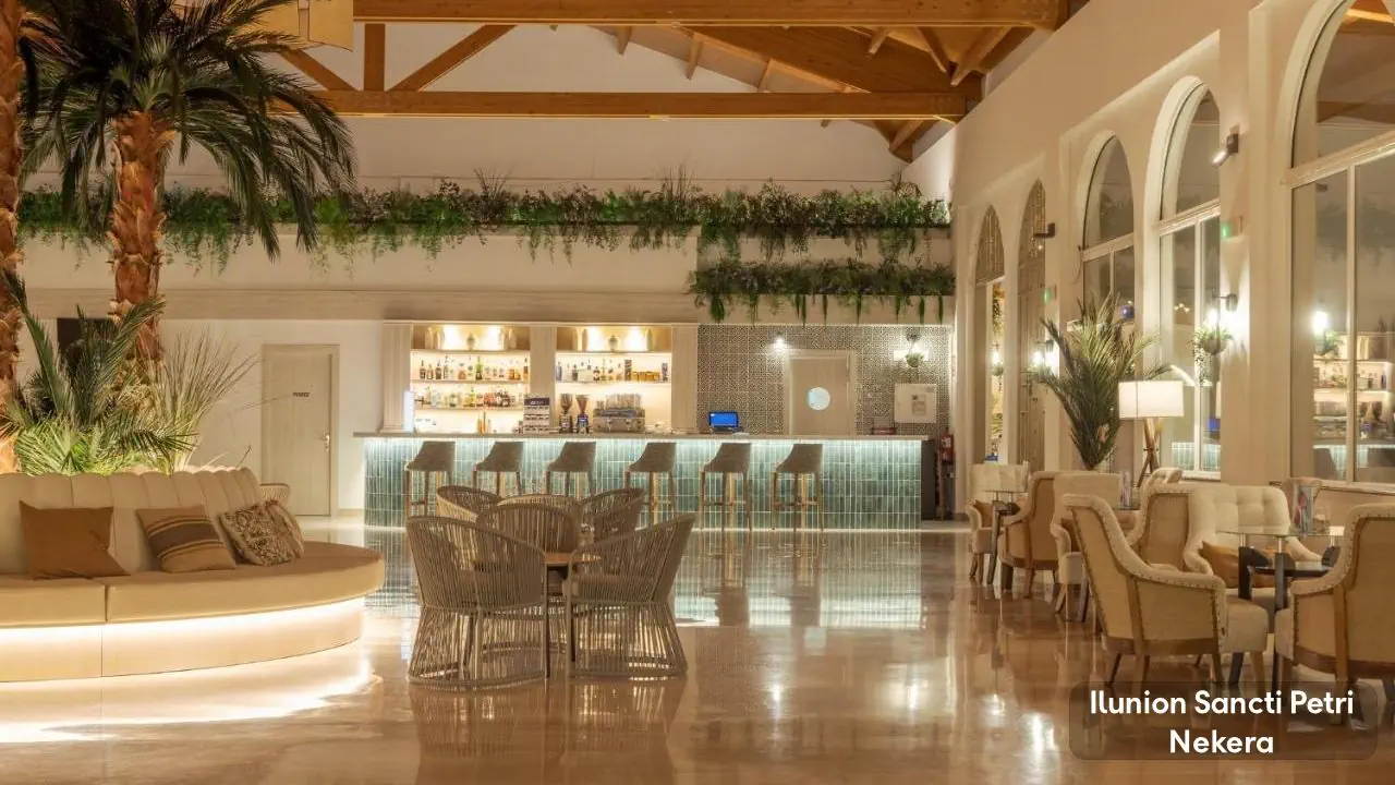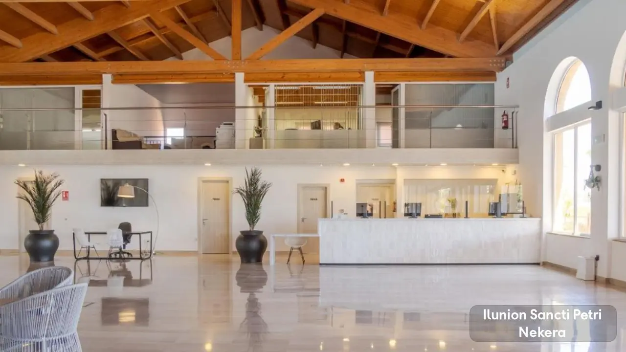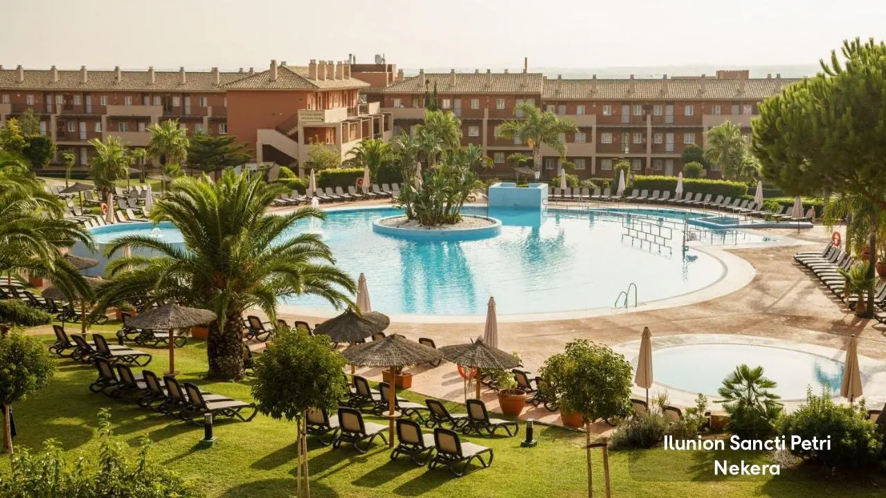 ILUNION Sancti Petri to czterogwiazdkowy hotel położony w Chiclana de la Frontera. Na terenie obiektu znajdują się baseny, restauracja serwująca dania kuchni lokalnej i międzynarodowej oraz udogodnienia dostosowane do potrzeb osób z niepełnosprawnościami. Hotel jest również przyjazny dla zwierząt, umożliwiając gościom pobyt ze swoimi pupilami. Dzięki dogodnej lokalizacji, goście mają łatwy dostęp do pobliskich pól golfowych. O HOTELU - czterogwiazdkowy - pokoje w domkach - posiada pokoje przystosowane dla osób niepełnosprawnych - przyjazny zwierzętom POŁOŻENIE - ok. 65 km od lotniska - ok. 11 km od zamku Castillo de Sancti Petri - ok. 40 km od Kadyksu PLAŻA - piaszczysta - publiczna - leżaki i parasole za dodatkową opłatą - łagodne zejście do wody SPORT I ROZRYWKA - siłownia - basen - obiekty sportowe między innymi pole golfowe za dodatkową opłatą USŁUGI - parking za opłatą - bezpłatne Wi-Fi tylko w holu - pralka i suszarka do dyspozycji gości za opłatą - usługa sprzątania pokoju za opłatą DOSTĘPNE POKOJE Apartament z jedną sypialnią - ok. 35 m² - salon z wyjściem na taras - pokój z dwoma łóżkami - w pełni wyposażona kuchnia - klimatyzacja - telewizja - sejf za dodatkową opłatą Apartament z dwiema sypialniami - ok. 48 m² - dwie sypialnie z dwoma pojedynczymi łóżkami - taras - prywatna łazienka - w pełni wyposażona kuchnia - klimatyzacja - telewizja - sejf za dodatkową opłatą WYŻYWIENIE Self Catering (SC) - bez wyżywienia Bed & Breakfast (BB) - śniadanie w formie bufetu Half Board (HB) - śniadanie i kolacja w formie bufetu. Napoje do kolacji płatne. Full Board (FB) - śniadanie, obiad i kolacja w formie bufetu. Napoje do obiadu i kolacji płatne. RESTAURACJE I BARY - restauracja Atlantis - bar gastro basen