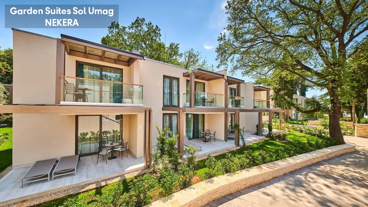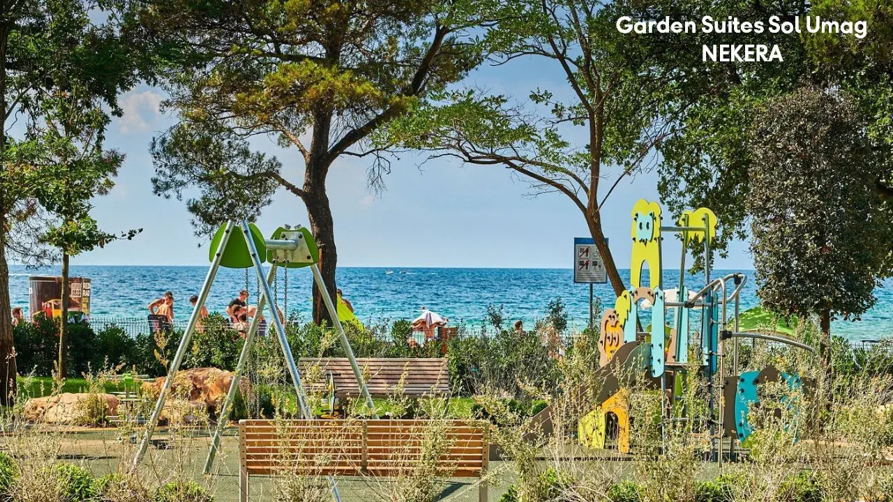 nowoczesny ośrodek w cieniu lasu piniowego. Do centrum Umag ok. 1,5 km. Skalisto-żwirowa plaża z platformami kąpielowymi ok. 50 m.