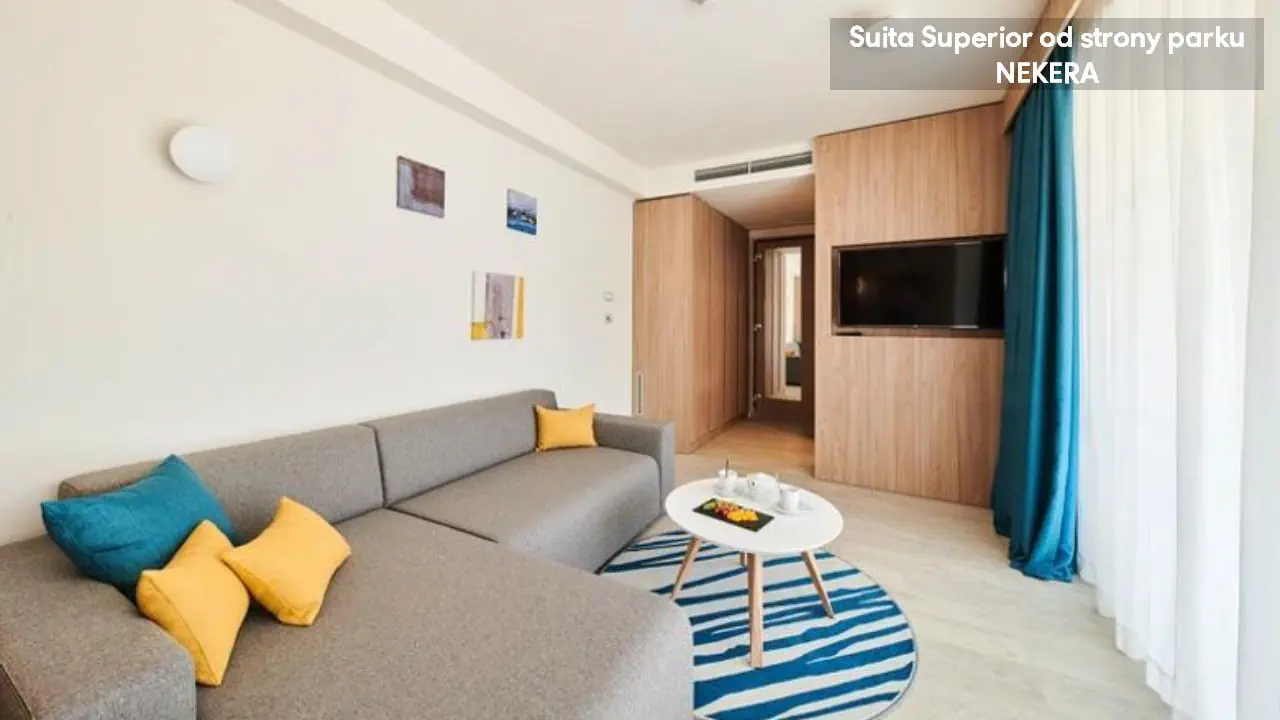 superior suite U4BPG (ok. 32 m2): prysznic, WC, suszarka, klimatyzacja, mini bar (za opłatą), telefon, TV Sat, sejf, WiFi, balkon, widok na park. Sypialnia i pomieszczenie mieszkalno-sypialne z rozkładanym tapczanem dla 2 osób. Premium suite U4BNG (ok. 32 m2): wyposażone jak superior suite U4BPG, dodatkowo od strony morza.