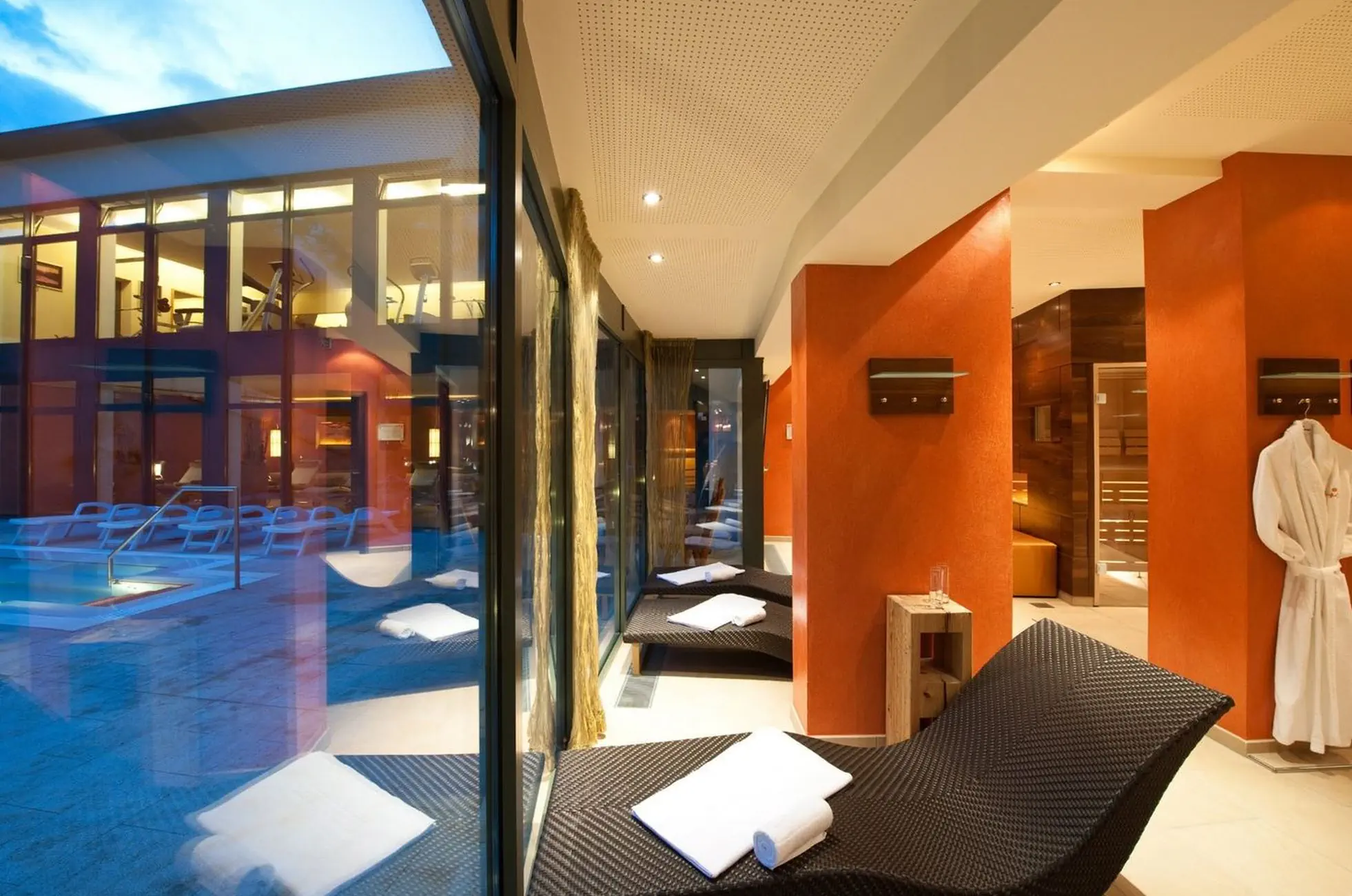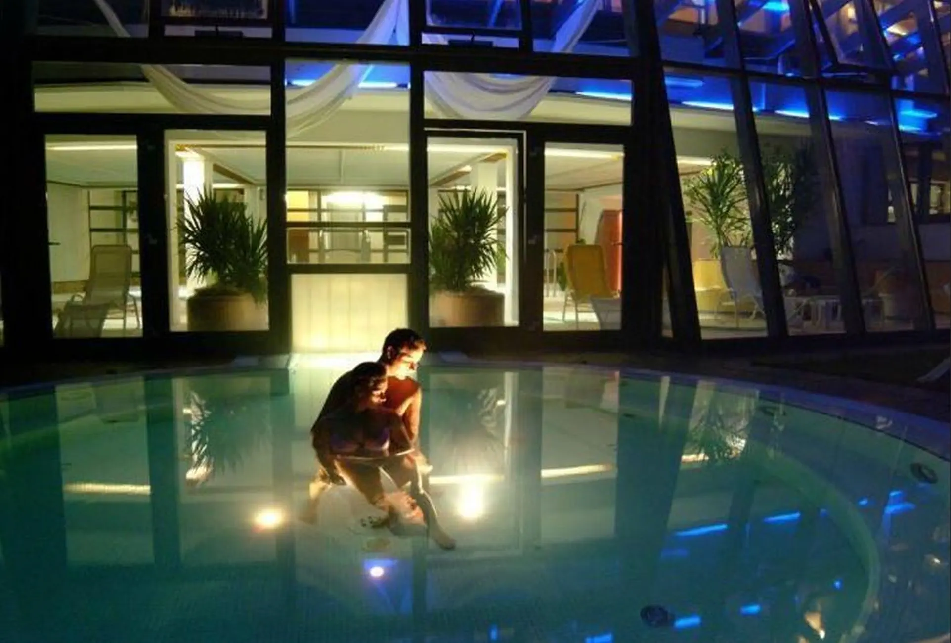 o pow. 300 m2. Basen zewnętrzny (ok. 25 m2), basen wewnętrzny (12 x 4 m), łaźnia parowa, pokój relaksacyjny. Za opłatą: masaże, solarium, centrum urody.