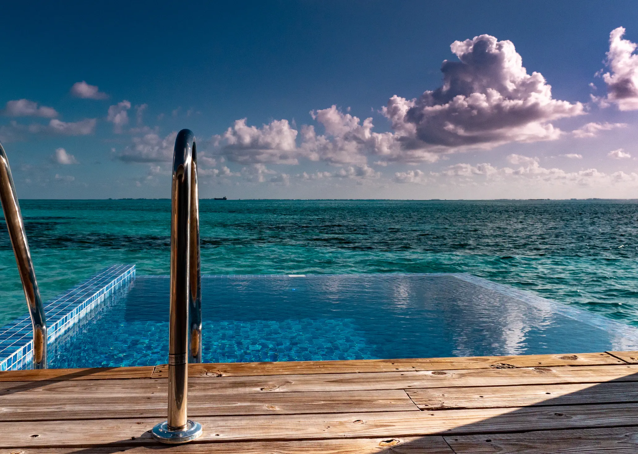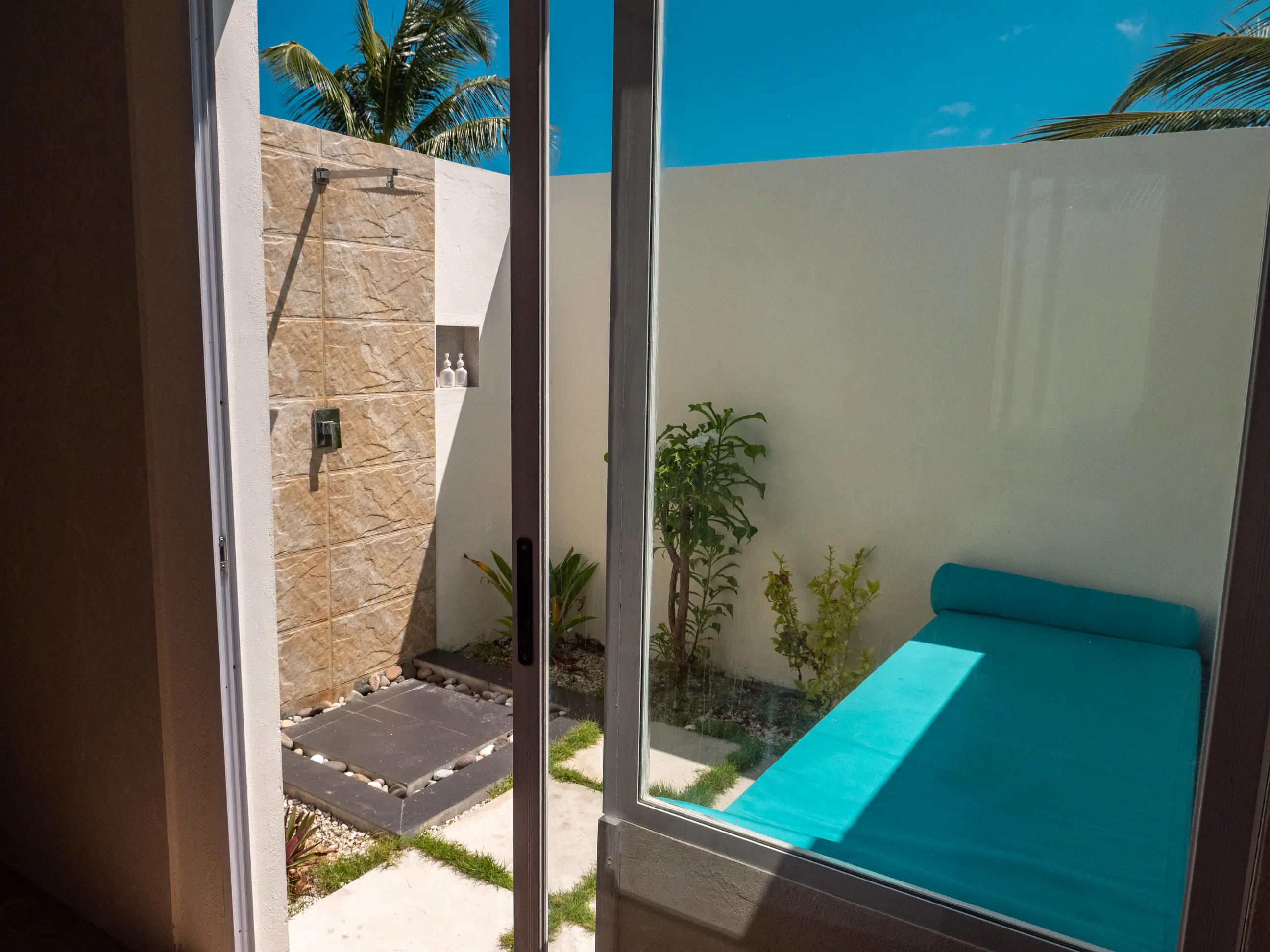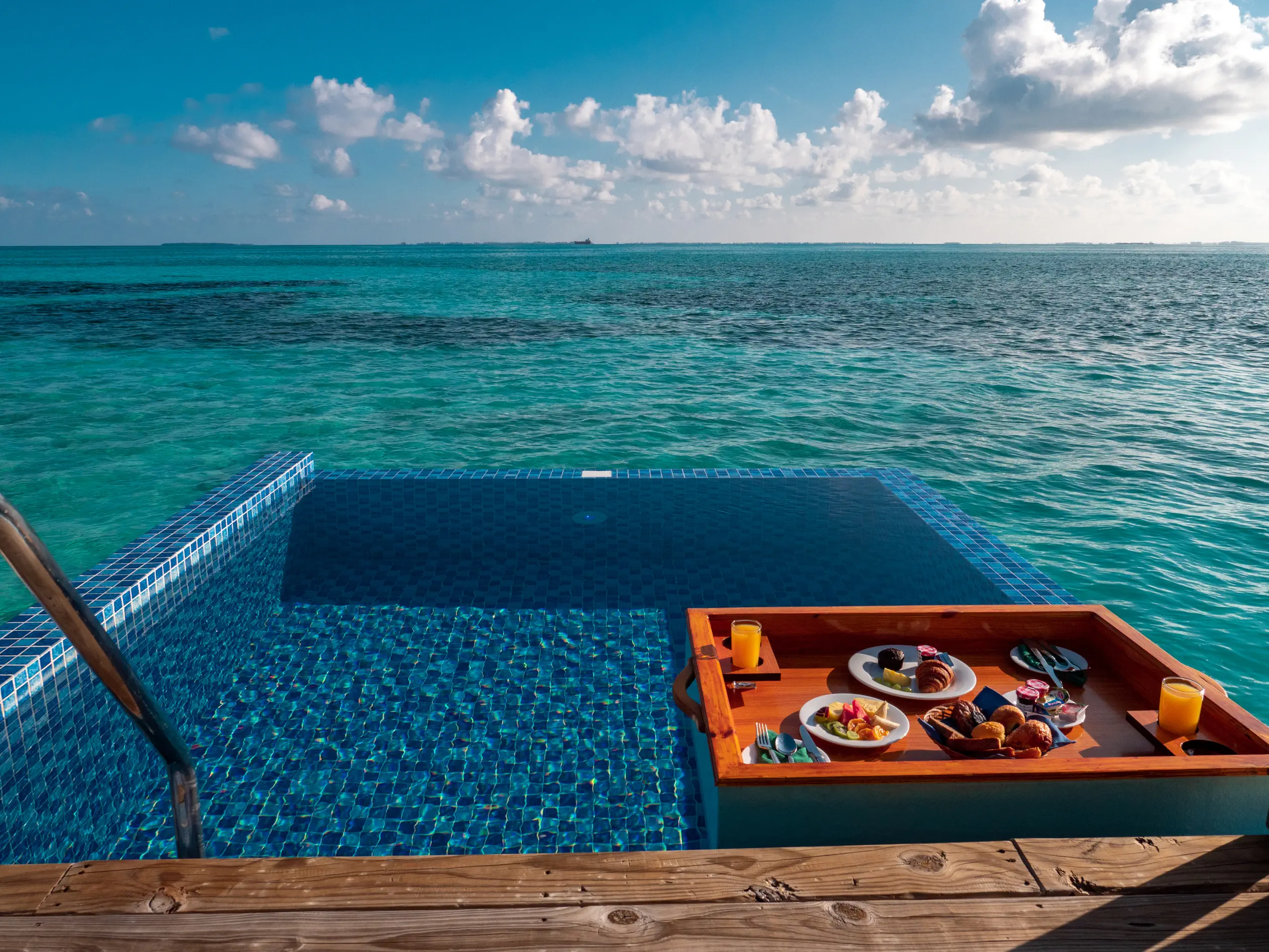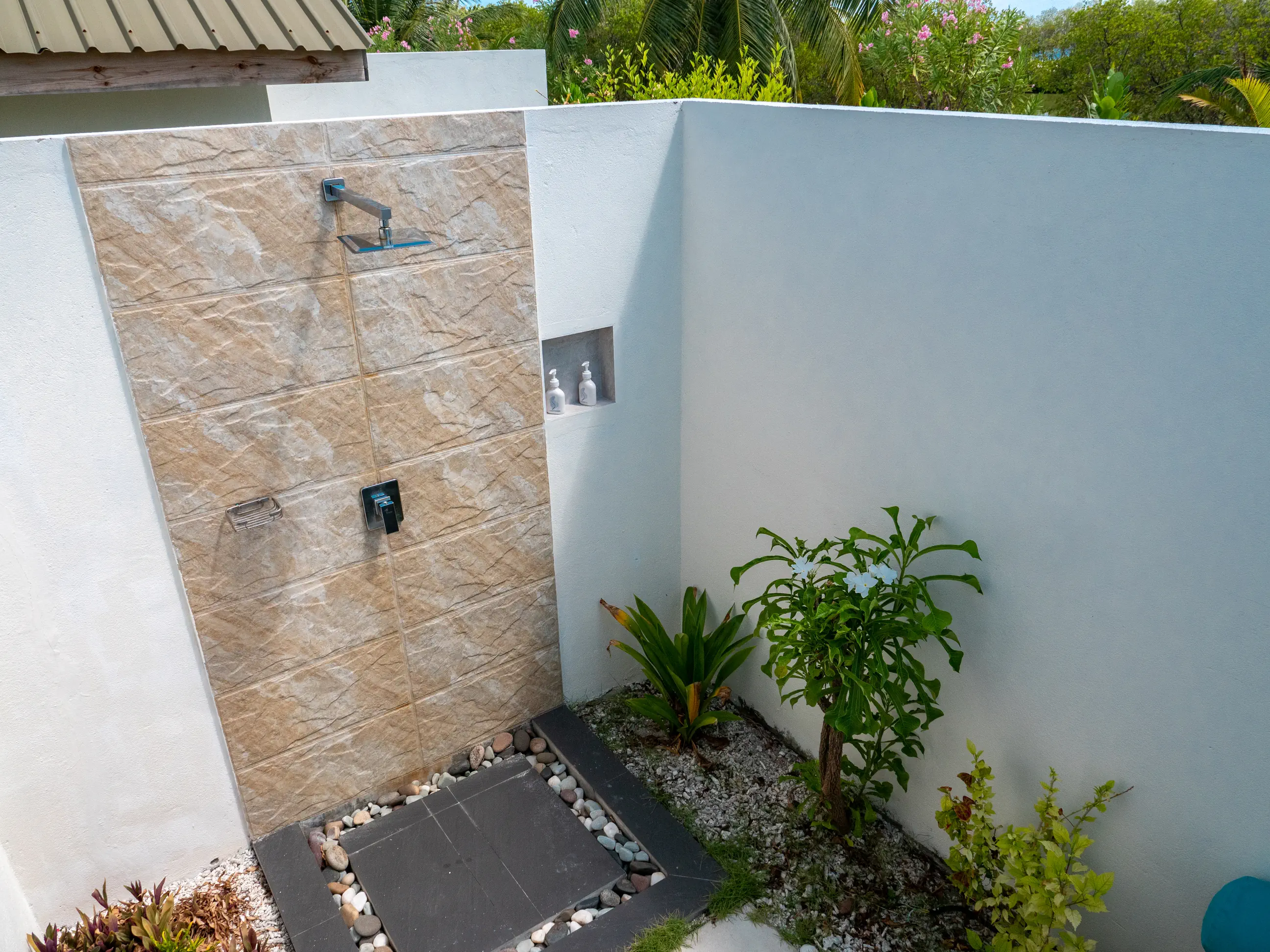 Dla max. 3 osób, Przestrzeń zewnętrzna: Taras, Kanały telewizji: Angielski, Telefon w pokoju, prysznic, Powierzchnia pokoju: ok. 75 m2, Dostawka: łóżko rozkładane, Rodzaj podłogi: płytki, Sprzątanie codziennie, część jadalniana, miejsce do pracy, 1 sypialnia, Przepierzenie, Maksymalna liczba osób dorosłych: 3, Maksymalna liczba dzieci: 2, Concierge (bezpłatnie), Kwiaty i owoce, Widok na lagunę,Frontalny widok na morze,Widok na morze, Bezpośredni dostęp do plaży, Prywatny basen, Liczba łazienek: 1, Liczba toalet: 1, Zestaw do parzenia kawy i herbaty, Klimatyzacja: Klimatyzacja indywidualna