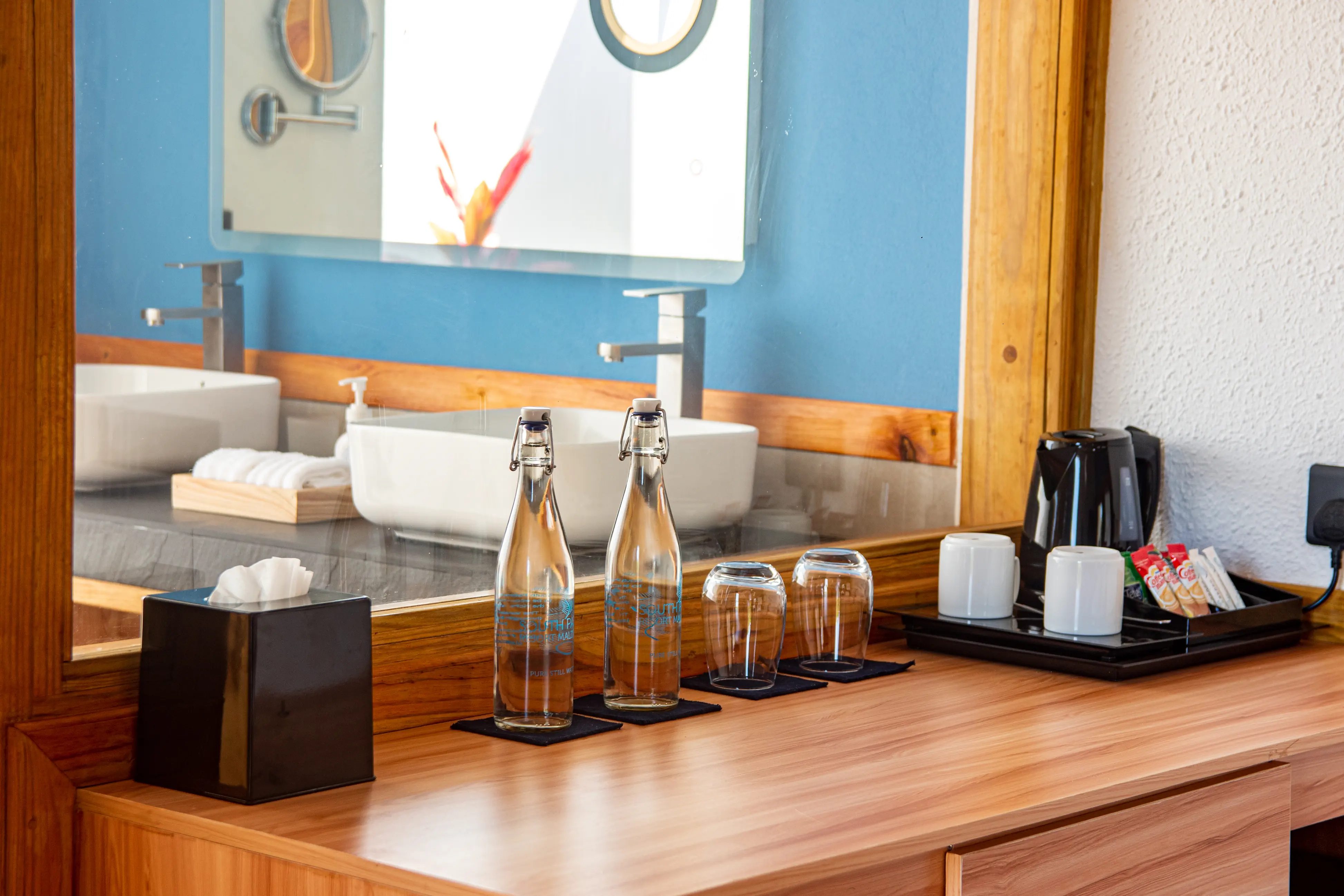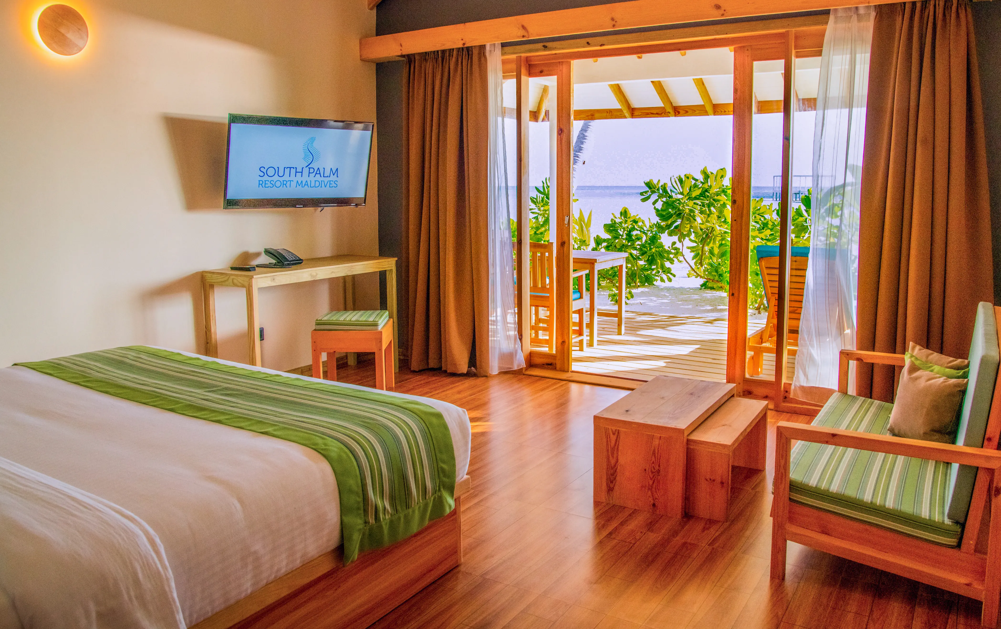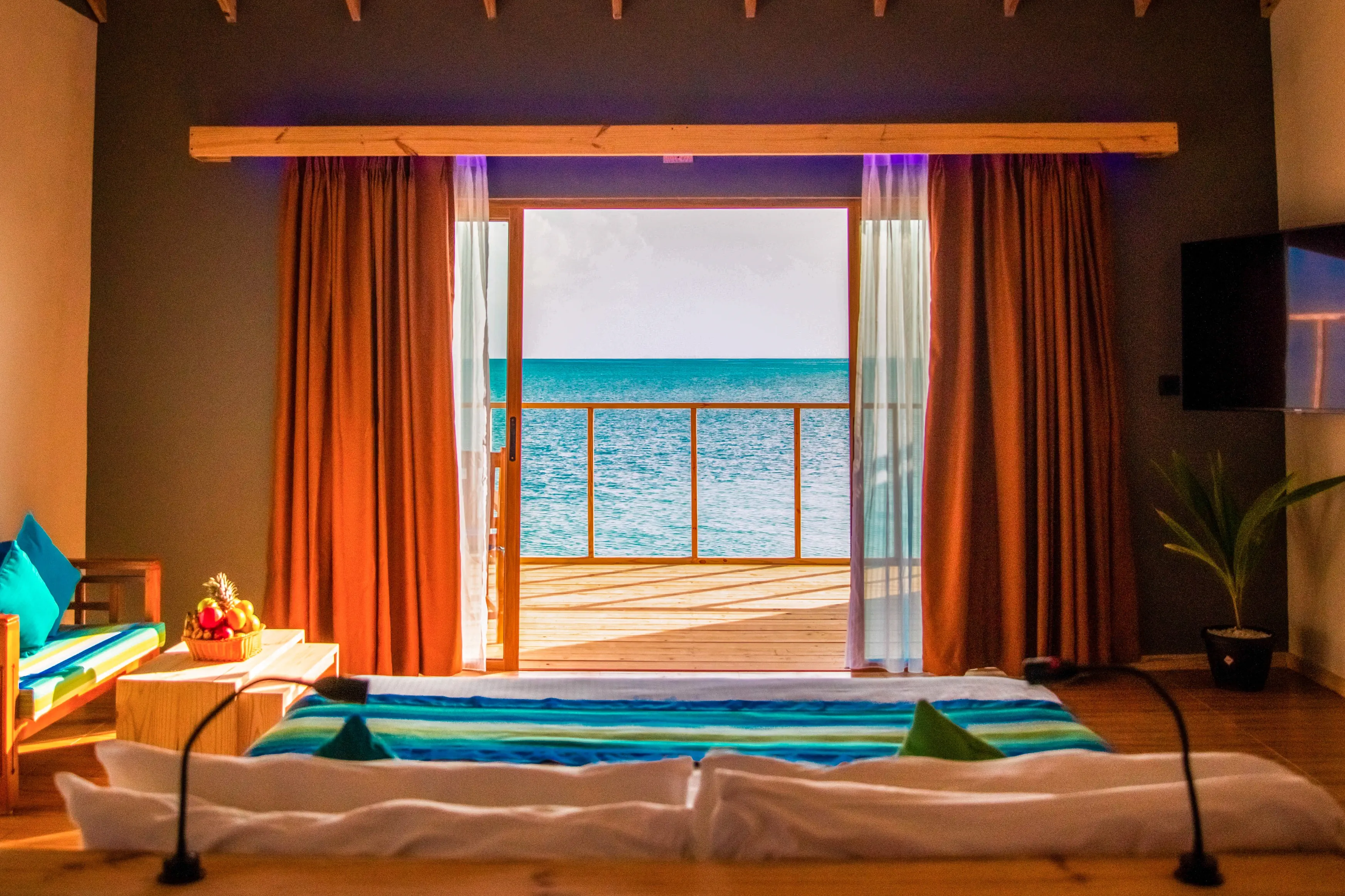 Dla max. 3 osób, Przestrzeń zewnętrzna: Taras, Kanały telewizji: Angielski, Telefon w pokoju, prysznic, Powierzchnia pokoju: ok. 70 m2, Dostawka: łóżko rozkładane, Rodzaj podłogi: płytki, Sprzątanie codziennie, część jadalniana, miejsce do pracy, 1 sypialnia, Przepierzenie, Maksymalna liczba osób dorosłych: 3, Maksymalna liczba dzieci: 2, Concierge (bezpłatnie), Widok na lagunę,Frontalny widok na morze,Widok na morze, Bezpośredni dostęp do plaży, Liczba łazienek: 1, Liczba toalet: 1, Zestaw do parzenia kawy i herbaty, Klimatyzacja: Klimatyzacja indywidualna