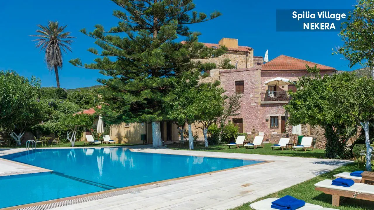 na zachodnim wybrzeżu wyspy Krety, w wiosce nieopodal Kolymbari. Niewielki port; ok. 3,6 km, Platanias z licznymi barami i tawernami: ok. 15 km, Chania ze Starówką: ok. 25 km, najpiękniejsza z plaż w Grecji z Laguną Balos i różowym piaskiem. ok. 31,5 km, Wąwóz Samaria: ok. 65 km. Port lotniczy w Chanii oddalony o ok. 42 km.