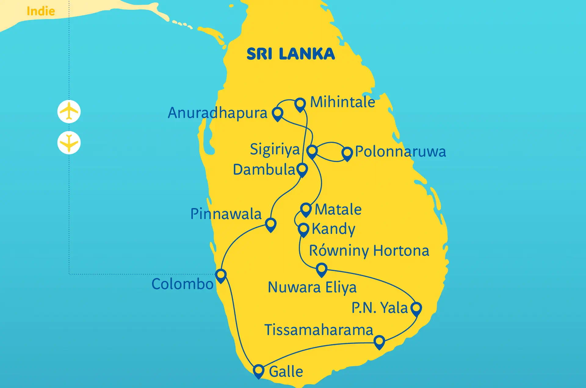 Zakwaterowanie Części objazdowa Hotele o standardzie odpowiadającym ****/ ***** w ocenie organizatora - (8 rozpoczętych dób hotelowych). Pokoje: we wszystkich hotelach wyposażone są w: klimatyzację, łazienkę, często mini bar (płatny dodatkowo) i TV. Część pobytowa Hotele - (6 rozpoczętych dób hotelowych) zakwaterowanie w hotelu wybranym z oferty „Pobyt na Sri Lance”.