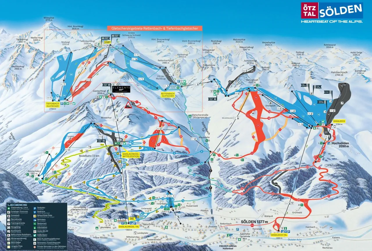w Sölden - słynnym ośrodku narciarskim w austriackim Tyrolu. Bezpośrednio przy hotelu znajduje się dolna stacja nowej kolejki gondolowej Giggijoch (na wysokości 1362 m. n.p.m), kursującej na stoki ośrodka narciarskiego Hochsölden-Giggijoch. System wyciągów i tras narciarskich pozwala dotrzeć do podnóża lodowca Rettenbach, dorocznej areny zawodów narciarskich w narciarstwie alpejskim.