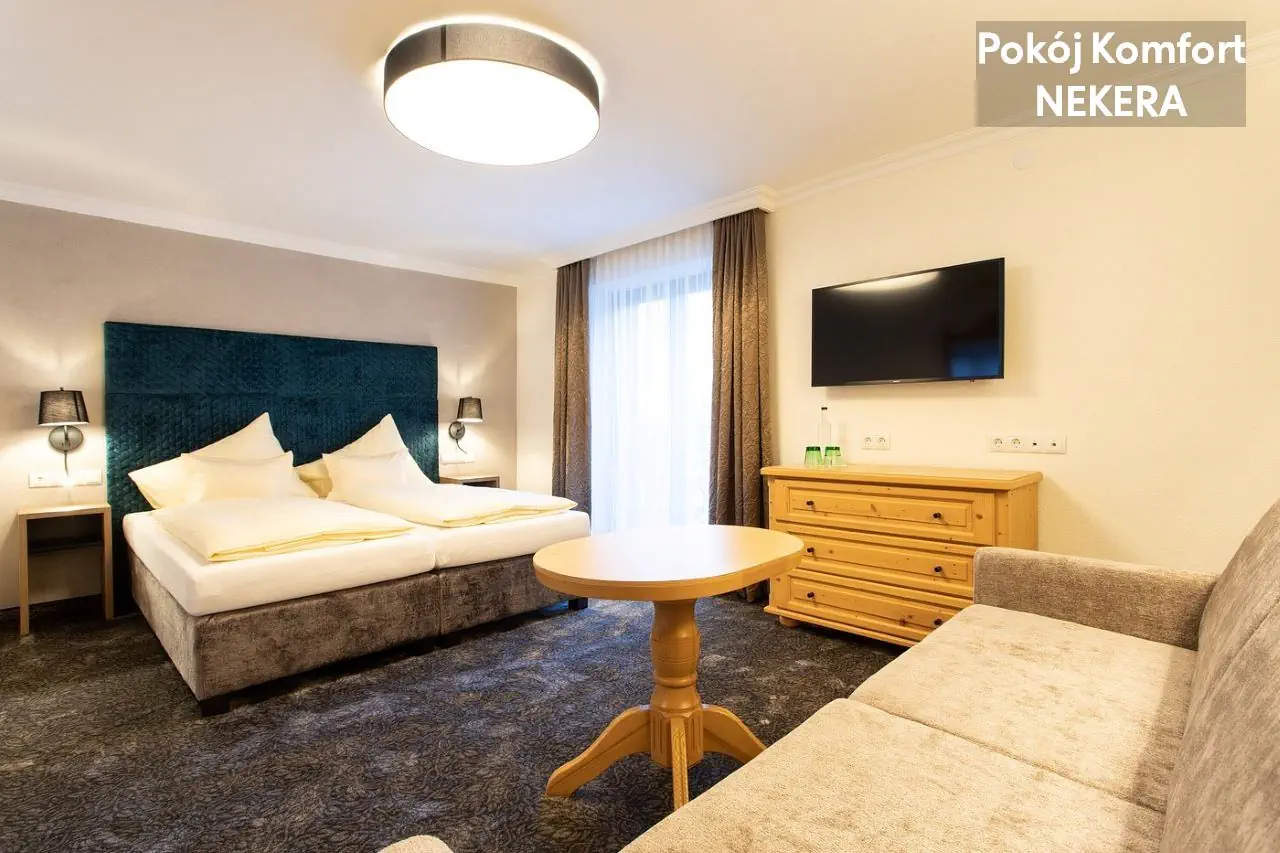 Noclegi, wyżywienie zgodnie z rezerwacją, telefoniczną opiekę rezydenta. Dodatkowo w przypadku imprez pakietowych z przelotem, oprócz ww. świadczeń w cenie zawarty jest: przelot, opłata lotniskowa, opłata za wylot z lotniska lokalnego, transfer lotnisko-hotel-lotnisko (chyba, że dana oferta stanowi inaczej), ubezpieczenie dla imprez turystycznych, bezpośrednia opieka polskojęzycznego rezydenta - w sezonie letnim (wakacyjnym): Kreta, Rodos, Turcja (Riwiera), Majorka, Bułgaria, całorocznie: Malta, na pozostałych kierunkach opieka telefoniczna lub przez czat w serwisie moja.nekera.pl. W przypadku imprez turystycznych opartych o przeloty przewóz bagażu może być nieuwzględniony w cenie. Cena uzależniona jest m.in. od przewoźnika oraz terminu wyjazdu, należy ją zweryfikować podczas zakupu. Linie lotnicze, w których bagaż jest w cenie (20 kg bagaż główny oraz bagaż podręczny) - przeloty czarterowe: Enter Air, LOT (dla wylotów na Rodos), Sky Express, Holiday Europe, European Air Charter, Ryan Sun (dla wylotów na Rodos) oraz przeloty rejsowe: Sun Express, Corendon, Pegasus Airlines, Emirates, Fly Dubai, Quatar Airlines, Air France, Austrian Airlines.Przykładowe linie lotnicze, gdzie bagaż jest dodatkowo płatny to: FR (Ryanair), W6 (WizzAir), Easy Jet. Podane godziny serwowania posiłków oraz funkcjonowania poszczególnych elementów infrastruktury hotelowej mogą ulec nieznacznym zmianom, ze względu na sezonowość, siły wyższe i inne okoliczności.