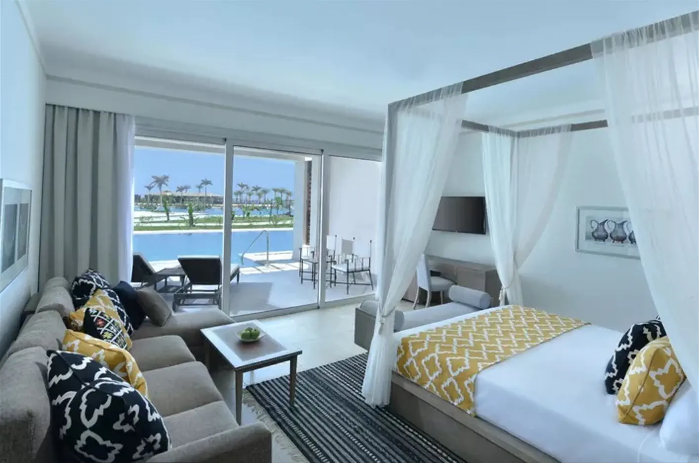 Dla max. 3 osób, Przestrzeń zewnętrzna: Taras, Kanały telewizji: Angielski, Telefon w pokoju, prysznic, Powierzchnia pokoju: ok. 45 - 50 m2, Rodzaj podłogi: wykładzina, Sprzątanie codziennie, 1 sypialnia, Maksymalna liczba osób dorosłych: 3, Maksymalna liczba dzieci: 0, Frontalny widok na basen, Liczba łazienek: 1, Liczba toalet: 1, Zestaw do parzenia kawy i herbaty, Klimatyzacja: Klimatyzacja indywidualna