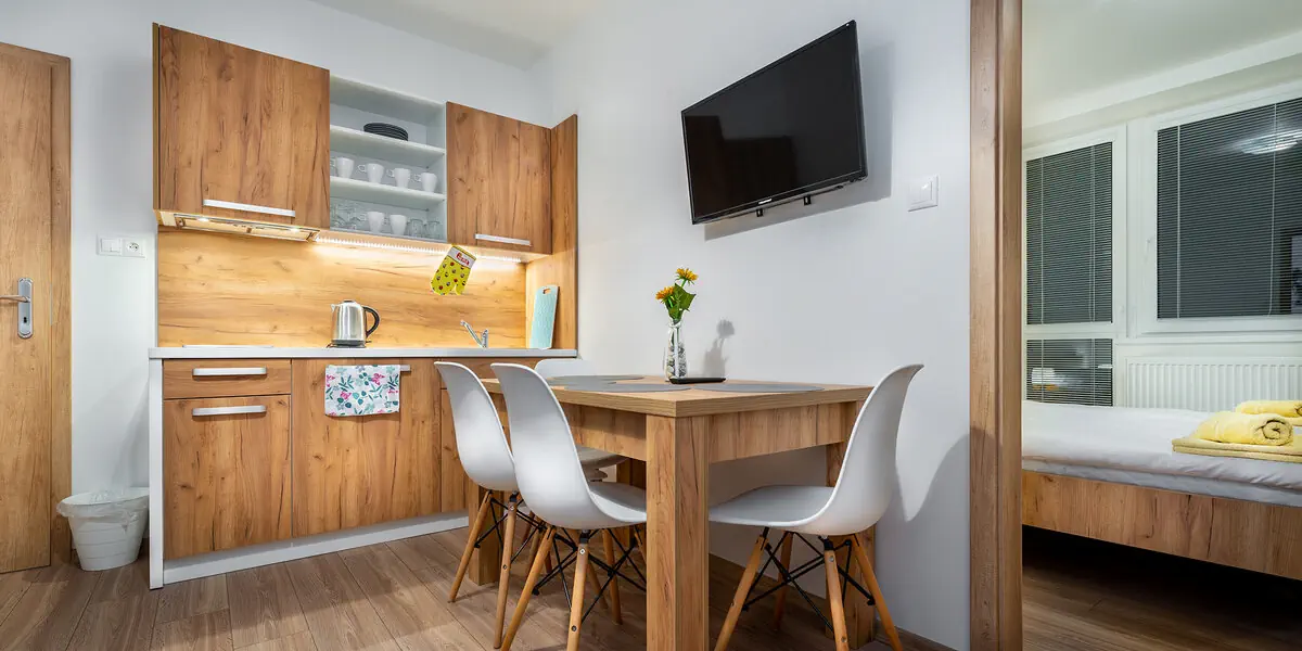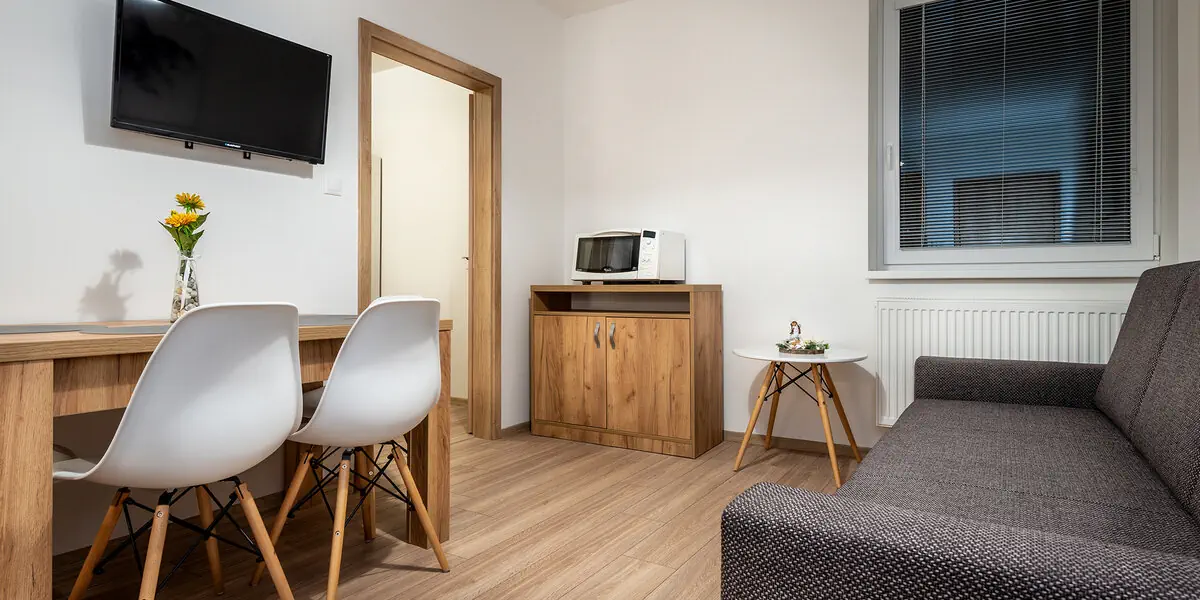 - Nocleg w wybranym apartamencie - Dostęp do basenu z jacuzzi: 90 min/dzień/osoba - W piątki i soboty terminie 12.1.2026-29.3.2026 dostęp do basenu oraz strefy wellness z saunami: 120 min/dzień/osoba - Bezpłatny parking - Internet Wi-Fi - Podatek VAT