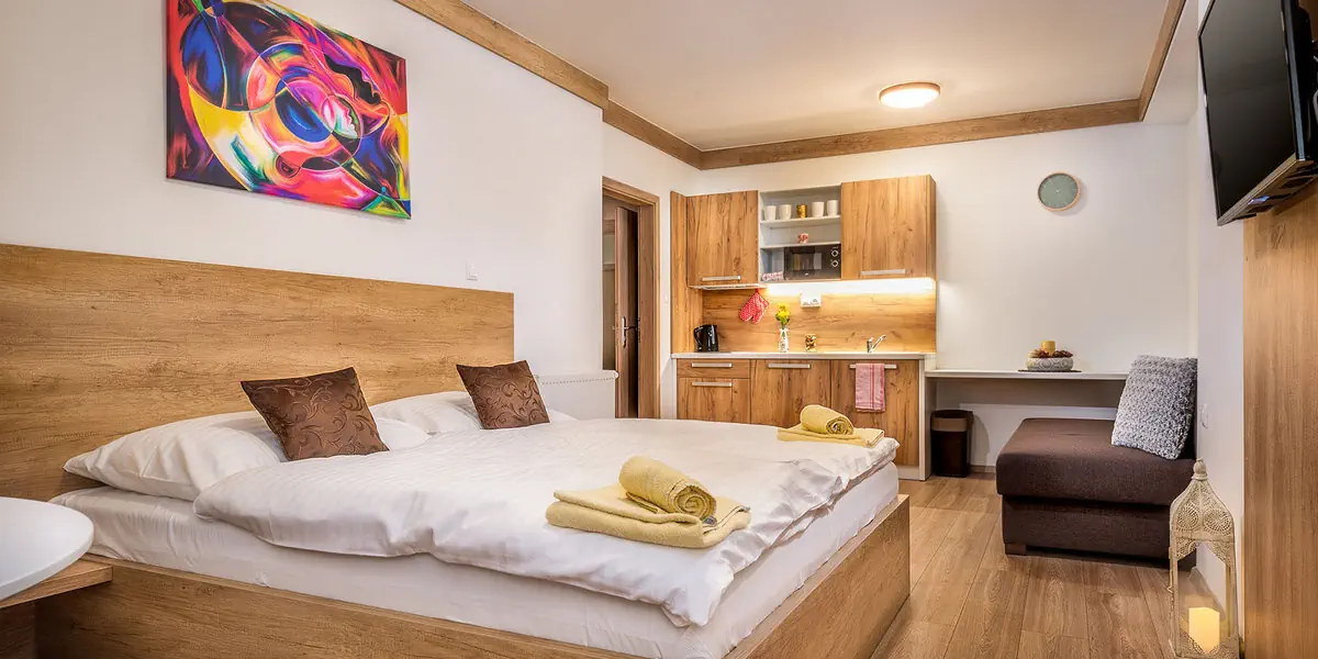 Apartmany Stiavnica zapraszają do odpoczynku u stóp słowackich Niżnych Tatr w uzdrowiskowej miejscowości Liptowski Jan. Tutaj zapomnisz o zgiełku i pośpiechu, zanurzysz się w zieleni i malowniczej tatrzańskiej przyrodzie. Relaksowi sprzyjają wygodne apartamenty z widokiem na góry, basen i strefa saun. Udogodnienia: Basen kryty, SPA, Sauna, Wellness, Bar / restauracja, Ogród / Park, Plac zabaw dla dzieci, Kort tenisowy, Pobyt z pupilem, Winda, Parking strzeżony / monitorowany, Płatność kartą