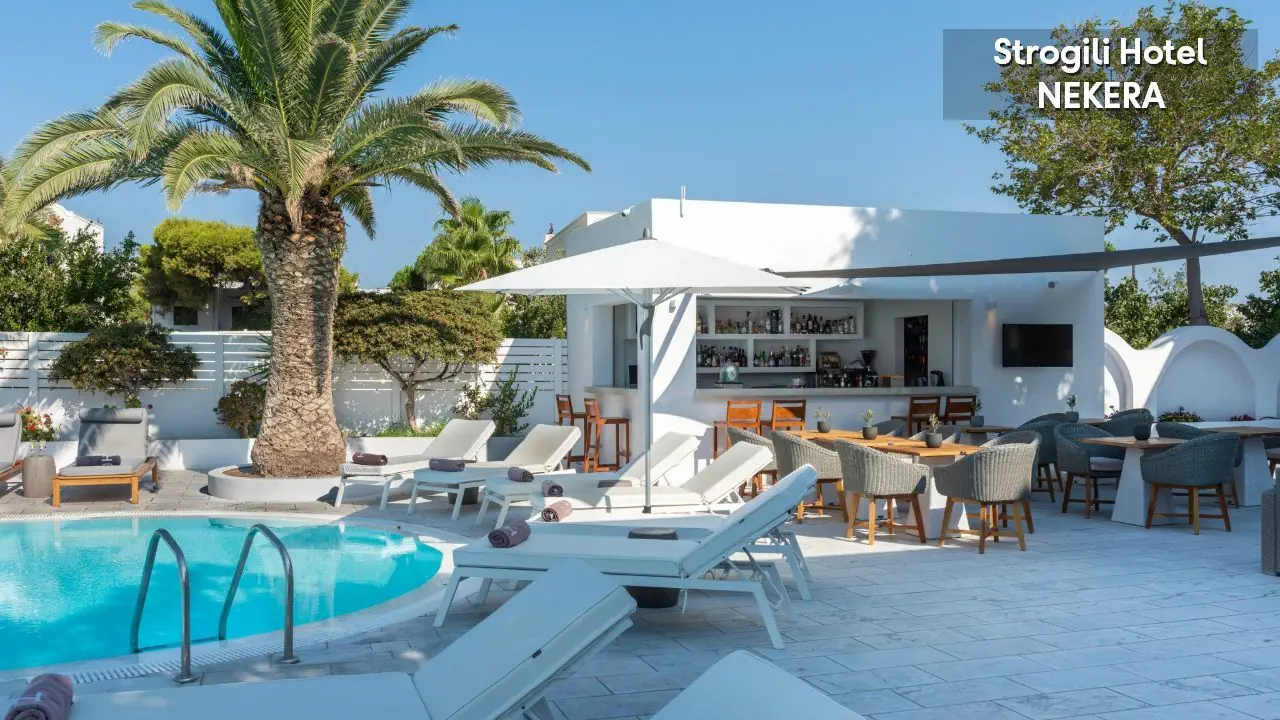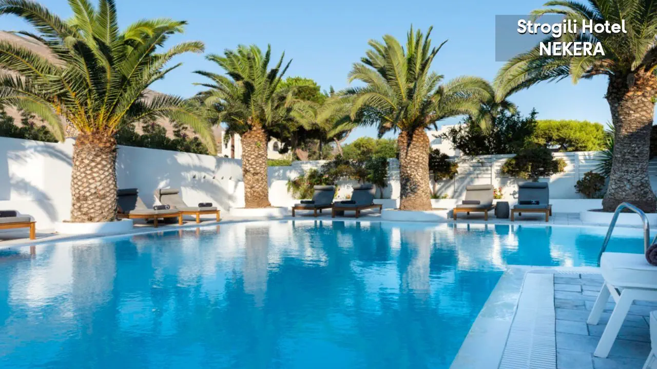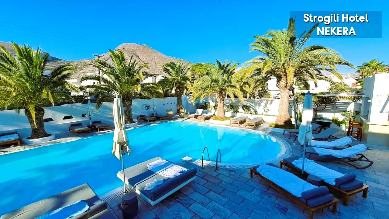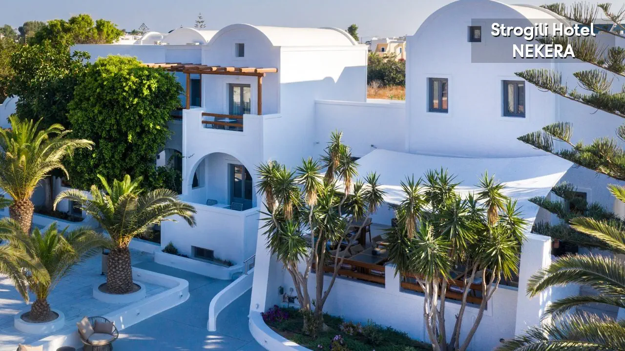 Strogili to urokliwy hotelpołożony w malowniczym Imerovigli, oferujący niezrównany widok na morze Egejskie i wulkan Santorini. Hotel charakteryzuje się tradycyjną, cykladzką architekturą, z białymi ścianami i błękitnymi akcentami, tworzącym relaksującą atmosferę. Goście mogą odpoczywać w komfortowych pokojach z balkonami, korzystać z basenu oraz delektować się lokalnymi specjałami w hotelowej restauracji. Dzięki lokalizacji, tuż obok popularnych atrakcji wyspy, Hotel Strogili stanowi idealną bazę do odkrywania uroku Santorini.