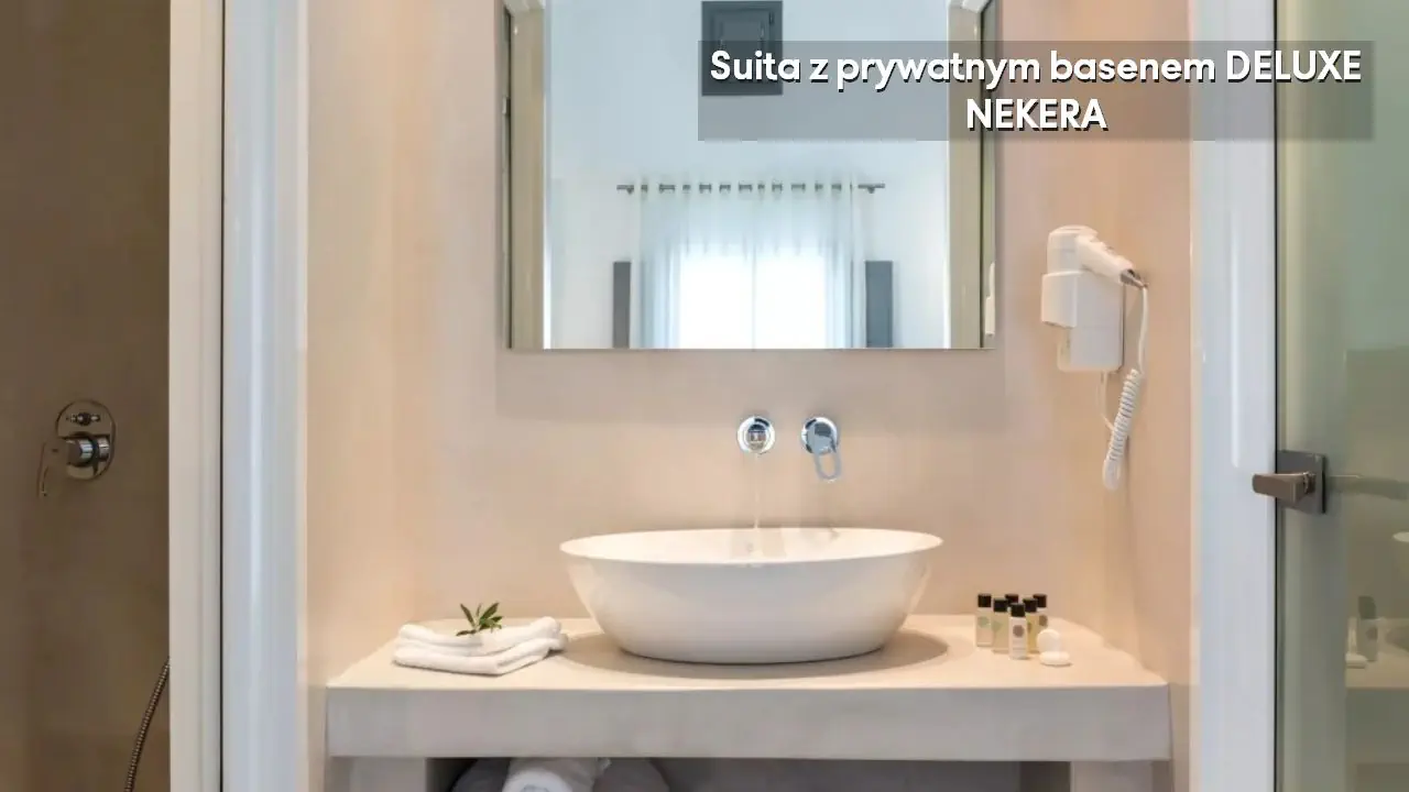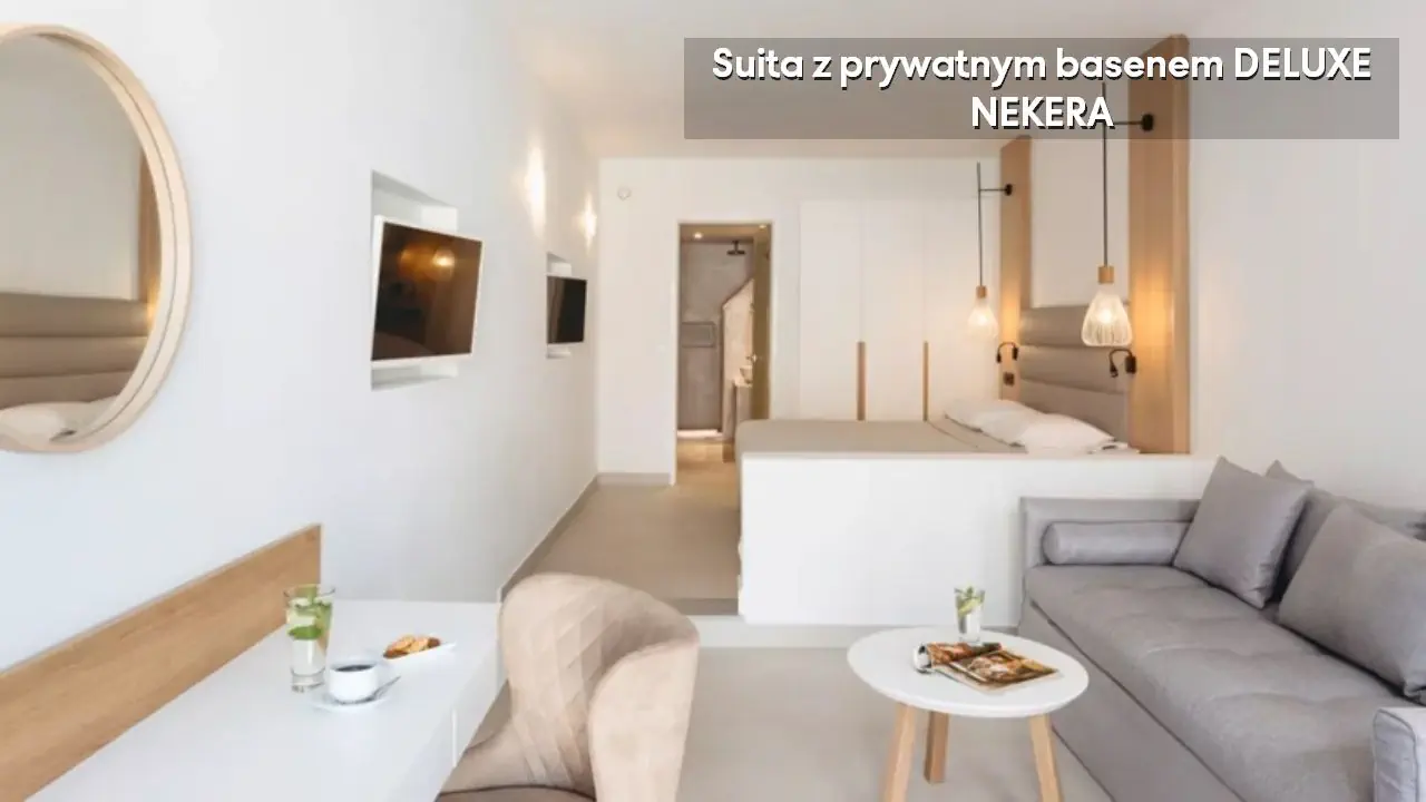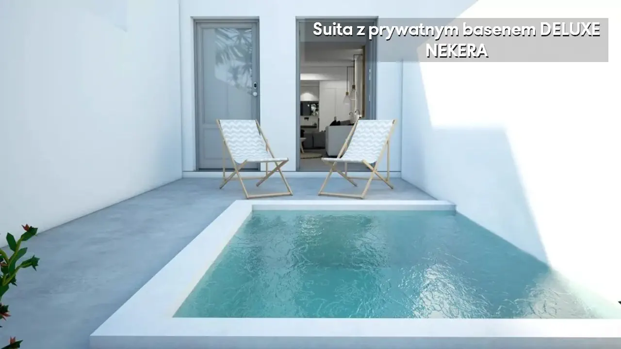 POKÓJ DWUOSOBOWY • ok. 20 m² • maks. 2 osoby dorosłe • łóżko podwójne lub dwa pojedyncze • klimatyzacja • TV-Sat. • minilodówka • sejf • telefon (płatny) • zestaw do parzenia kawy/herbaty • łazienka z prysznicem • suszarka do włosów • minikosmetyki • ręczniki plażowe • umeblowany balkon/taras • widok na ogród POKÓJ DWUOSOBOWY SUPERIOR • ok. 24 m² • maks. 3 osoby dorosłe • łóżko podwójne lub dwa pojedyncze oraz sofa • wyposażony jak pokój standard • umeblowany balkon/taras • widok na ogród SUITA z prywatnym basenem DELUXE • ok. 35 m² • maks. 3 osoby dorosłe • łóżko podwójne lub dwa pojedyncze oraz sofa • wyposażony jak pokój standard • umeblowany taras z prywatnym basenem typu plunge (schodki)