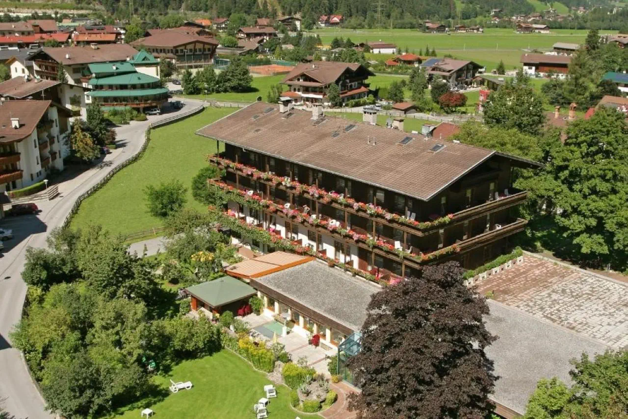 rodzinny hotel w typowym tyrolskim stylu oferuje 50 pokoi w budynku głównym i w 2 budynkach bocznych (Villa Strolz i Gartenhaus). Do dyspozycji Gości: lobby z recepcją i miejscami do wypoczynku, izba z kominkiem, restauracja, bar, winda, przechowalnia bagażu Na zewnątrz ogród z łączką do opalania.