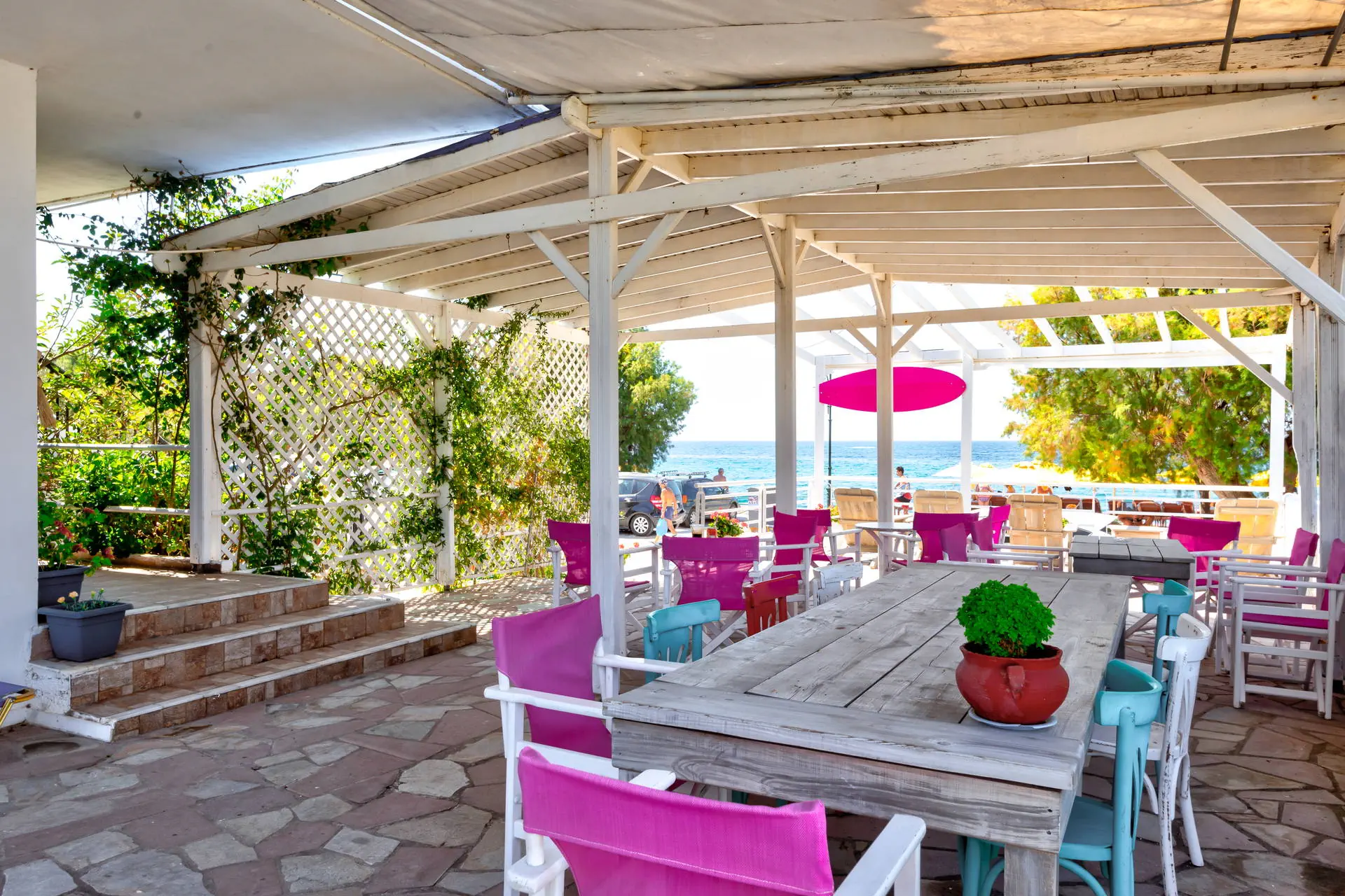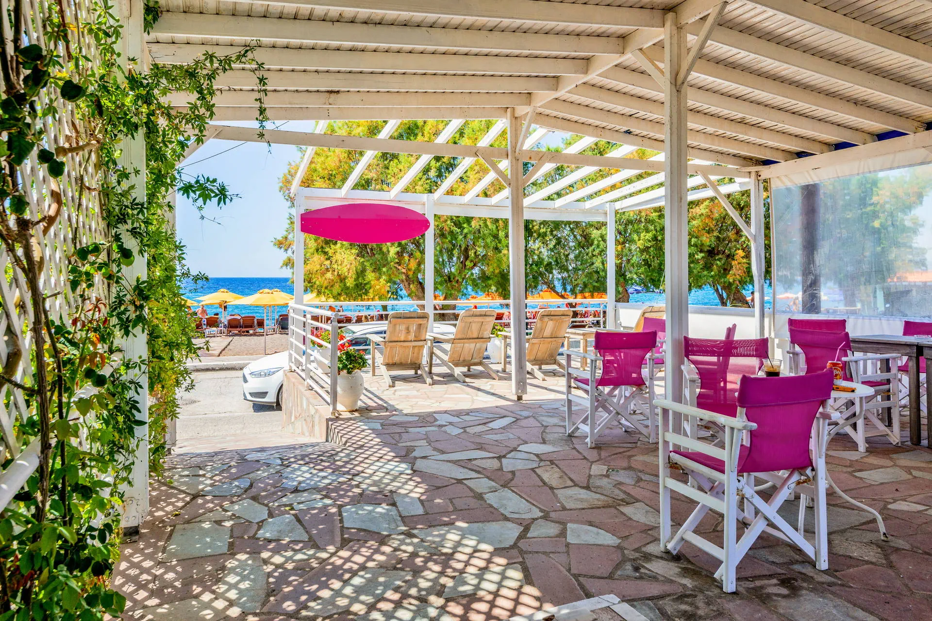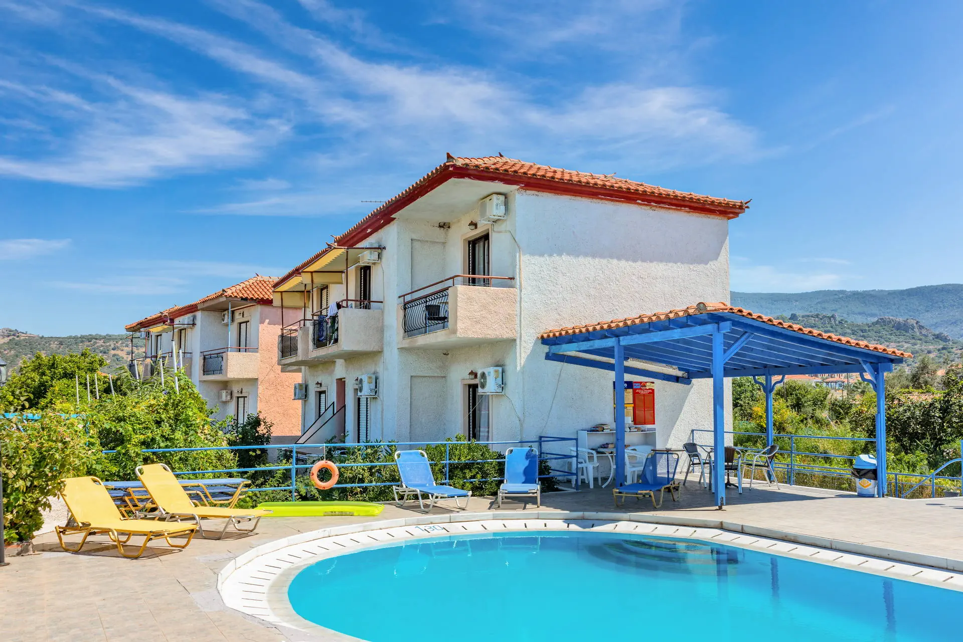 Położenie Studia położone są w kameralnej miejscowości Anaxos, przy środkowej części spokojnej nadmorskiej uliczki.Odległość z lotniska w Mytilene wynosi około 65 km. Do najbliższego sklepu jest około 150 m, a przystanek komunikacji miejskiej znajduje się około 400 m od hotelu. Przystanek komunikacji miejskiej umożliwia dojazd do miejscowości Petry i Molyvos. W okolicy znajduje się kilka barów i restauracji. UWAGA!Cena nie obejmuje lokalnego podatku turystycznego w wysokości 2 EUR/pokój/dzień. Podatek jest obligatoryjny i płatny bezpośrednio w recepcji, przed zakwaterowaniem Klientów w hotelu. Plaża Plaża po drugiej stronie drogi o niewielkim natężeniu ruchu. Piaszczysta, publiczna. Leżaki i parasole płatne dodatkowo. Do dyspozycji gości Recepcja czynna w godz. 09:00-22:00. 1 basen dostępny dla Gości hotelu, czynny w godzinach 08:00-22:00, leżaki i parasole przy basenie dostępne bezpłatnie, obiekt nie zapewnia ręczników kąpielowych.Restauracje: Bar/kawiarnia (płatne). Pokoje Obiekt składa się z niewielkiego budynku recepcyjnego oraz dwóch jednopiętrowych budynków, w których znajduje się łącznie 16 pokoi typu studio (dwuosobowych z możliwością max. 1 dostawki). Pokoje posiadają balkon lub taras z meblami ogrodowymi oraz bocznym widokiem na morze lub basen i wyposażone są w TV Sat, lodówkę, aneks kuchenny, czajnik oraz łazienkę z WC, prysznicem. Płatne dodatkowo: klimatyzacja (8 EUR/dzień). Łóżeczko dla dziecka do lat 2 bezpłatne, na potwierdzenie. Wyżywienie Rodzaje wyżywienia i posiłki: We własnym zakresie. Bary: Bar na terenie Nikos Studios: napoje i przekąski płatne dodatkowo według cennika na miejscu. Program sportowy i animacyjny Brak programu animacyjnego. Internet Na terenie obiektu internet Wi-Fi - bezpłatny. Kategoria lokalna ** Naszym zdaniem Studia położone przy plaży Anaxos to doskonała lokalizacja dla miłośników morskich widoków. Bliskość plaży pozwala na relaks w otoczeniu natury. To idealne miejsce dla osób pragnących spędzić wakacje w domowej atmosferze, z dala od miejskiego zgiełku. Lokalizacja zapewnia łatwy dostęp do plażowych atrakcji, co czyni obiekt wyjątkowym wyborem dla poszukujących bliskości morza.