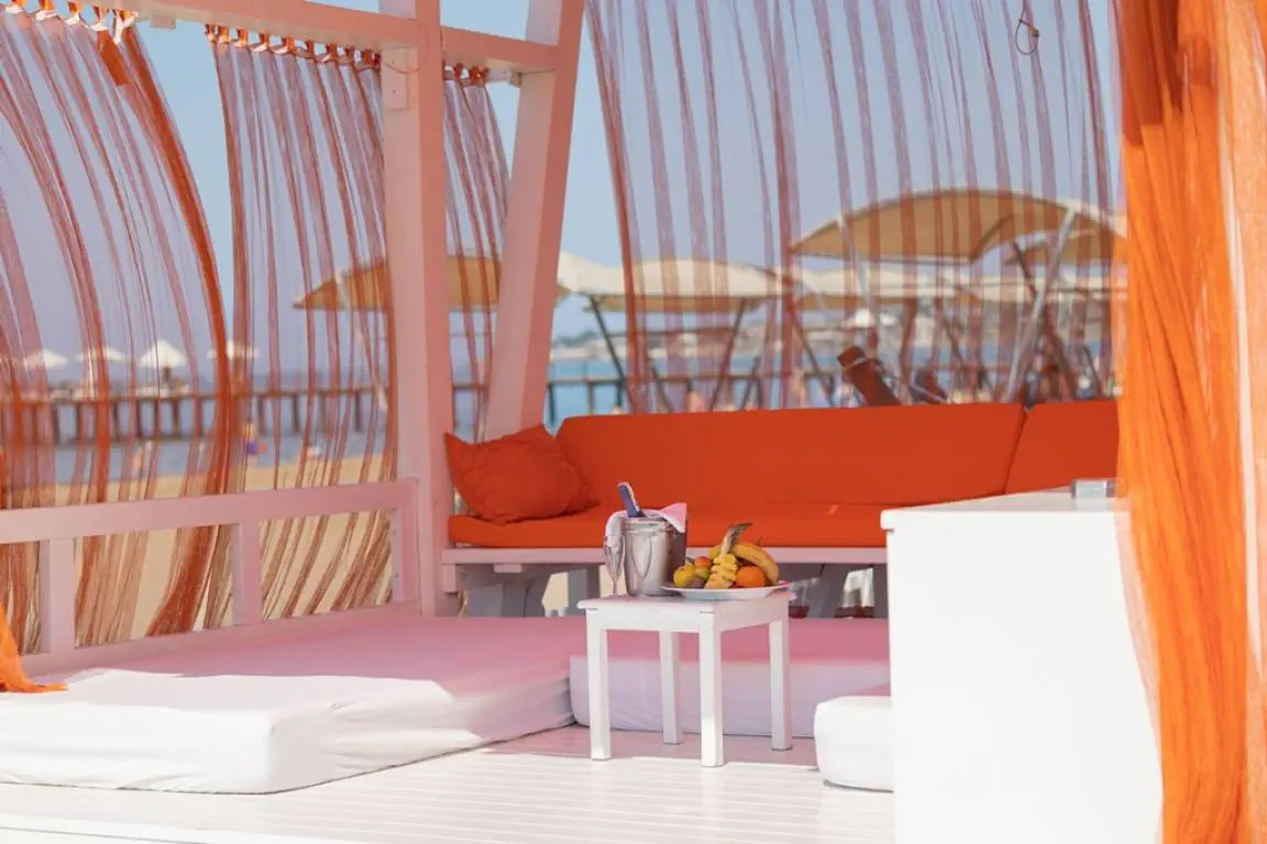 Prywatna, Piaszczysta, Piaszczyste zejście do morza, odleglość do plaży: 0 m, długość plaży: 260 m, pomost na plaży, Parasole - bezpłatnie, Leżaki - bezpłatnie, Ręczniki - bezpłatnie, Pawilony na plaży - płatne, Beach Bar - bezpłatnie, Prysznic