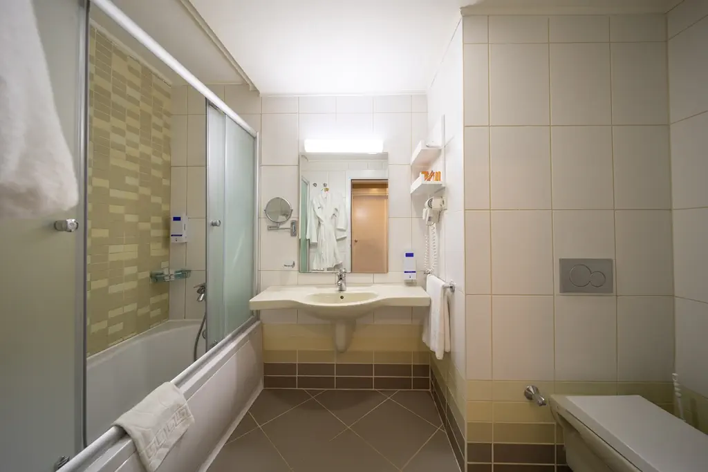 Dla max. 3 osób, Przestrzeń zewnętrzna: Balkon, Kanały telewizji: Angielski, Telefon w pokoju, wanna, Powierzchnia pokoju: ok. 31 m2, Dostawka: sofa, Rodzaj podłogi: wykładzina, Sprzątanie codziennie, 1 sypialnia, Maksymalna liczba osób dorosłych: 3, Maksymalna liczba dzieci: 1, Widok na dziedziniec,Widok na ogród, Liczba łazienek: 1, Liczba toalet: 1, Zestaw do parzenia kawy i herbaty, Klimatyzacja: Klimatyzacja centralna, Działa w godzinach: 00:01-23:59Kwiecień, Maj, Czerwiec, Lipiec, Sierpień, Wrzesień, Październik