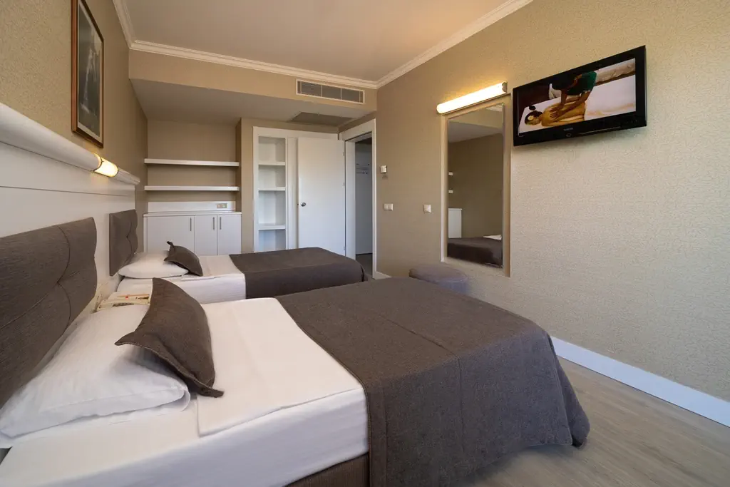 Hotel położony tuż przy plaży oferuje basen, zjeżdżalnie, a ponadto przytulne i konfortowo urządzone pokoje. Ponadto położenie obiektu blisko antycznego miasta Side jest niewątpliwie atutem dla tych Gości, którzy pragną lepiej poznać dziedzictwo kulturowe i lokalne atrakcje jakie się tu znajdują.
