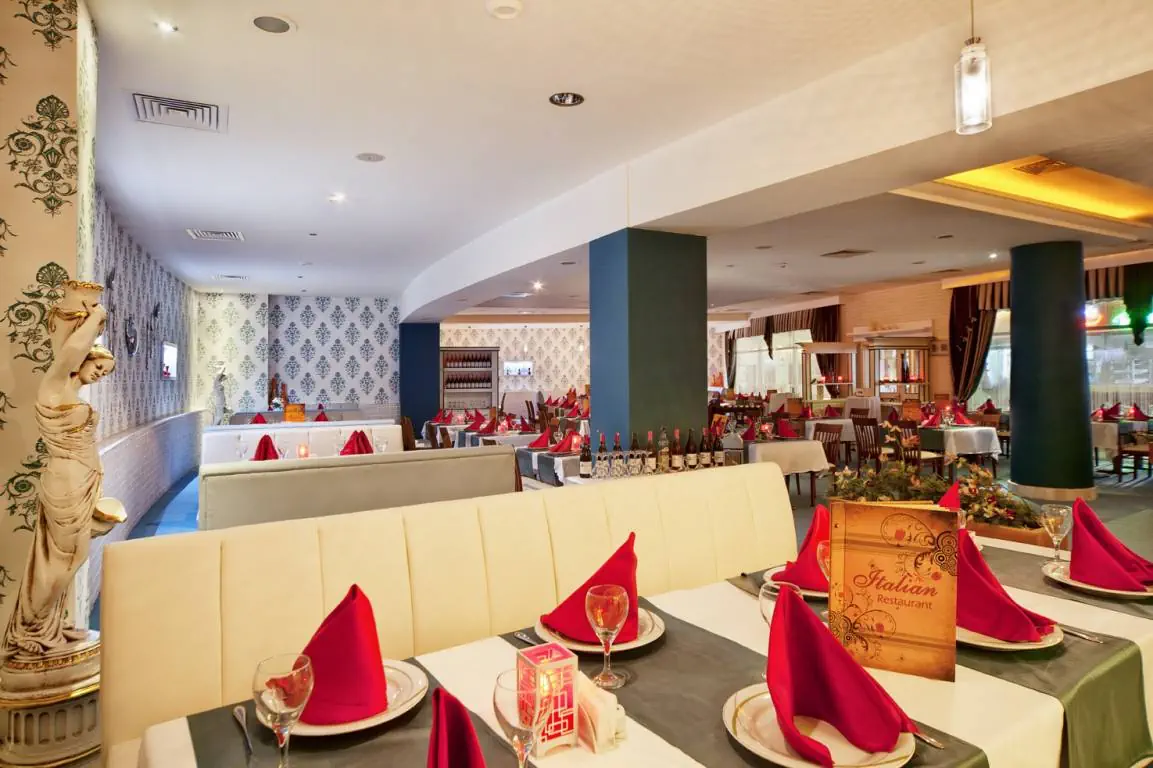 Śniadanie (07:00 - 10:00) - Main Restaurant, stół szwedzki, Późne śniadanie (10:00 - 11:00) - Main Restaurant, stół szwedzki, Obiad (12:30 - 14:30) - Main Restaurant, stół szwedzki, Przekąski (12:30 - 16:00) - Side Street, stół szwedzki, Kolacja (19:00 - 21:30) - Main Restaurant, stół szwedzki, Późna kolacja (23:30 - 00:30) - Main Restaurant, określone menu, Asian Restaurant (19:00 - 21:00) (19:00 - 21:00), bez limitu, Kuchnia: Chińska, Tajska, Wymagana rezerwacja: Tak ¹⁾, Mexican Restaurant (19:00 - 21:00) (19:00 - 21:00), bez limitu, Kuchnia: Meksykańska, Wymagana rezerwacja: Tak ¹⁾, Turkish Restaurant (19:00 - 21:00) (19:00 - 21:00), bez limitu, Kuchnia: Turecka, Wymagana rezerwacja: Tak ¹⁾, Barbecue Restaurant (19:00 - 21:00) (19:00 - 21:00), bez limitu, Kuchnia: Azerska, Wymagana rezerwacja: Tak ¹⁾, Italian Restaurant (19:00 - 21:00) (19:00 - 21:00), bez limitu, Kuchnia: Włoska, Wymagana rezerwacja: Tak ¹⁾, Fish Restaurant (19:00 - 21:00) (19:00 - 21:00), bez limitu, Kuchnia: owoce morza , Wymagana rezerwacja: Tak ¹⁾, Lounge Bar (24h), Napoje: alkohole lokalne, wybrane alkohole importowane, napoje bezalkoholowe (24h), Palm Bar (16:00 - 23:59), Napoje: alkohole lokalne, wybrane alkohole importowane, napoje bezalkoholowe (16:00 - 23:59), Coffee House (09:30 - 23:59), Napoje: napoje bezalkoholowe (09:30 - 23:59), Bowling Bar (16:00 - 23:59), Napoje: alkohole lokalne, wybrane alkohole importowane, napoje bezalkoholowe (16:00 - 23:59), Disco (23:59 - 03:00), Napoje: alkohole lokalne, wybrane alkohole importowane (23:59 - 03:00), Cafe Turk (08:30 - 23:59), Napoje: napoje bezalkoholowe (08:30 - 23:59), Vitamin Bar (09:00 - 21:00), Napoje: napoje bezalkoholowe (09:00 - 21:00), Meydan Pool Bar (09:30 - 23:59), Napoje: alkohole lokalne, wybrane alkohole importowane, napoje bezalkoholowe (09:30 - 23:59), Beach Bar (10:00 - 19:00), Napoje: alkohole lokalne, wybrane alkohole importowane, napoje bezalkoholowe (10:00 - 19:00), napoje bezalkoholowe, alkohole lokalne, wybrane alkohole importowane, lody, pakiety dla nowożeńców, pakiety urodzinowe (na życzenie), room service ¹⁾, Minibar w pokoju ¹⁾ - dodatkowo płatne