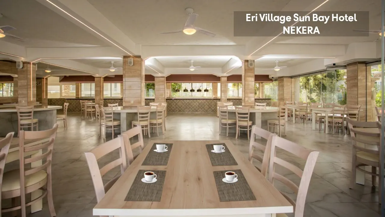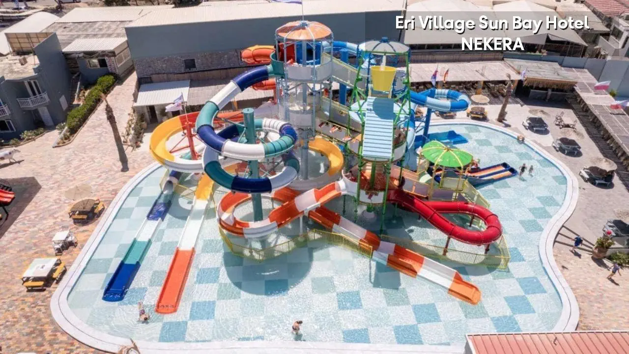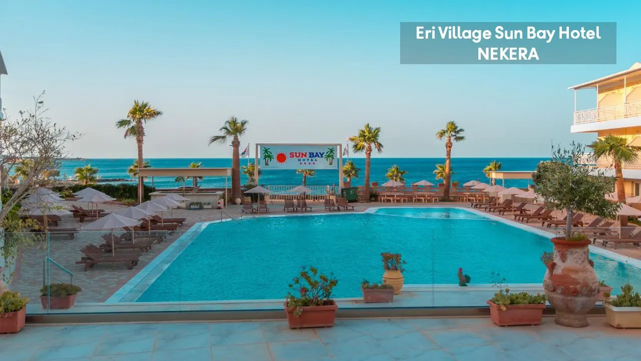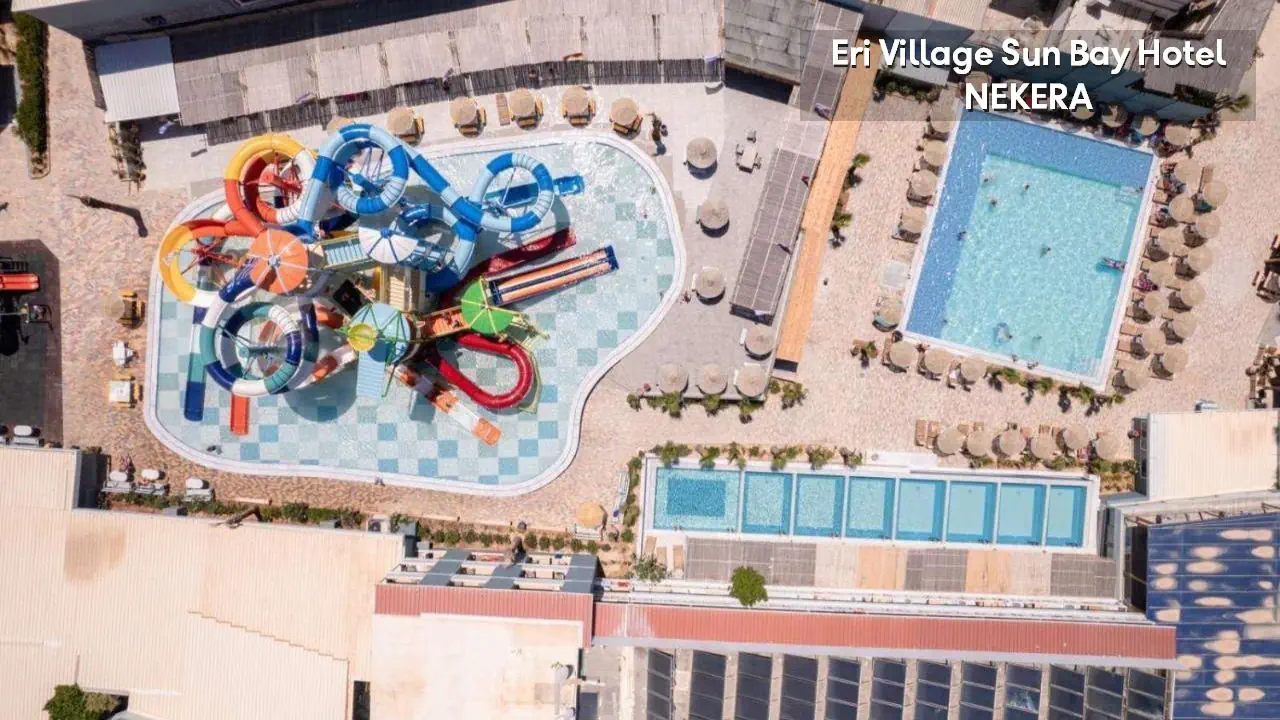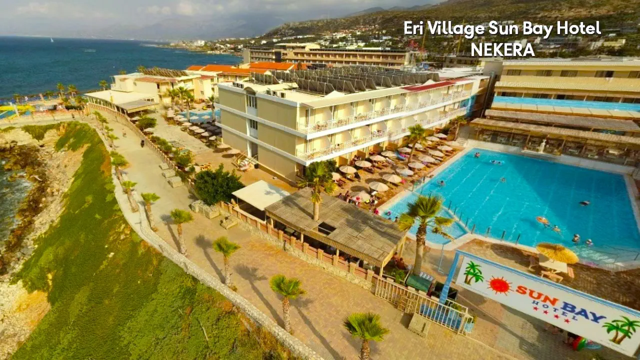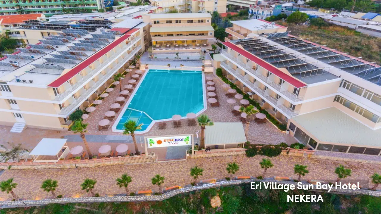odnowiony w 2020 r. czterogwiazdkowy rodzinny hotel składa się z trzech trzypiętrowych budynków. Do dyspozycji Gości: recepcja 24h, lobby, klimatyzacja, basen z widokiem na morze, brodzik, zjeżdżalnie wodne dla dzieci i dorosłych (w części resortowej Eri Sun Village), parasole słoneczne i leżaki przy basenie: w cenie, 2 restauracje główne, bar, bankomat. Za dodatkową opłatą: pralnia, sklepik, wypożyczalnia bagażu, wypożyczalnia samochodów, sala konferencyjna.