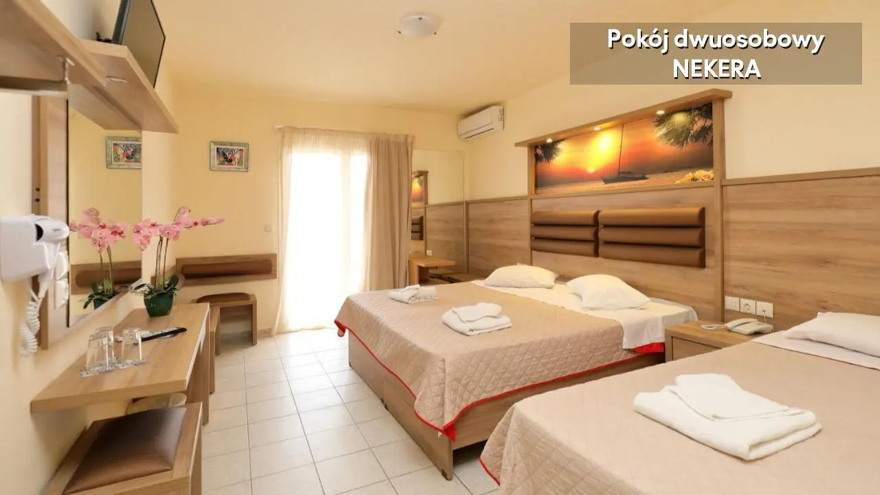 Noclegi, wyżywienie zgodnie z rezerwacją. Dodatkowo w przypadku imprez pakietowych z przelotem, oprócz ww. świadczeń w cenie zawarty jest: ubezpieczenie podstawowe (8000 EUR KL i 2000 EUR NNW) przelot, opłata lotniskowa, opłata za wylot z lotniska lokalnego, transfer lotnisko-hotel-lotnisko (chyba, że dana oferta stanowi inaczej jak np. zakup hotelu z dojazdem własnym). W sezonie letnim oferujemy bezpośrednią opiekę polskojęzycznego rezydenta na miejscu. W pozostałym okresie zapewniamy opiekę lokalnego przedstawiciela, a także kontakt telefoniczny lub poprzez czat (na portalu moja.nekera.pl) z polskojęzycznym rezydentem. Podane godziny serwowania posiłków oraz funkcjonowanie poszczególnych elementów infrastruktury hotelowej mogą ulec nieznacznym zmianom, ze względu na sezonowość, siły wyższe i inne okoliczności.