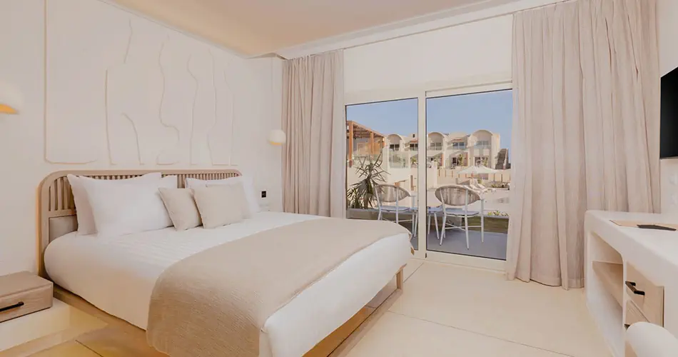 Pokój Superior – ok. 40 m² Klimatyzacja Łazienka z prysznicem i WC, suszarka do włosów Waga – na zapytanie Żelazko i deska do prasowania – na zapytanie Telefon, TV-Sat Sejf Minibar Zestaw do parzenia kawy i herbaty Balkon lub taras Część dzienna Jedno łóżko Queen Size lub dwa pojedyncze Pokój Family Bunk Bed – ok. 40 m² Wyposażenie jak w pokoju Superior Łóżko typu Queen oraz łóżko piętrowe Pokój Family Suite – ok. 50 m² Wyposażenie jak w pokoju Superior Dwie sypialnie oddzielone drzwiami W jednym pokoju łóżko Queen Size, w drugim dwa pojedyncze łóżka Pokój Junior Suite – ok. 55 m² Wyposażenie jak w pokoju Superior Sypialnia i pokój dzienny Pokój Deluxe Suite – ok. 60 m² Wyposażenie jak w pokoju Superior Łazienka z oddzienlym prysznicem Wydzielona część dzienna Pokój Junior Swim-Up Suite – ok. 60 m² Wyposażenie jak w pokoju Superior Wydzielona część dzienna Bezpośredni dostęp do basenu Pokój Deluxe Swim-Up Suite - ok. 50 m² Wyposażenie jak w pokoju Superior Wydzielona część dzienna Bezpośredni dostęp do basenu Pokój Junior Deluxe Pool Suite - ok. 60 m² Wyposażenie jak w pokoju Superior Wydzielona część dzienna Pokój Executive Suite – ok. 65 m² Wyposażenie jak w pokoju Superior Wydzielona część dzienna oraz oddzielna garderoba Łazienka z oddzielnym prysznicem Pokój Executive Swim-Up Suite – ok. 70 m² Wyposażenie jak w pokoju Superior Wydzielona część dzienna oraz oddzielna garderoba Łazienka z oddzielnym prysznicem Bezpośredni dostęp do basenu