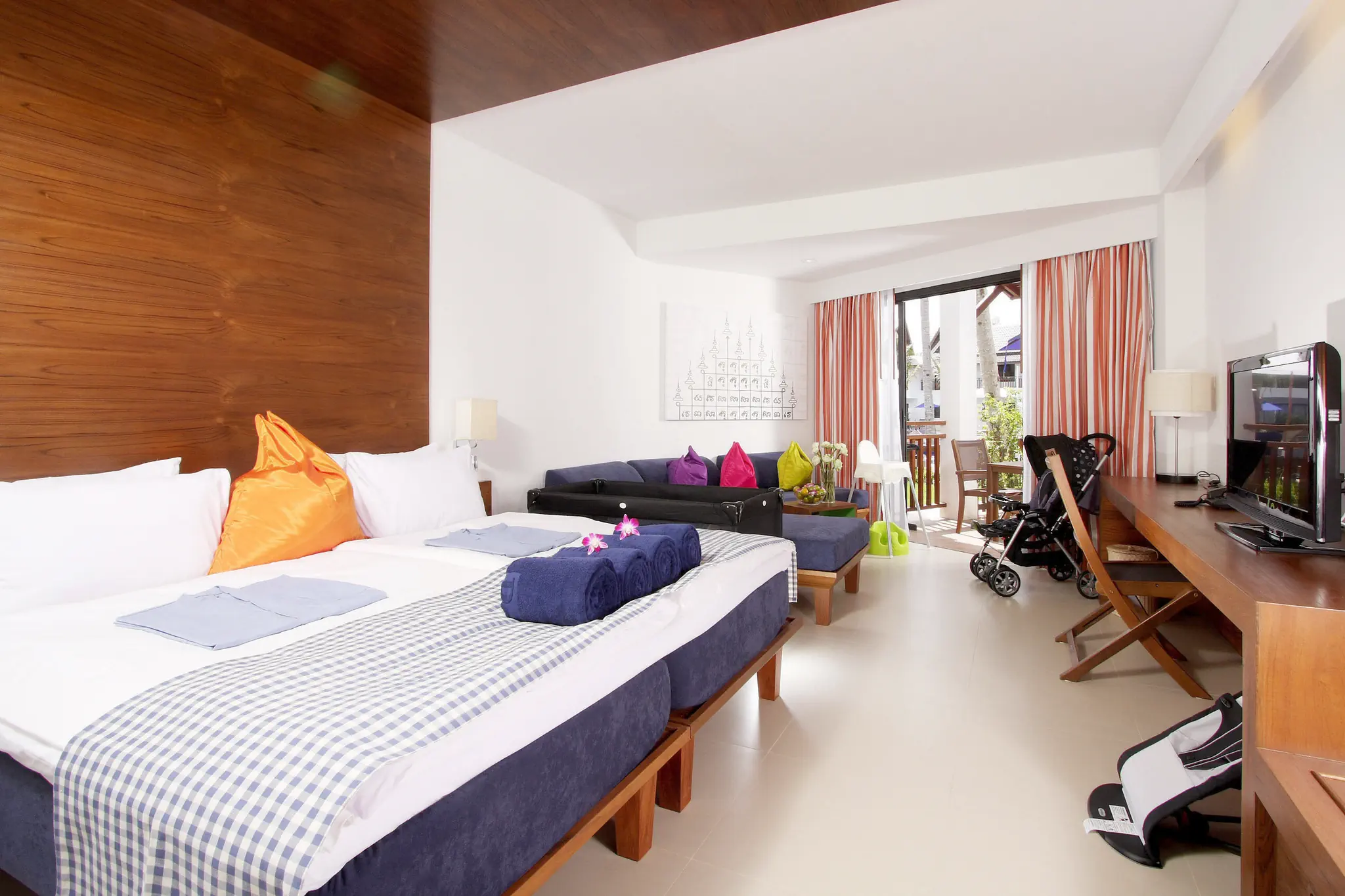 wszystkie studia nowocześnie urządzone. Studio: ok. 44 m2, pomieszczenie mieszkalno-sypialne, klimatyzacja, telefon, TV sat, sejf, internet, czajnik, balkon lub taras. Kącik kuchenny z lodówką i kuchenką mikrofalową oraz sofą. Prysznic, WC, suszarka. Happy Baby Studio: ok. 44 m2, położone na parterze z zamkniętym tarasem, leżaki oraz parasol. Pokój przystosowany dla rodzin z małymi dziećmi (krzesło do karmienia, łóżeczko, wózek spacerowy, sztućce dla dzieci, podłoga antypoślizgowa oraz podest w łazience). Royal Studio: ok. 44 m2, z bezpośrednim dostępem do basenu. Suity rodzinne: ok. 60 m2, 2 sypialnie.