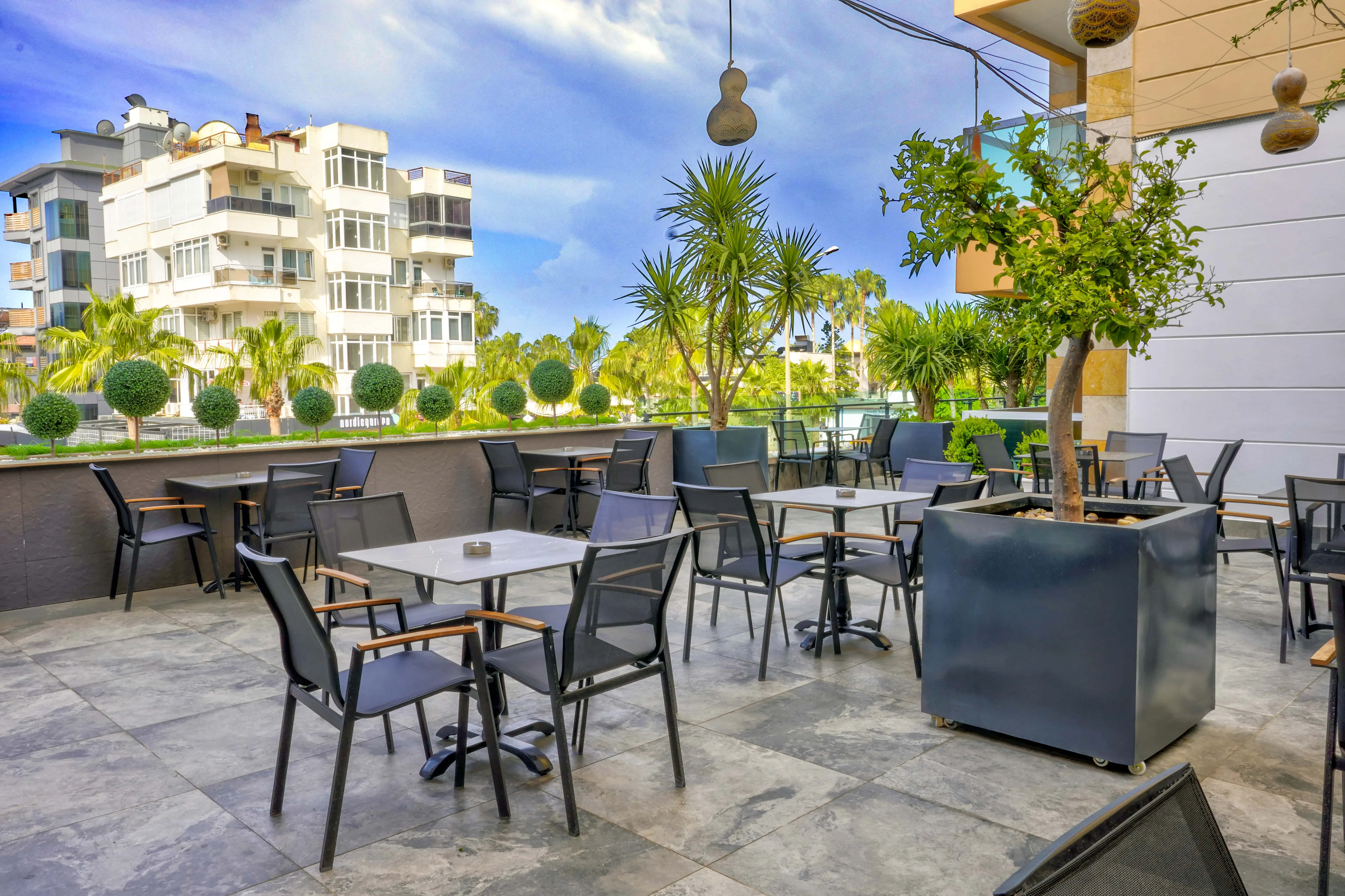 Zlokalizowany jest parę kroków od słynnej plaży Kleopatry. W dość bliskiej odległości od hotelu znajdziemy również zabytkowy zamek i jaskinię Damlatas. Hotel oferuje tenis stołowy, rzutki, siłownie, basen i SPA.