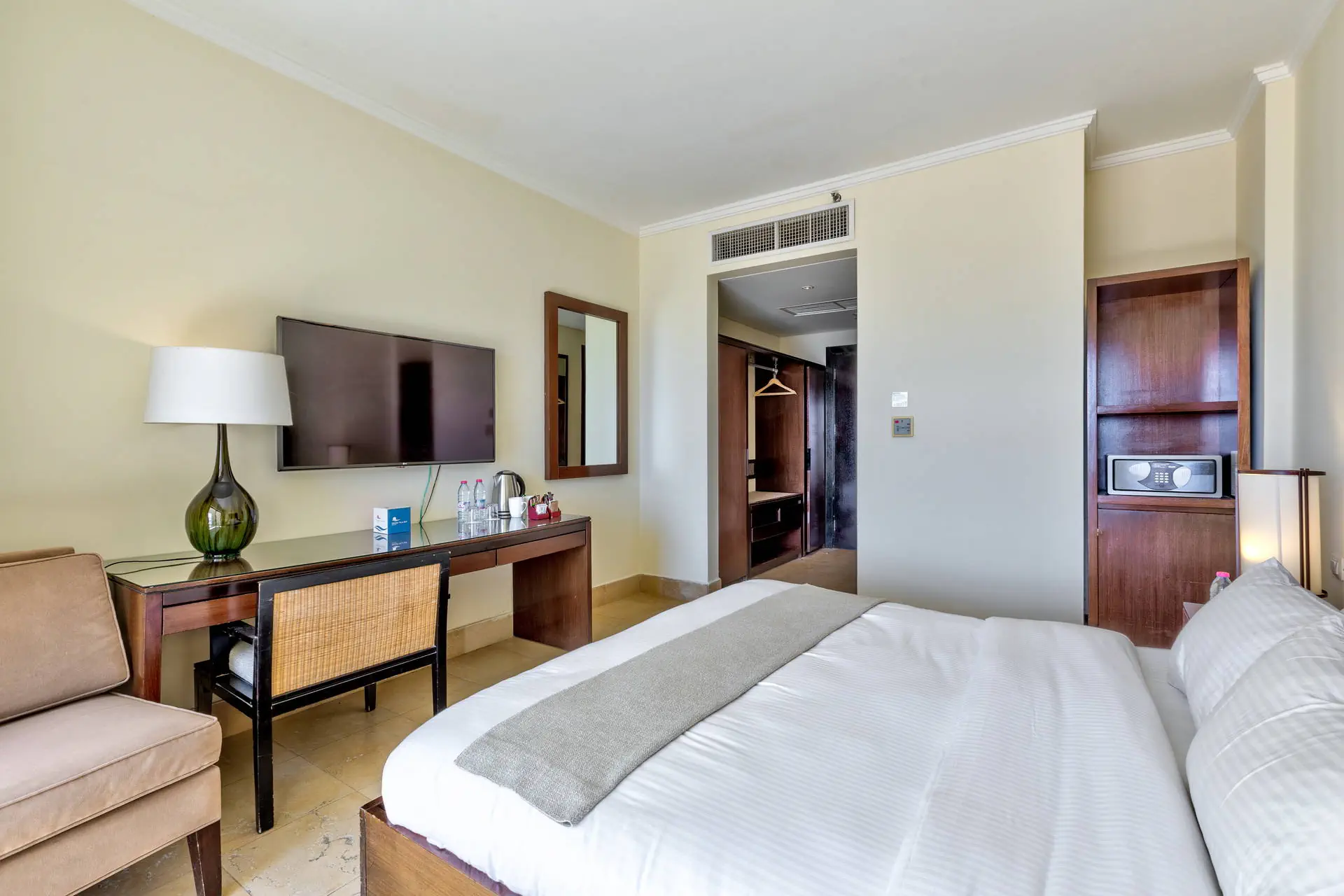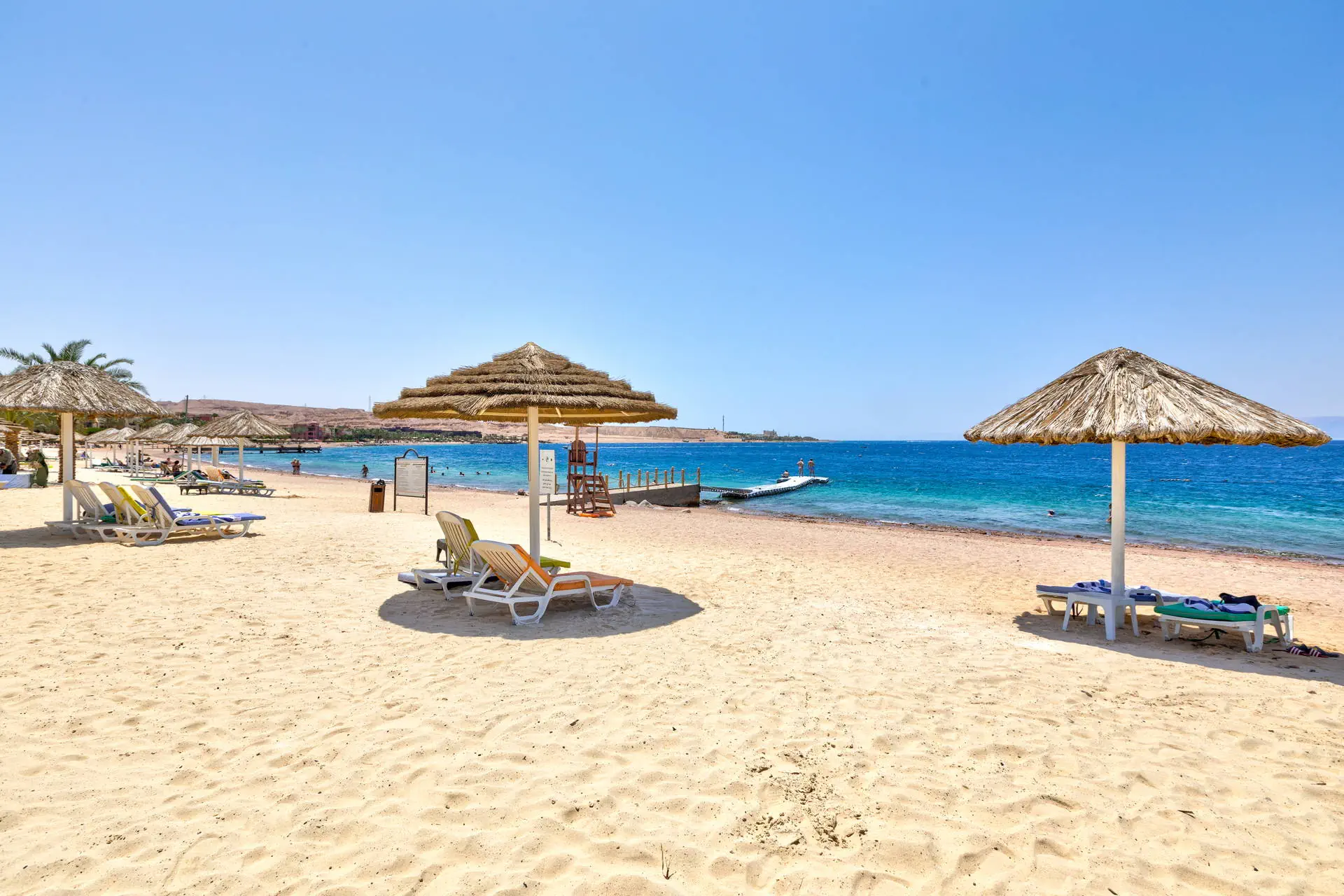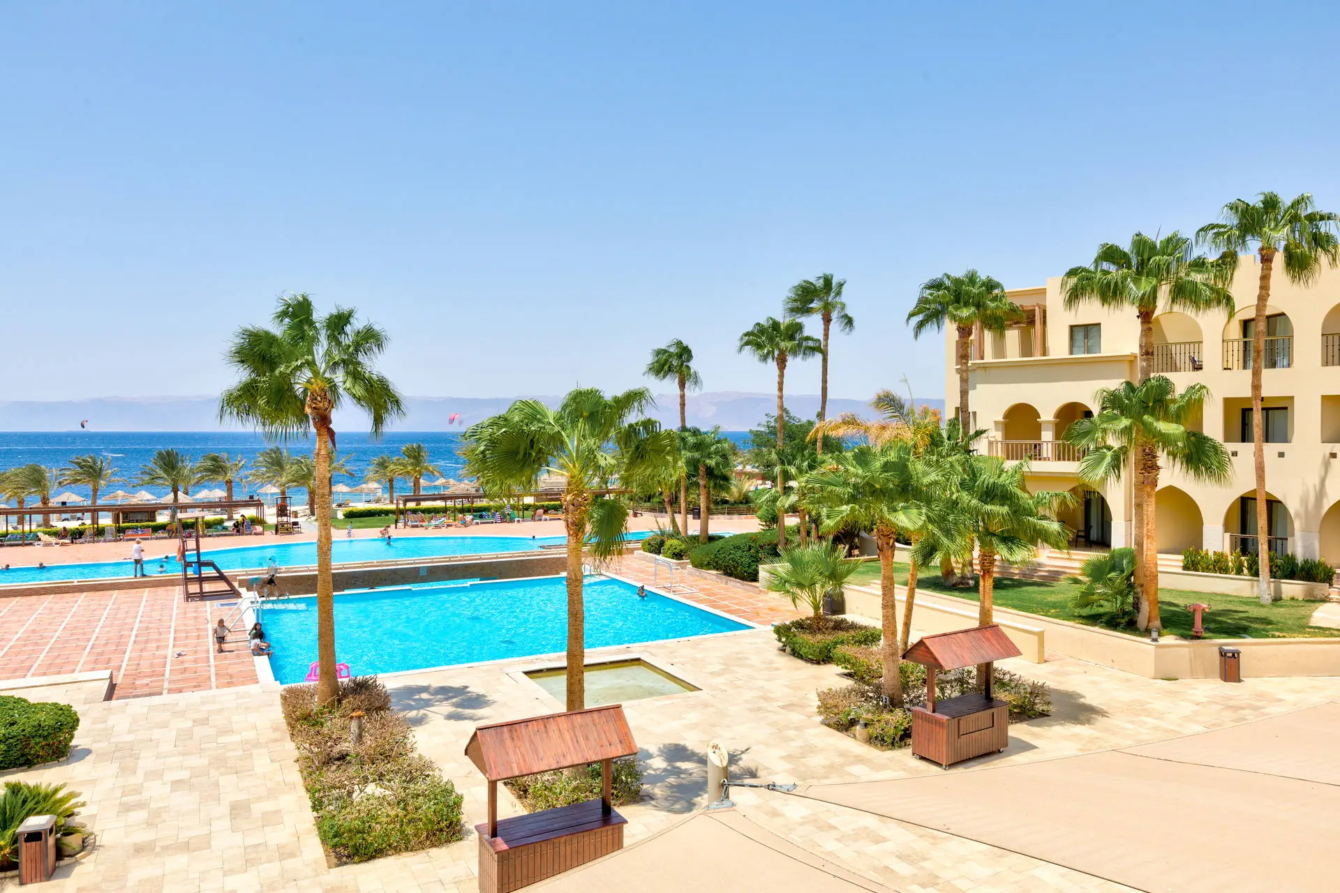 Położenie Lotnisko w Aqabie dzieli od obiektu ok. 25 km. Obiekt położony jest ok. 15 km od Aqaby, a do centrum można dostać się darmowym shuttle busem, który kursuje dwa razy dziennie. Wymagana jest wcześniejsza rezerwacja miejsca. W zasięgu ok. 2 godzin jazdy samochodem znajduje się Petra, a ok. 1 godziny - Wadi Rum. Kompleks hotelowy jest częścią resortu Tala Bay i otoczony jest zadbanym palmowym ogrodem. Obiekt zlokalizowany jest tuż przy plaży, co zapewnia widok na Zatokę Aqaba. Położony w zacisznej okolicy, w pobliżu znajduje się kilka sklepów, nadmorska promenada oraz marina. Plaża Plaża bezpośrednio przy hotelu. Prywatna, ładna, piaszczysta z łagodnym zejściem do morza, przy linii z wodą żwirek. Parasole, leżaki, materace i ręczniki dostępne bezpłatnie dla Gości hotelowych. Na plaży znajduje się pomost. Do dyspozycji gości 24h/7 recepcja, jasne lobby, windy. 5 basenów zewnętrznych ze słodką wodą, w tym 1 podgrzewany sezonowo, 1 typu infinity (tylko dla dorosłych), brodzik dla dzieci z 2 małymi zjeżdżalniami, jacuzzi, leżaki i ręczniki w cenie. Atrakcje dla dzieci: brodzik dla dzieci z 2 małymi zjeżdżalniami. Restauracje: restauracja główna Aziab z tarasem, bar/restauracja Heat Wave, lobby bar Kenzi, bar Baywatch przy basenie (niektóre bary i restauracje dodatkowo płatne). Pozostałe informacje: punkt wymiany walut, przechowalnia bagażu, centrum konferencyjne, sklepik z pamiątkami. Uwaga! W hotelach w Jordanii obowiązuje zakaz wnoszenia alkoholu z zewnątrz (bagaże każdorazowo przy wejściu są prześwietlane). Alkohol znaleziony w bagażu zostaje zabierany do depozytu i oddawany przy wykwaterowaniu z hotelu. Wyżywienie Rodzaje wyżywienia i posiłki: All Inclusive: Śniadania: 07:00 - 10:30. Obiady: 12:30 - 15:30. Kolacje: 19:00 - 22:30, w formie bogatego bufetu w restauracji głównej Aziab. Restauracje: Główna restauracja Aziab, w formie bogatego bufetu. Bary: Beach Bar: gorące napoje, napoje bezalkoholowe oraz lokalne alkohole (piwo, wódka i whisky) w godzinach 11:00 - 17:00. Heat Wave: gorące napoje, napoje bezalkoholowe oraz lokalne alkohole (piwo, wódka i whisky) w godzinach 19:00 - 23:00. Pozostałe informacje: Kawa (rozpuszczalna), herbata oraz napoje bezalkoholowe (soki i woda) są bezpłatne do posiłków. Program sportowy i animacyjny Dla każdego: 4 baseny ze słodką wodą, zintegrowane jacuzzi, siłownia, siatkówka plażowa, zajęcia yogi, piłka wodna, lekki program animacyjny w ciągu dnia, wieczorna muzyka (na żywo lub puszczana przez DJ'a), pokazy tańca brzucha. Dla dzieci: brodzik z 2 małymi zjeżdżalniami, zajęcia w mini klubie. Za dodatkową opłatą: centrum sportów wodnych, centrum nurkowe. Kategoria lokalna ***** Naszym zdaniem Rozległy kompleks hotelowy, usytuowany tuż przy plaży, zapewnia komfortowy wypoczynek w spokojnej okolicy. Dzięki doskonałej lokalizacji, Goście mają łatwy dostęp do pobliskiego miasta, lotniska, sklepów i restauracji. Hotel tworzy wakacyjne miasteczko wraz z sąsiednim kompleksem rezydencjalnym i mariną, co czyni go wyjątkowym miejscem na mapie. To doskonała propozycja zarówno dla par, jak i rodzin z dziećmi, które cenią bliskość atrakcji i wygodny wypoczynek. Internet Bezpłatny dostęp do bezprzewodowego Internetu na terenie całego hotelu. Strona www www.talabay.net/hotel/tala-bay-resort