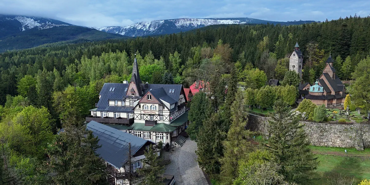 Tarasy Wang to obiekt zachwycający zarówno położeniem, jak i samą bryłą budynku ze spadzistymi dachami, wykuszami, werandami oraz balkonami i tarasami. Budynek został wzniesiony w 1897 roku i nawiązuje do architektury skandynawskiej. W 2005 roku obiekt został wyremontowany, jednak zachowano klimat tego miejsca. Udogodnienia: Jacuzzi, SPA, Sauna, Masaże, Bar / restauracja, Pobyt z pupilem, Parking, Płatność kartą
