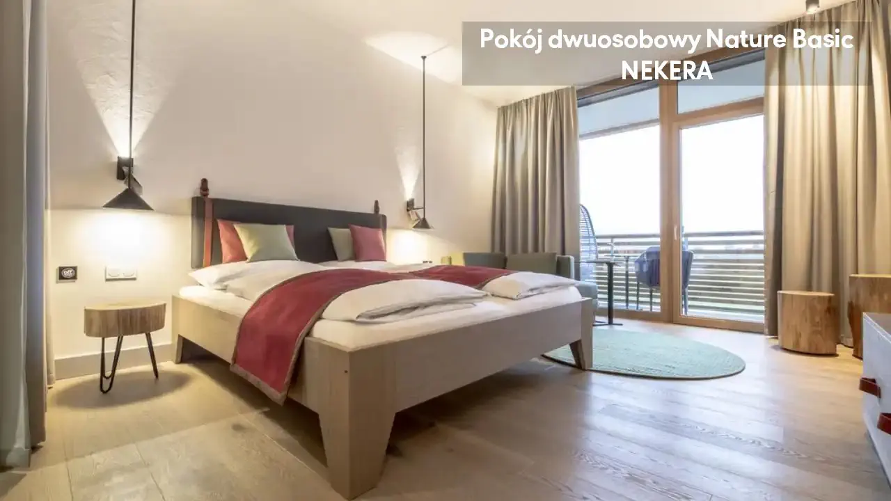 Pokoje dwuosobowe Panorama: ok. 31 m2; ogrzewanie, TV-Sat., telefon, sejf, minibar (woda i soft drinki w dniu przyjazdu), balkon lub taras z widkiemn na góry, wanna lub prysznic, WC, suszarka, szlafrok, kapcie. Dla max. 2 osób dorosłych i 1 dziecka poniżej 6 lat. Pokoje dwuosobowe Premium: ok. 31 m2; dla max. 2 osób dorosłych; poza tym wyposażone jak pokoje Panorama.