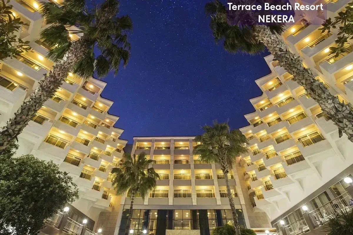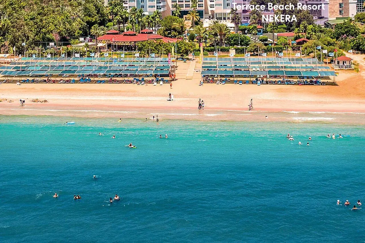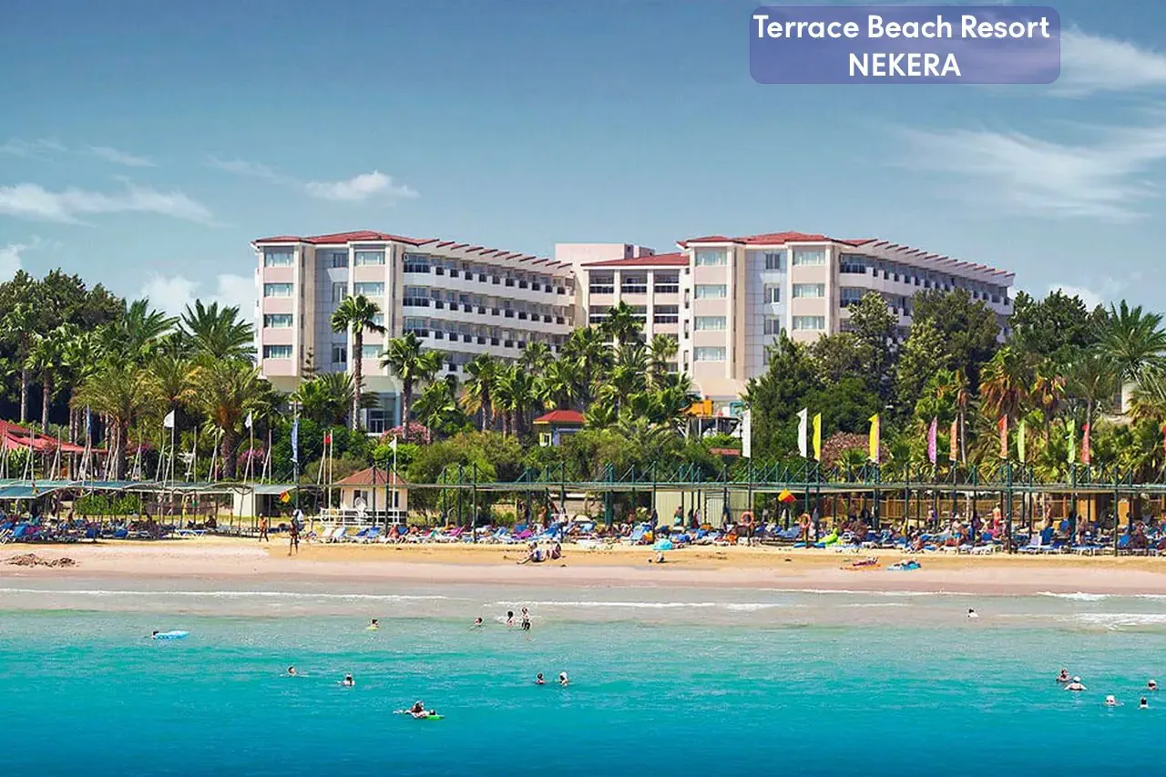 Terrace Beach Resort to pięciogwiazdkowy hotel all inclusive położony bezpośrednio przy prywatnej, szerokiej, piaszczystej plaży w dzielnicy Side – idealne miejsce na wakacyjny wypoczynek zarówno dla rodzin z dziećmi, par, jak i gości aktywnie spędzających czas. Komfortowe pokoje, bogata oferta sportów i rekreacji, rozbudowana strefa wellness oraz liczne udogodnienia sprawiają, że pobyt tutaj jest relaksujący i pełen atrakcji.