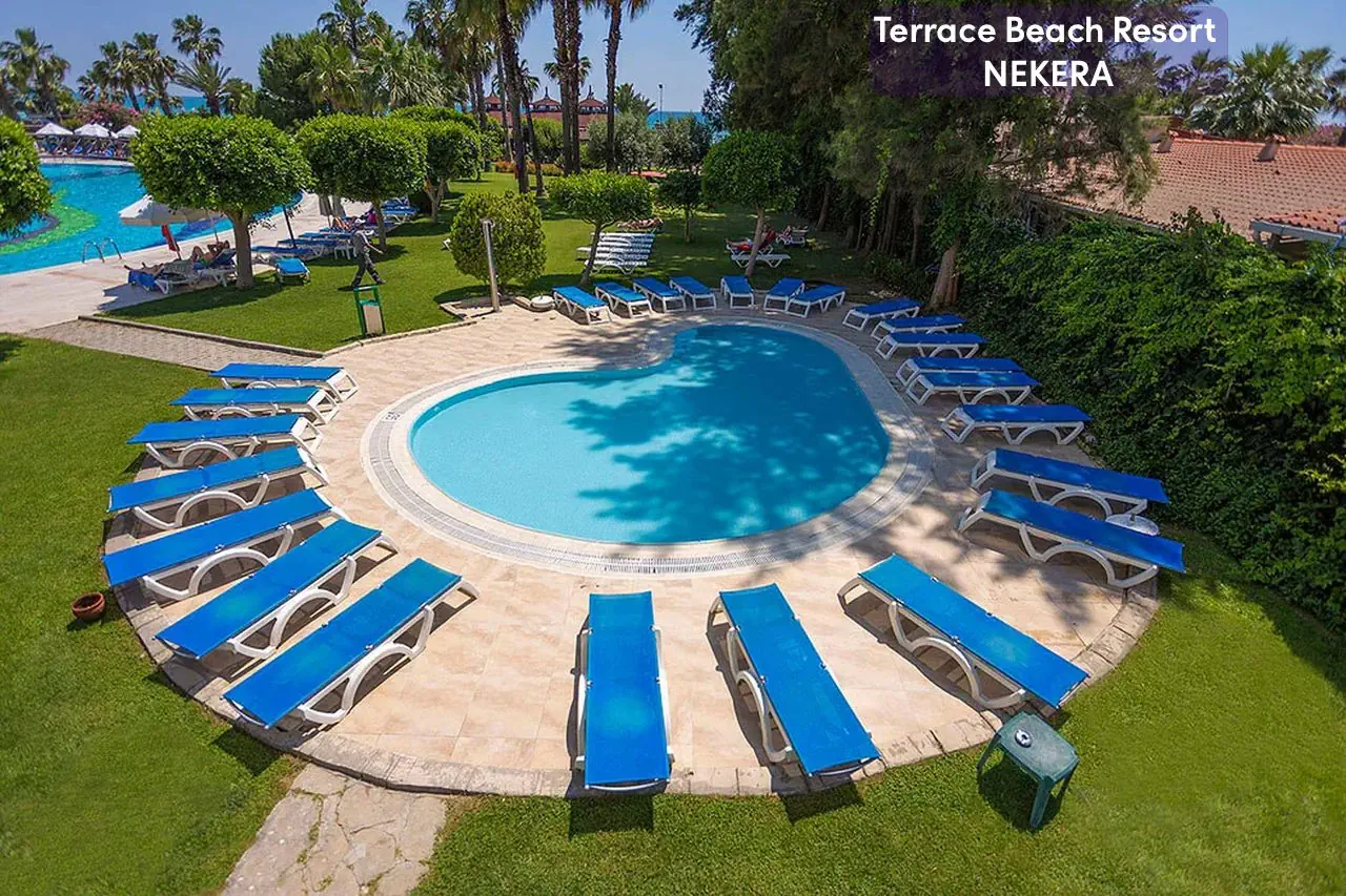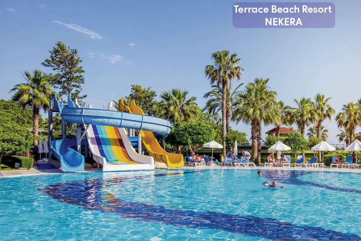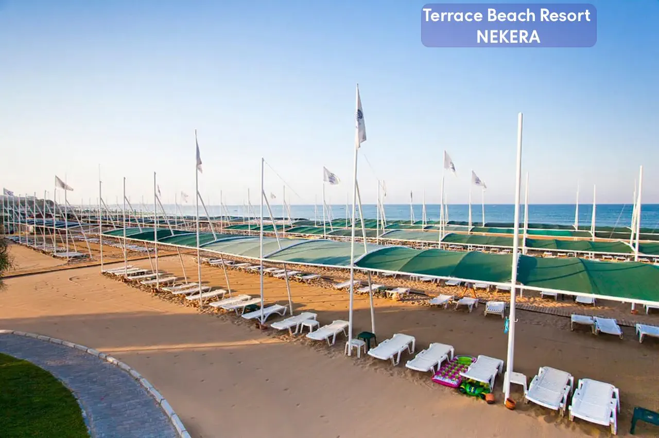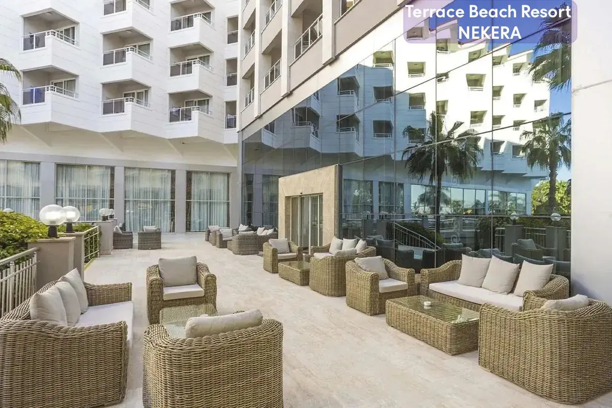 Terrace Beach Resort to pięciogwiazdkowy hotel all inclusive położony bezpośrednio przy prywatnej, szerokiej, piaszczystej plaży w dzielnicy Side – idealne miejsce na wakacyjny wypoczynek zarówno dla rodzin z dziećmi, par, jak i gości aktywnie spędzających czas. Komfortowe pokoje, bogata oferta sportów i rekreacji, rozbudowana strefa wellness oraz liczne udogodnienia sprawiają, że pobyt tutaj jest relaksujący i pełen atrakcji.