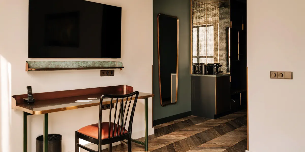 Pokoje Superior Double łączą rzemieślniczą precyzję z nowoczesną elegancją. W porównaniu do pokoi Classic, oferują gościom więcej przestrzeni przy równie wyjątkowym wystroju wnętrz.