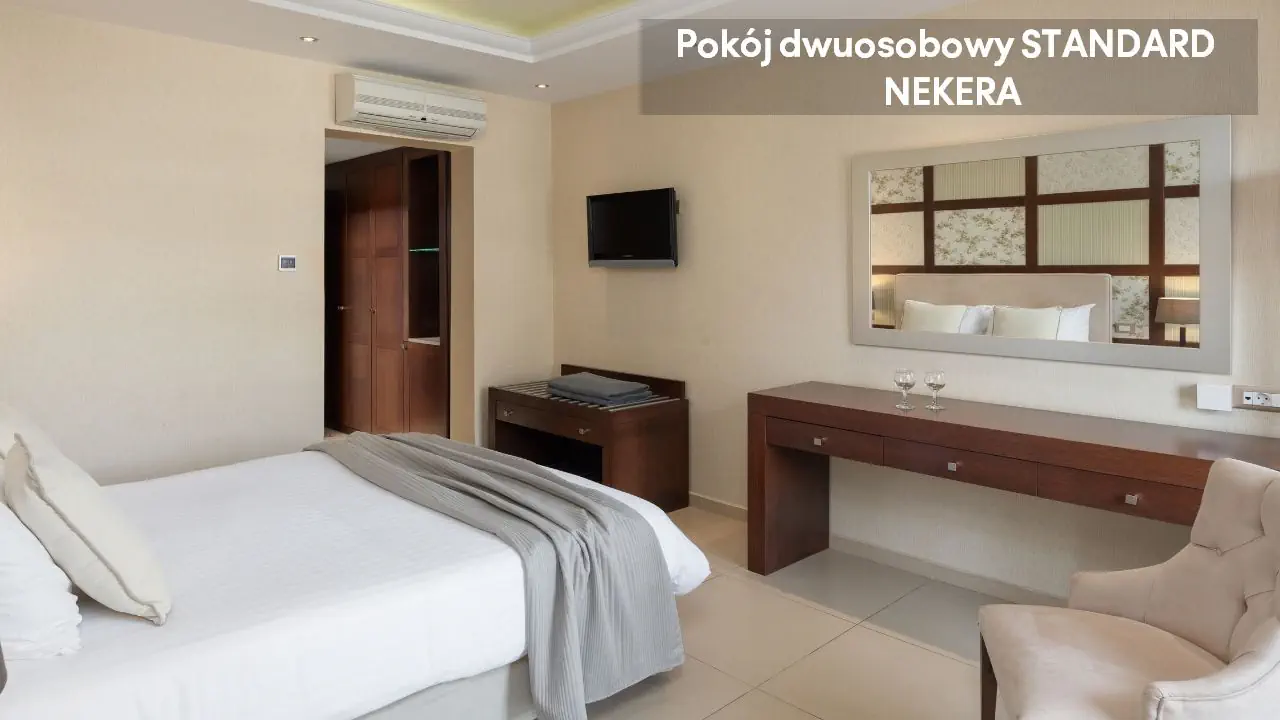 Noclegi, wyżywienie zgodnie z rezerwacją. Dodatkowo w przypadku imprez pakietowych z przelotem, oprócz ww. świadczeń w cenie zawarty jest: ubezpieczenie podstawowe (8000 EUR KL i 2000 EUR NNW) przelot, opłata lotniskowa, opłata za wylot z lotniska lokalnego, transfer lotnisko-hotel-lotnisko (chyba, że dana oferta stanowi inaczej jak np. zakup hotelu z dojazdem własnym). Podczas pobytu zapewniamy opiekę lokalnego przedstawiciela, a także kontakt telefoniczny lub poprzez czat (na portalu moja.nekera.pl) z polskojęzycznym rezydentem. Podane godziny serwowania posiłków oraz funkcjonowanie poszczególnych elementów infrastruktury hotelowej mogą ulec nieznacznym zmianom, ze względu na sezonowość, siły wyższe i inne okoliczności.